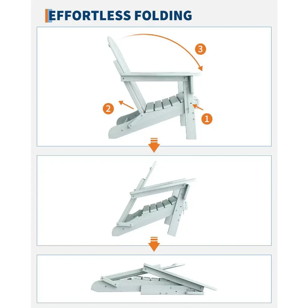 Description:Elevate your outdoor relaxation with this versatile set of foldable Adirondack chairs, designed for comfort, durability, and convenience.Crafted from weather-resistant HDPE plastic, these chairs withstand sun, rain, and snow without cracking or fading, ensuring they look great year-round with minimal maintenance. The ergonomic design features oversized contoured seats, extended backrests, and wide armrests, providing superior lumbar support for hours of comfortable lounging. Perfect for patios, gardens, decks, or firepit gatherings, these lightweight chairs fold easily for quick storage and portability, making them ideal for both small and large outdoor spaces. Assembly is effortless with all necessary hardware and clear instructions included, so you can have your chairs ready in just 15 minutes. Whether you're hosting friends or enjoying a quiet evening outdoors, these foldable Adirondack chairs offer the perfect combination of style, function, and convenience to enhance any outdoor setting.