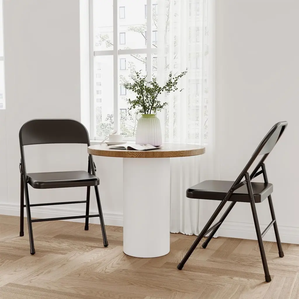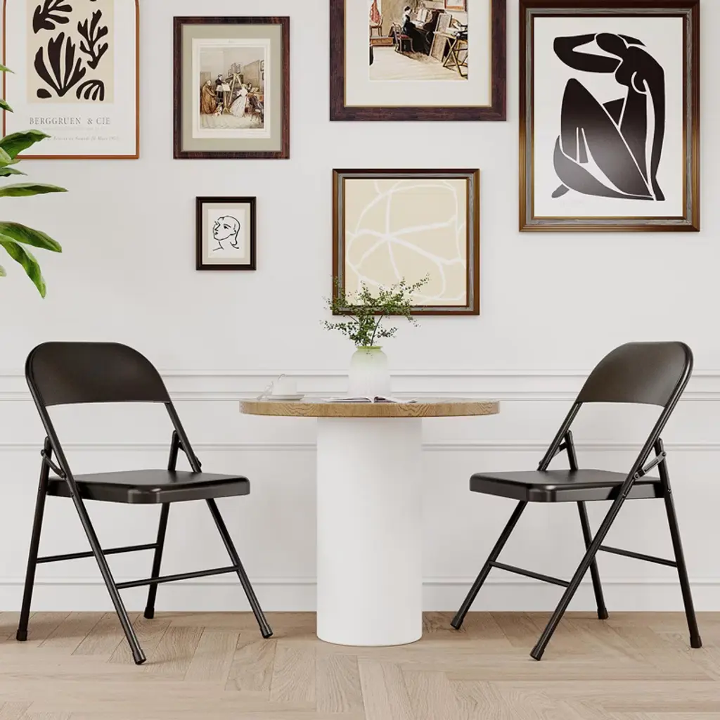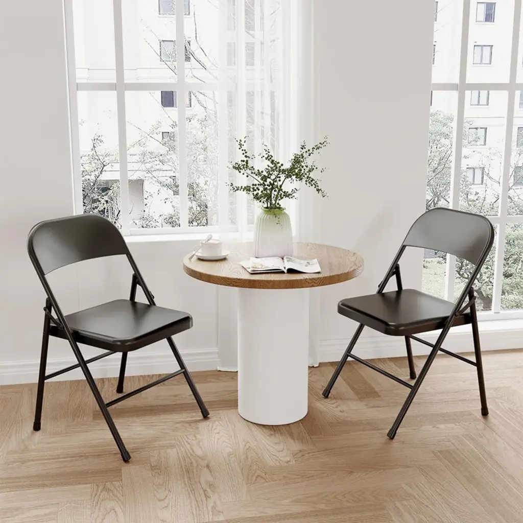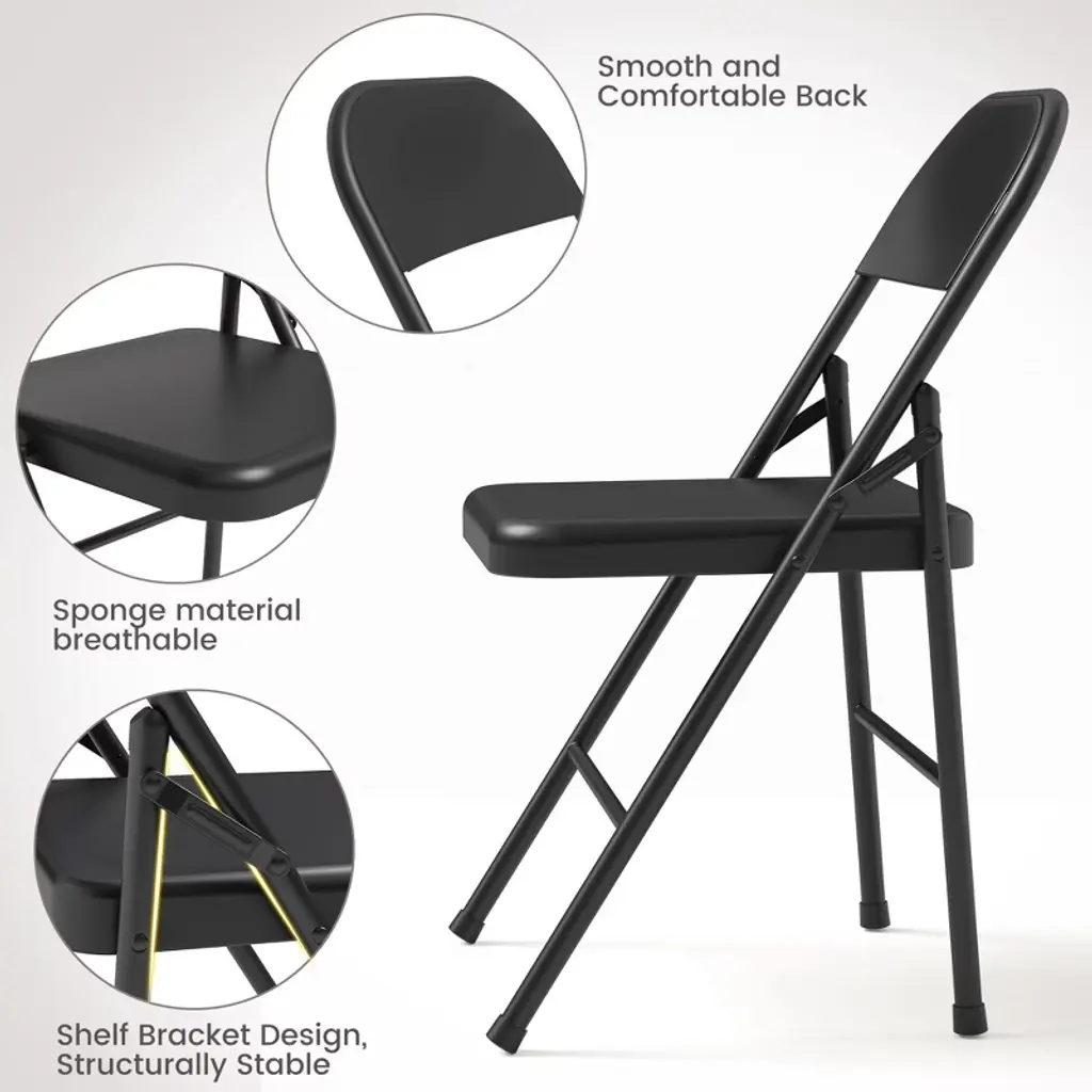 Folding Chairs Set Of 4 - Metal Chairs, Hold Up To 350 Pounds, Foldable For Outside & Indoor Use.black