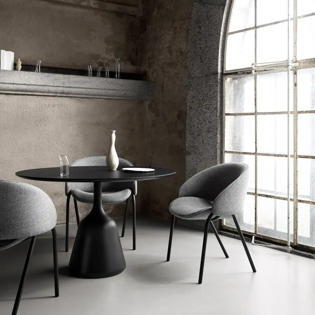 The Folium Dining Chair pulls references from nature's foliage while elevated by the bold steel base, bringing an extensively durable character to its exquisite look. The design infuses its surroundings with quiet yet impressive comfort.