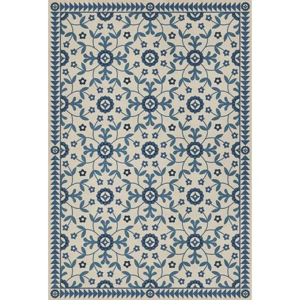 Inspired by old floor mats and vintage linoleum, these vibrant vinyl floor cloths offer warm colors with beautiful aged characteristic. Their worn appeal makes them great in kitchens and baths, while the smooth surface is perfect in an office where rolling chairs can glide. The cloths can be used in controlled outdoor settings such as a screened-in porch or covered lanai. These wonderful designs are printed on durable, certified non-slip, lay-flat vinyl. Due to their mastered printing process please expect some variation in hue and saturation. With a wide range of color combinations and sizes to choose from, enjoy picking your favorites to dress up your floor.