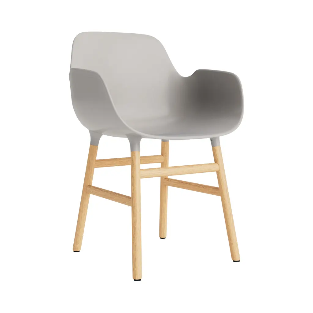 The Form armchair by Normann Copenhagen is a comfortable shell chair with a clean-lined and innovative design: its rounded legs are joined to the seat with a unique cup system, giving the chair its seamless, contemporary look. Featuring a gently curved polypropylene seat that is easy to keep clean, the Form armchair can be used in a range of spaces from the office to the dining room and beyond. Form could be seen as the definition of an ideal chair. Designer Simon Legald has said: “I had an idea of what the ideal chair should look like, and I have had this idea for many years. I have analyzed hundreds of chairs from different periods during the design process.” The Form concept was born as Legald’s graduation project, and in 2016, the collection received the prestigious iF Design Award.
