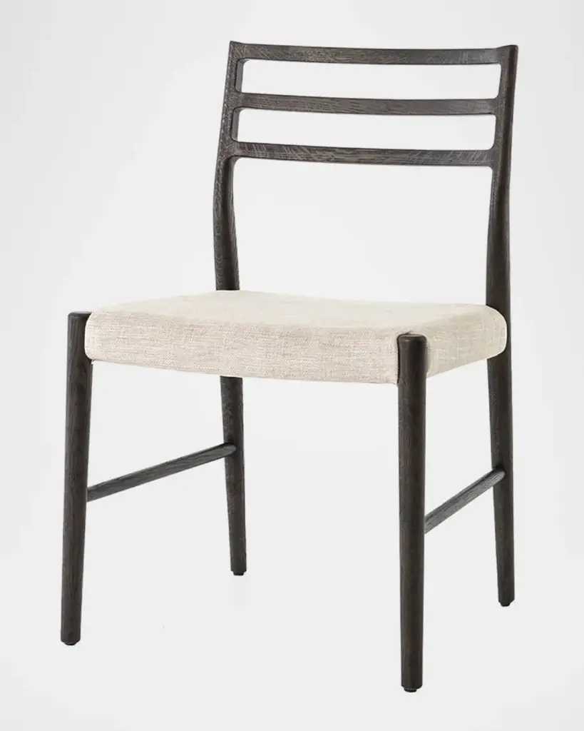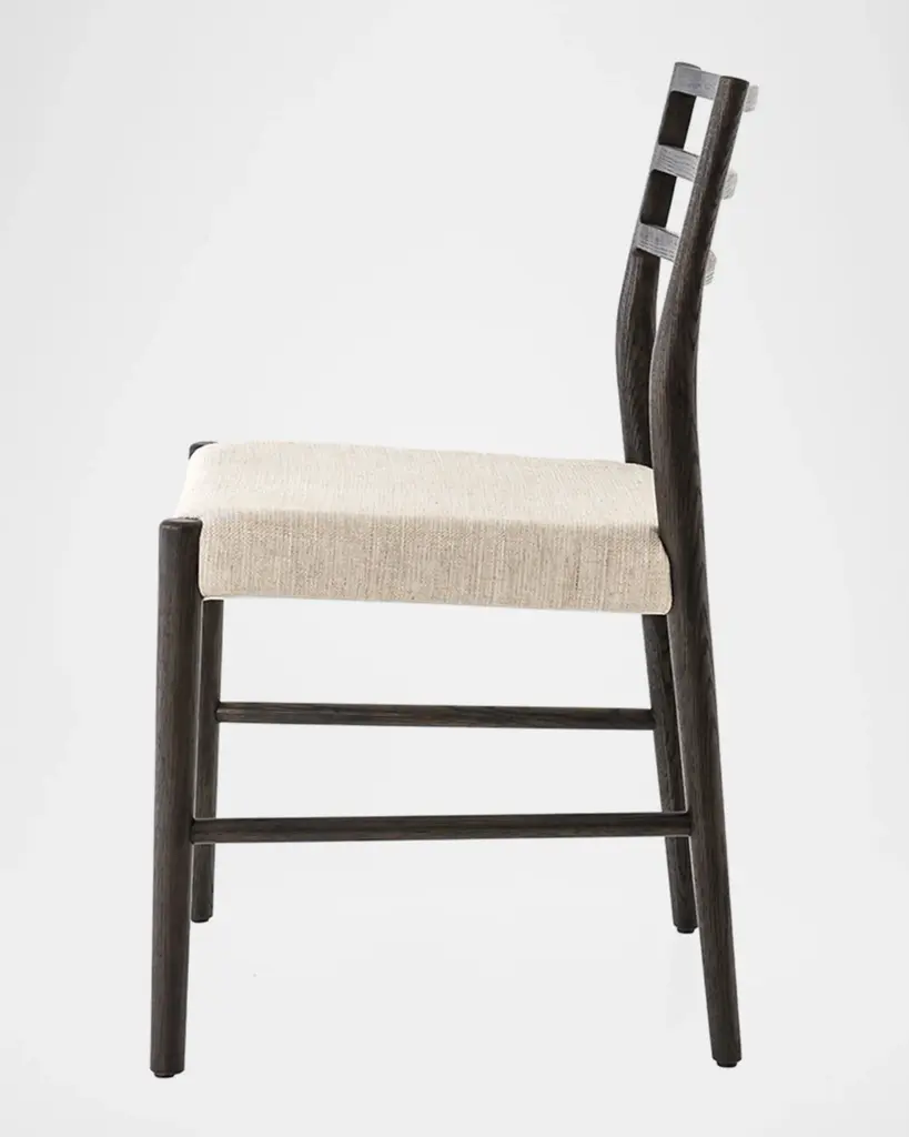 Handcrafted dining chair. Oak frame. Upholstery: viscose/linen/polyester/cotton. Sold as a single chair. 21.8"W x 21.3"D x 33.8"T. Seat: 17.8"D x 19"T. Imported. Boxed weight, approximately 35 lbs. Shipping Direct from Vendor, usually ships within 10 business days. About Four Hands: Four Hands is a dynamic lifestyle brand that offers a diverse range of furniture and home decor items. With a focus on innovative design and quality craftsmanship, Four Hands creates pieces that blend modern aesthetics with traditional craftsmanship. From stylish sofas and chairs to unique accent pieces and accessories, each product is thoughtfully designed to inspire and elevate any living space. With a commitment to sustainability and ethical practices, Four Hands is dedicated to creating beautiful, functional, and responsibly made products for the modern home.