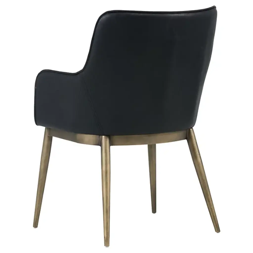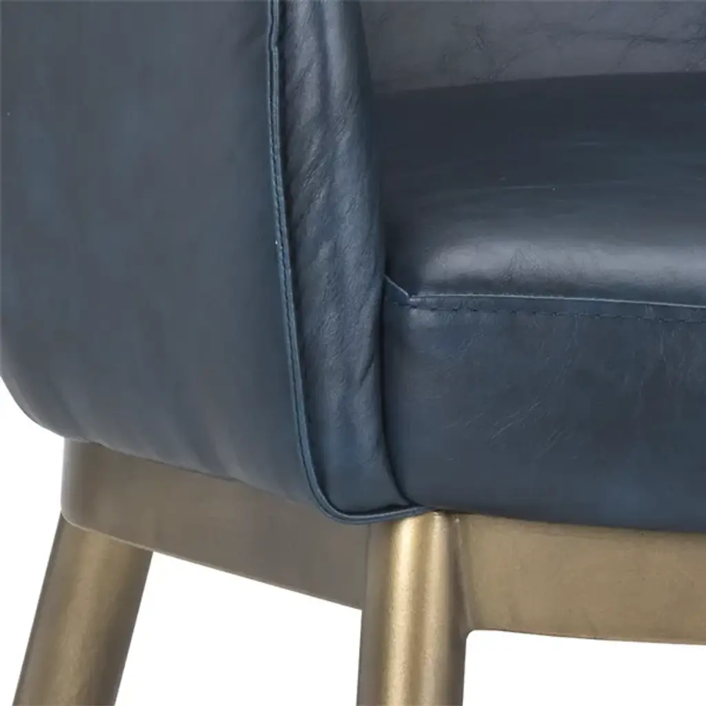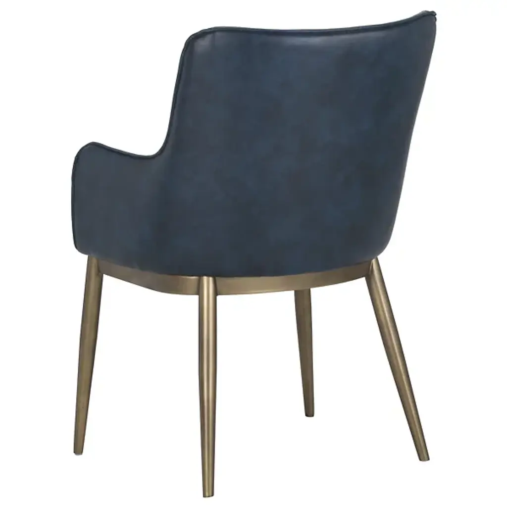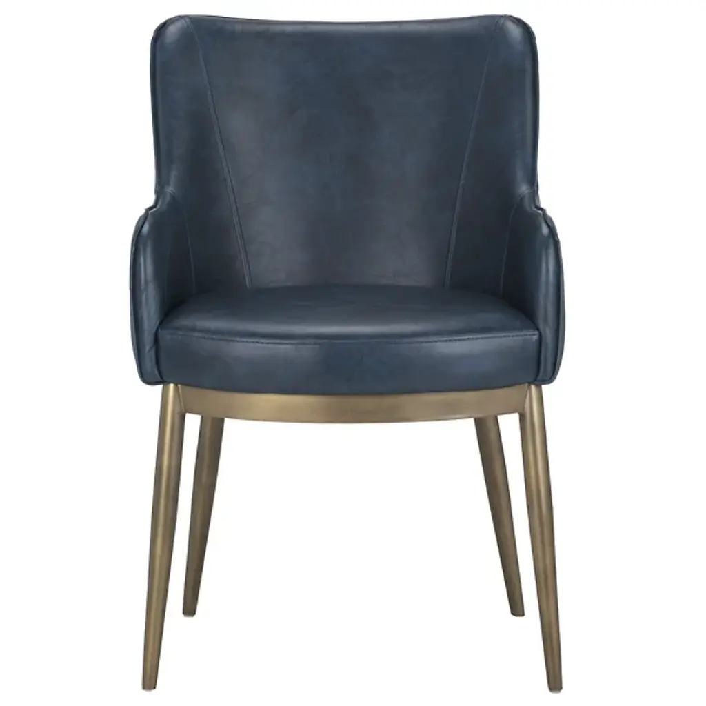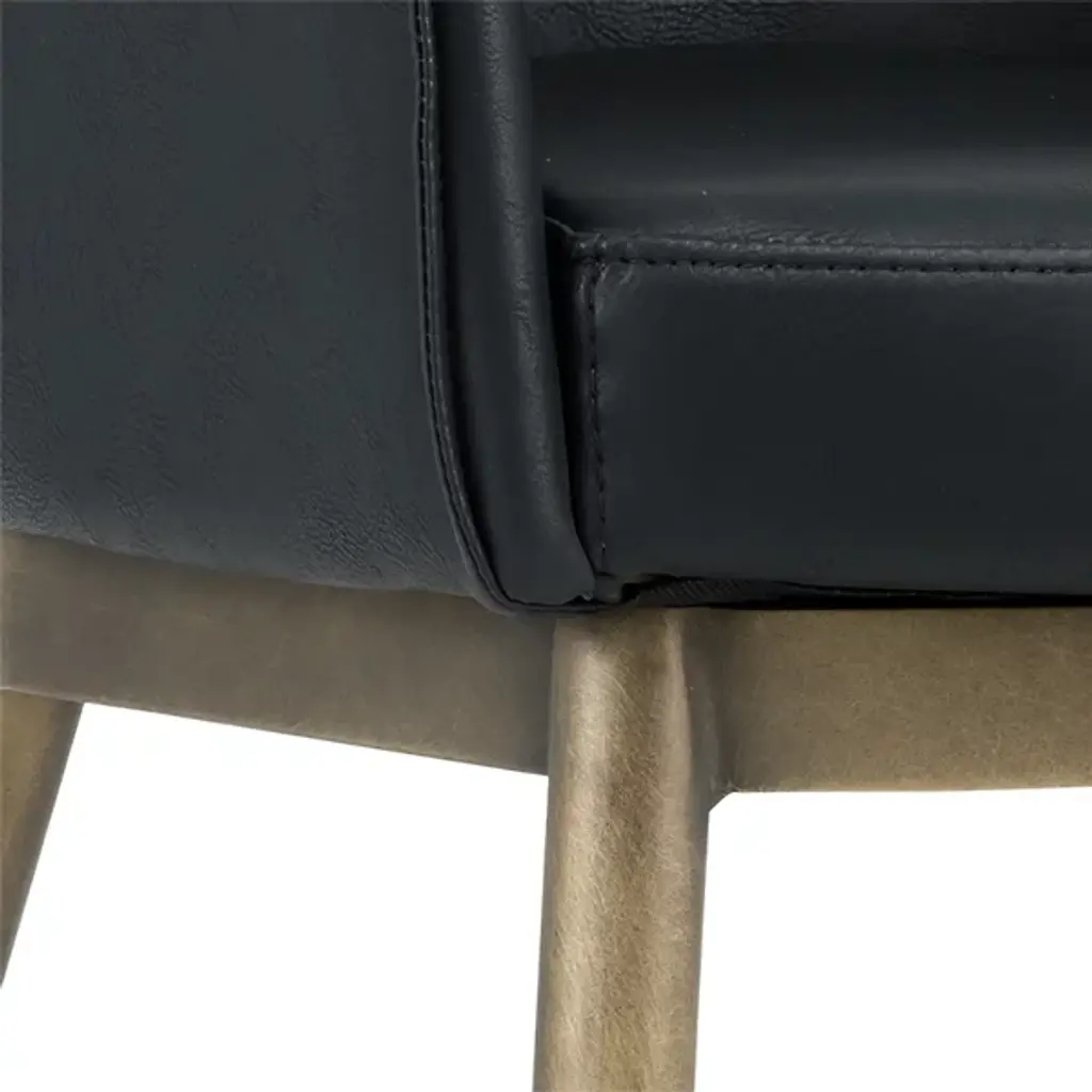Presented by Sunpan, the Franklin Dining Armchair is an elegant and compact seating option. The chair showcases a compact barrel back design, providing both support and a streamlined aesthetic. The faux leather upholstery, adorned with artisan-applied touches, replicates the look of genuine leather, with subtle variations that give each piece a unique charm. The steel legs gracefully sit at a slightly tapered angle, while foam filling in the seating area ensures a comfortable and enjoyable dining experience.