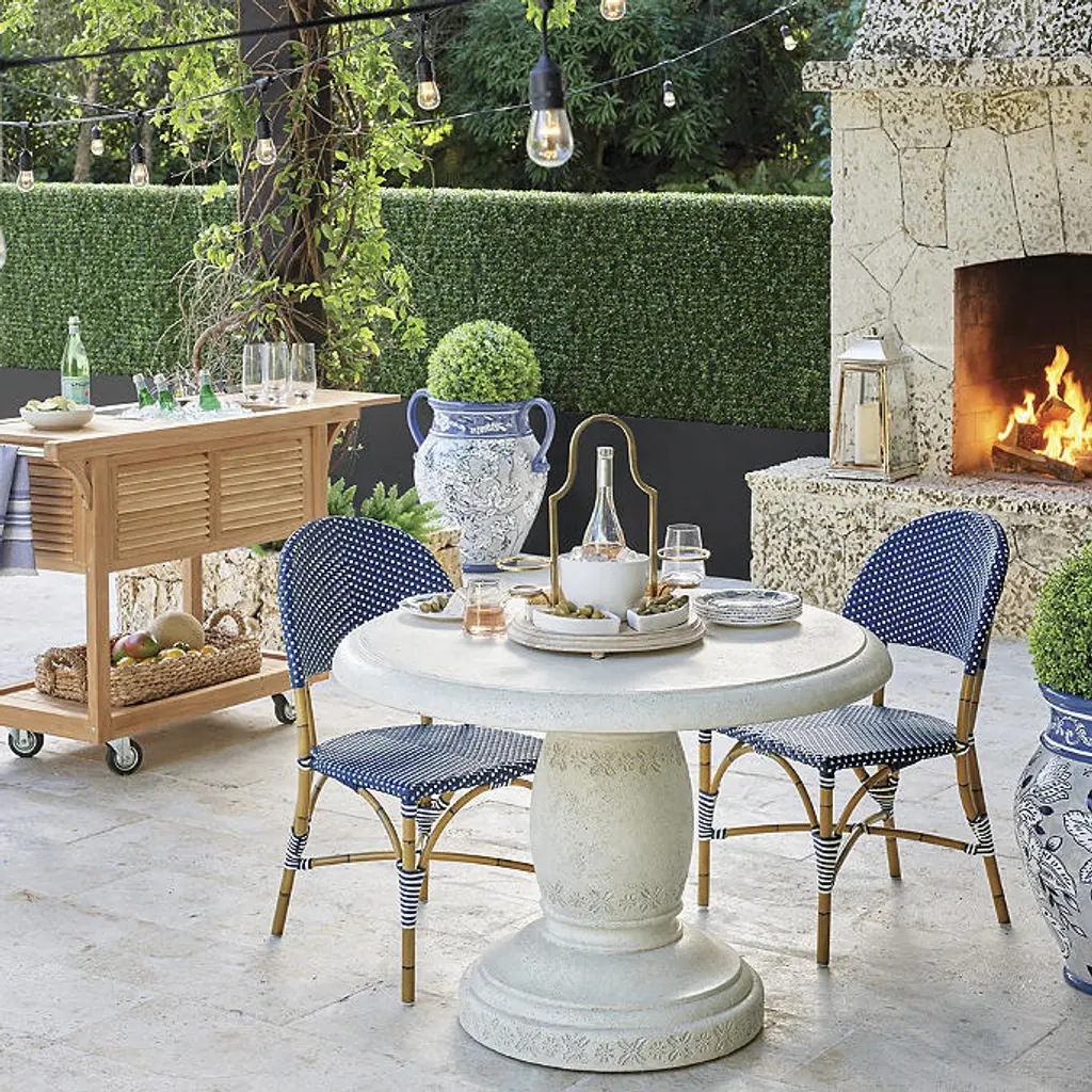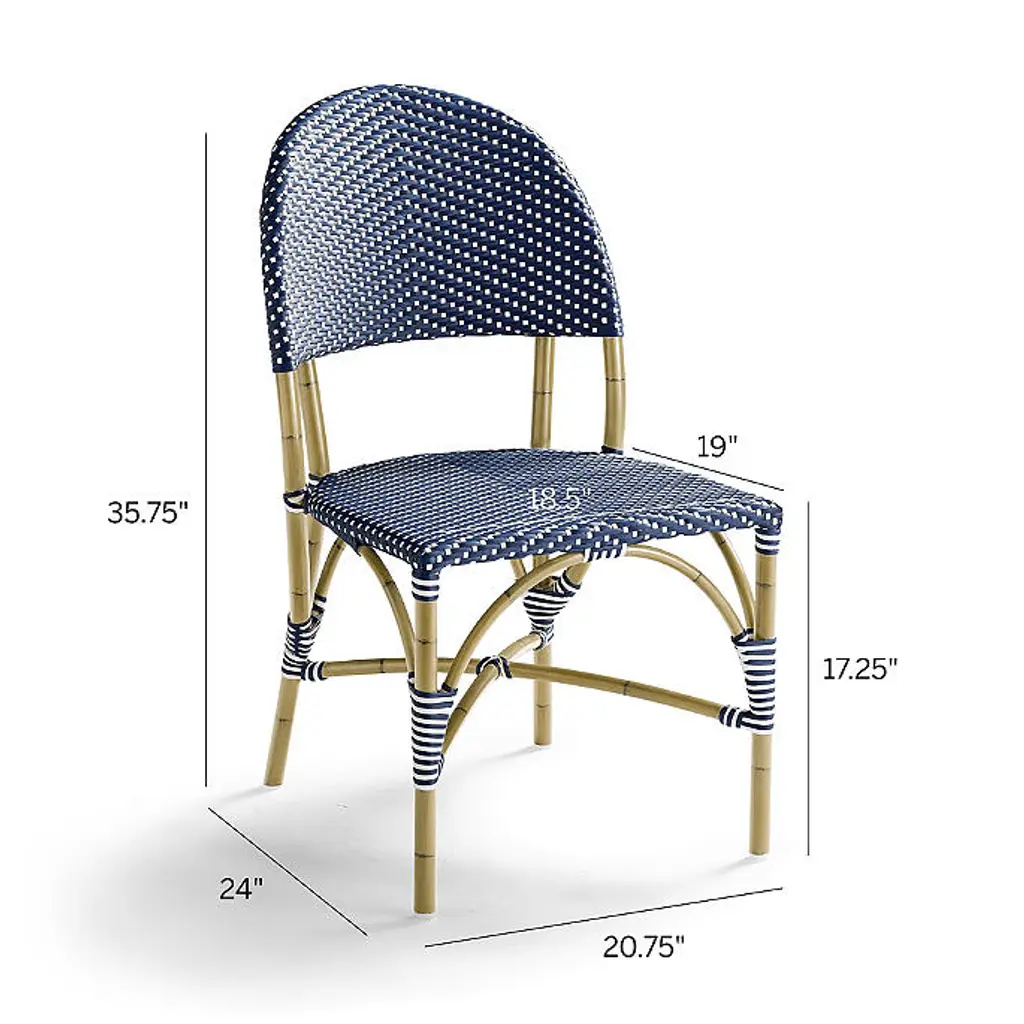 Our lightweight French Café Aluminum Side Chair make an outdoor setting more elegant at a moment's notice. Weather-defying wicker is woven over aluminum frames to create the rich look of natural rattan without the worries. Durable yet lightweight aluminum frame is finished with a protective powdercoat to resist the elements Premium wicker construction resists mold, mildew, fading and splintering Great for smaller spaces or as extra guest seating Arrives assembled Imported At Frontgate, our primary focus is quality. We guarantee that every product we sell will stand up to the supreme test – our customers' satisfaction. To learn more about our policies, visit our Shipping & Processing, Returns & Exchanges and Warranty & Price Guarantee pages.
