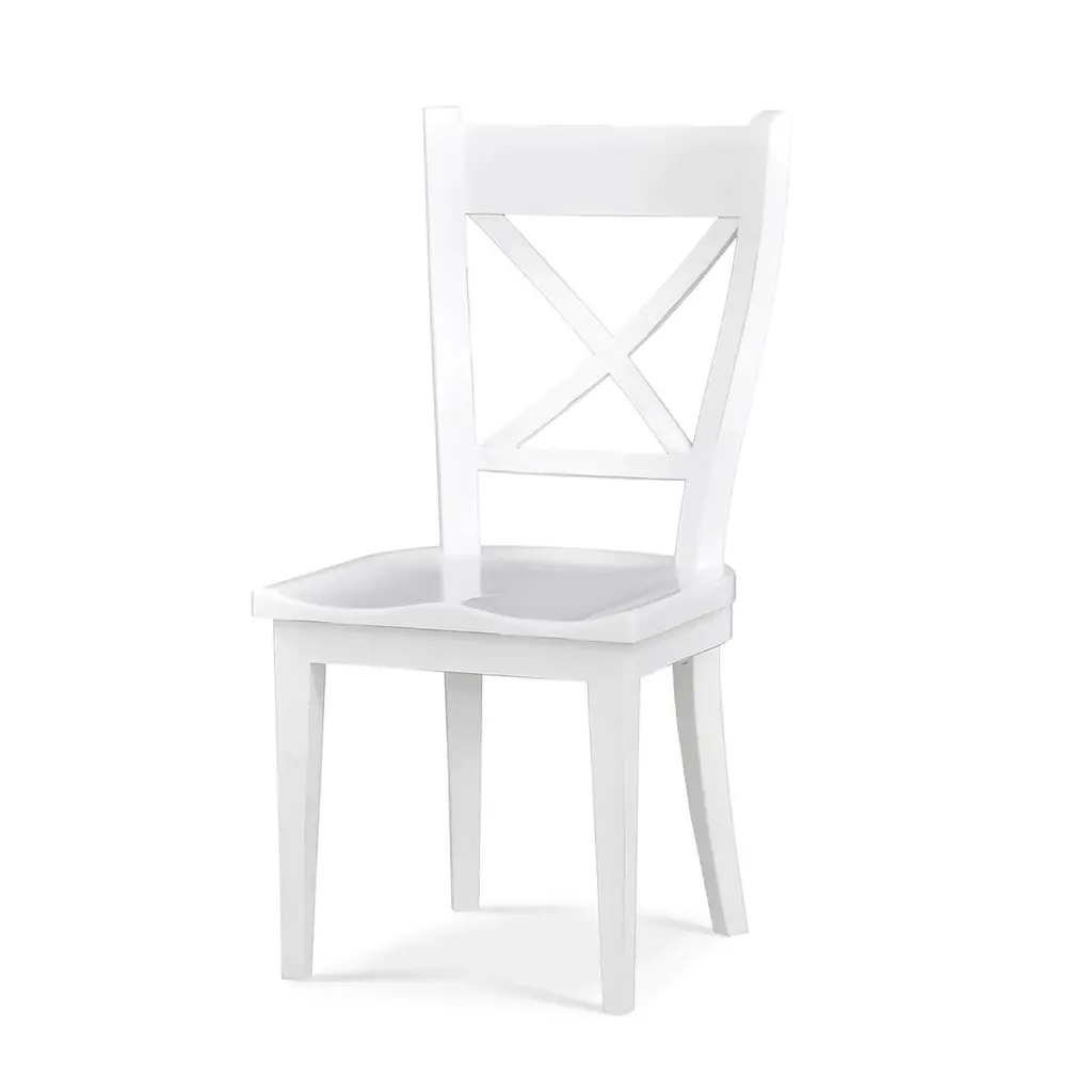 A perfect blend of traditional charm and modern functionality. This chair features a solid wooden frame with a hand-painted Architectural White finish, ensuring both durability and a timeless appeal. The backrest showcases an elegant cross-back design, adding a touch of classic French sophistication.The contoured wooden seat provides exceptional comfort, making this chair an ideal addition to any kitchen or dining area. With its clean lines and rustic aesthetic, this chair seamlessly complements both contemporary and traditional interiors.Dimensions: 19" W x 21" D x 39" HSeat - 18"Custom finish options are also available. Contact us to learn more.