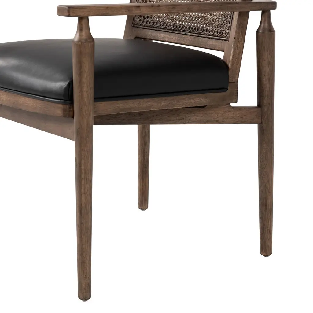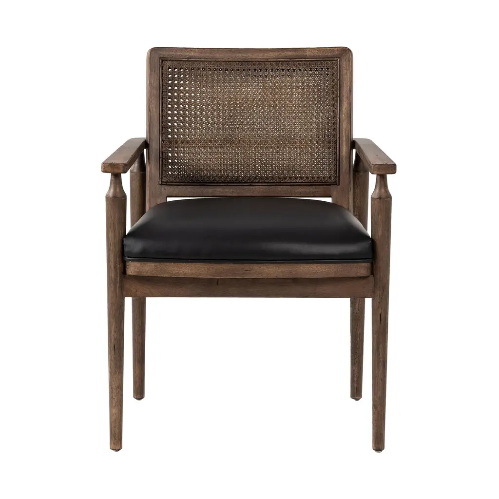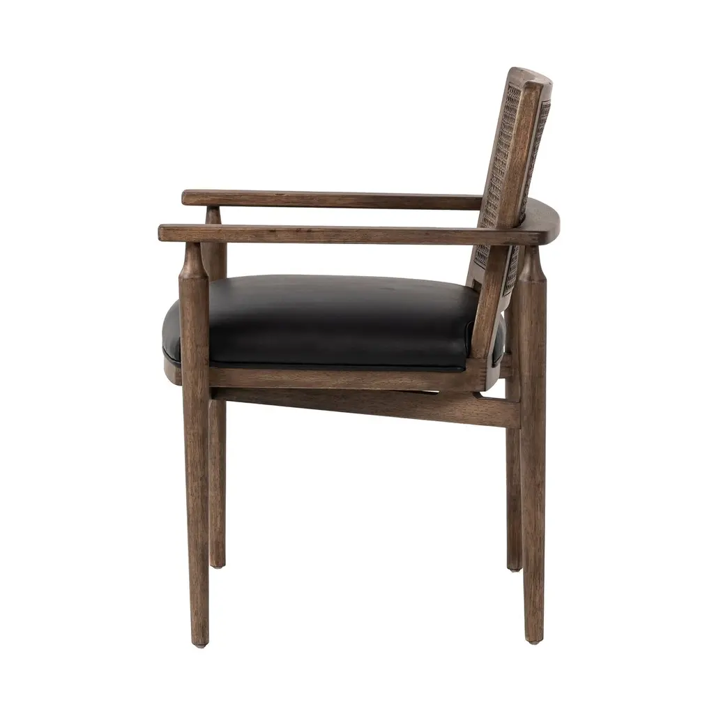 The Freya Dining Armchair embodies a reimagined antique style, offering a luxurious seating experience. Its design features a top-grain leather seat, elegantly framed by expertly finished parawood, creating a timeless piece that adds sophistication to any dining space.
