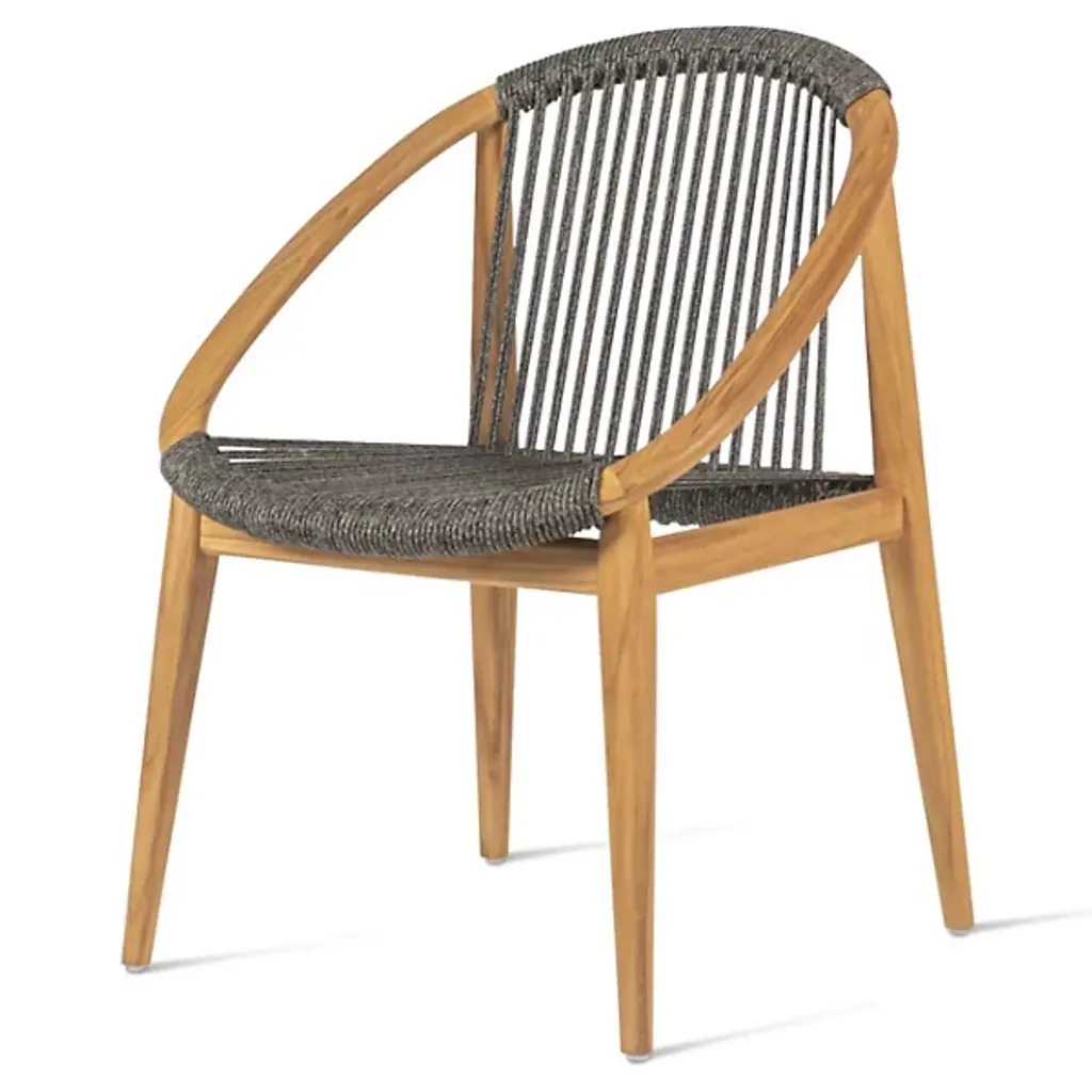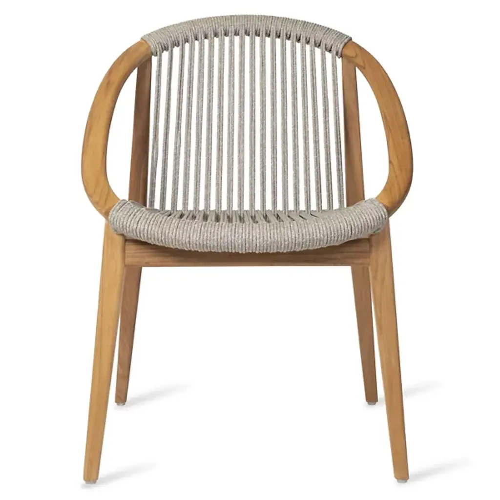 Embrace the charm of the Frida Outdoor Dining Chair from Vincent Sheppard. This armchair enhances any outdoor setting with its unique design that's both eye-catching and comfortable. The spacious seat is comprised of a tightly-strung polypropylene rope, creating an airy look that is beautiful from all angles. Whether you're looking to upgrade your patio, garden, or any other outdoor area, this chair from the Frida collection bridges practicality and style seamlessly.