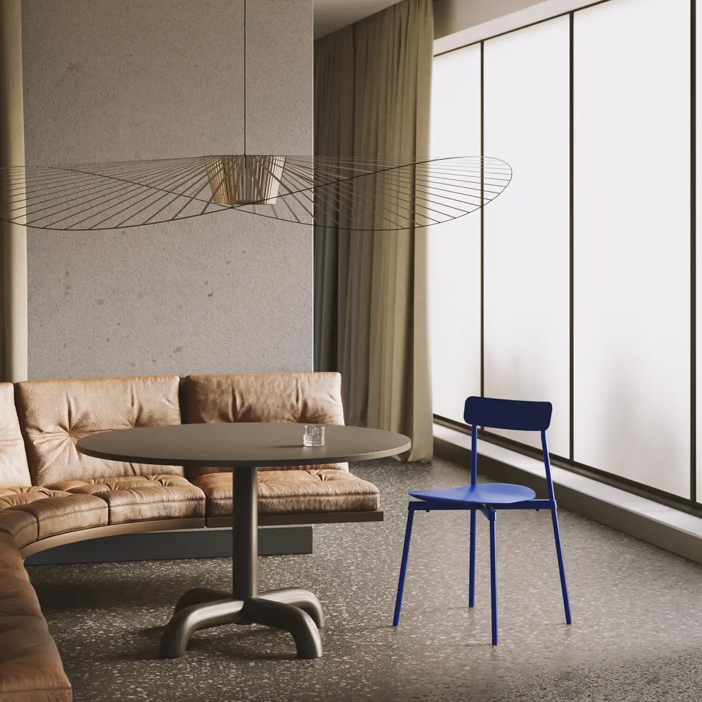 Upgrade your dining experience with the sleek and playful Fromme Dining Side Chair from Petite Friture. Crafted with durable, lightweight aluminum, this chair offers maximum comfort with shock absorbers under the seat. Its water and UV-resistant grained powder coating ensures long-lasting use, both indoors and outdoors. Stackable up to 6 chairs, it perfectly complements the matching table for a modern and functional set. Highlights