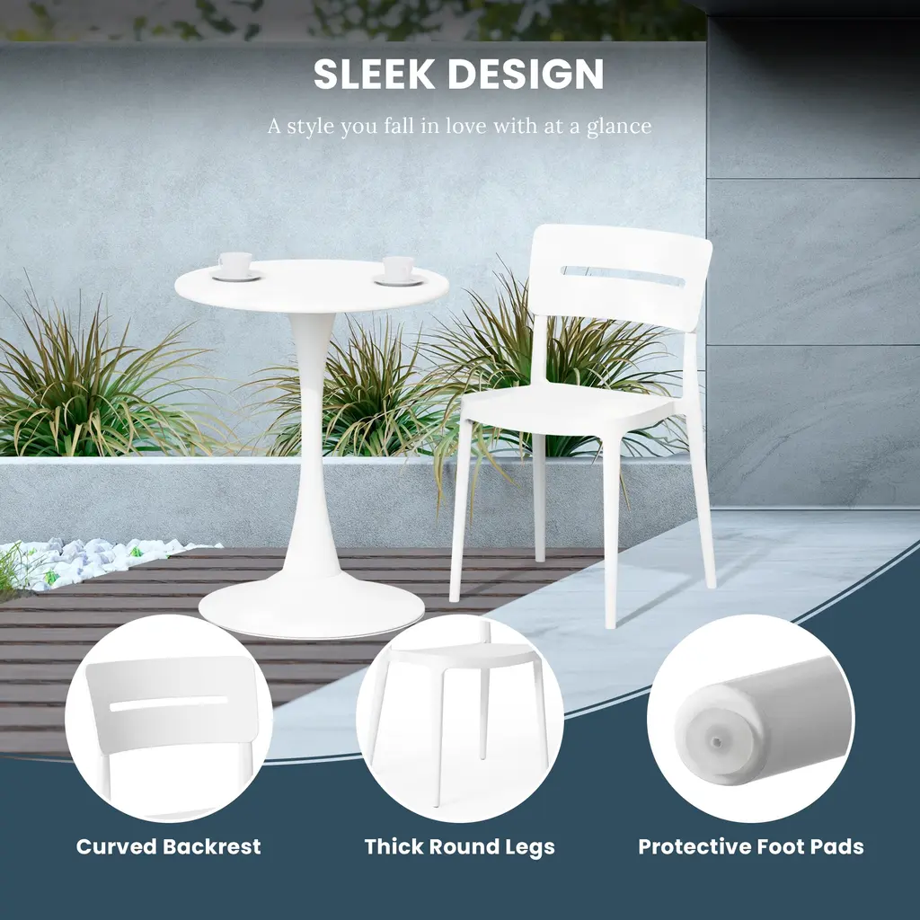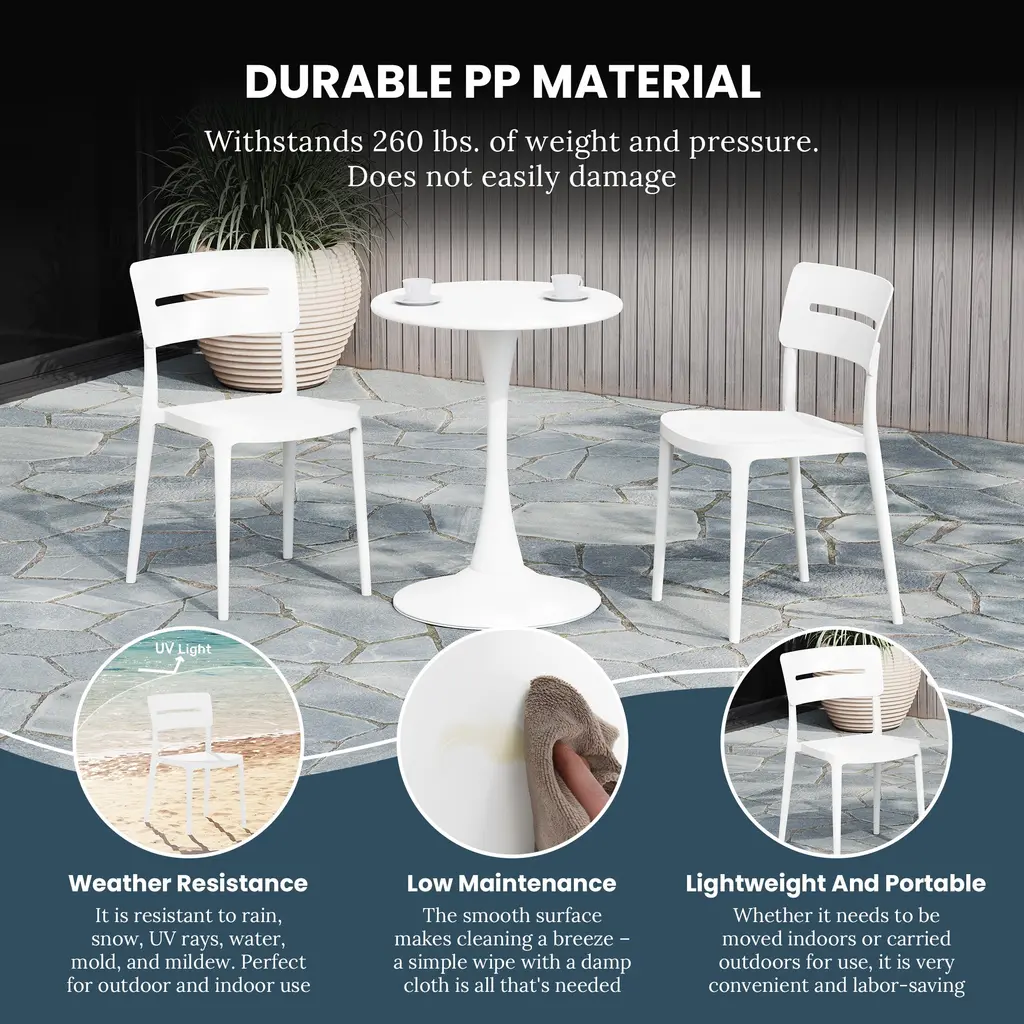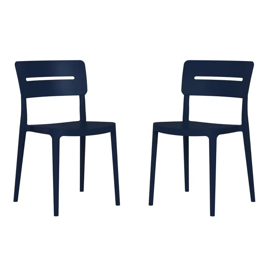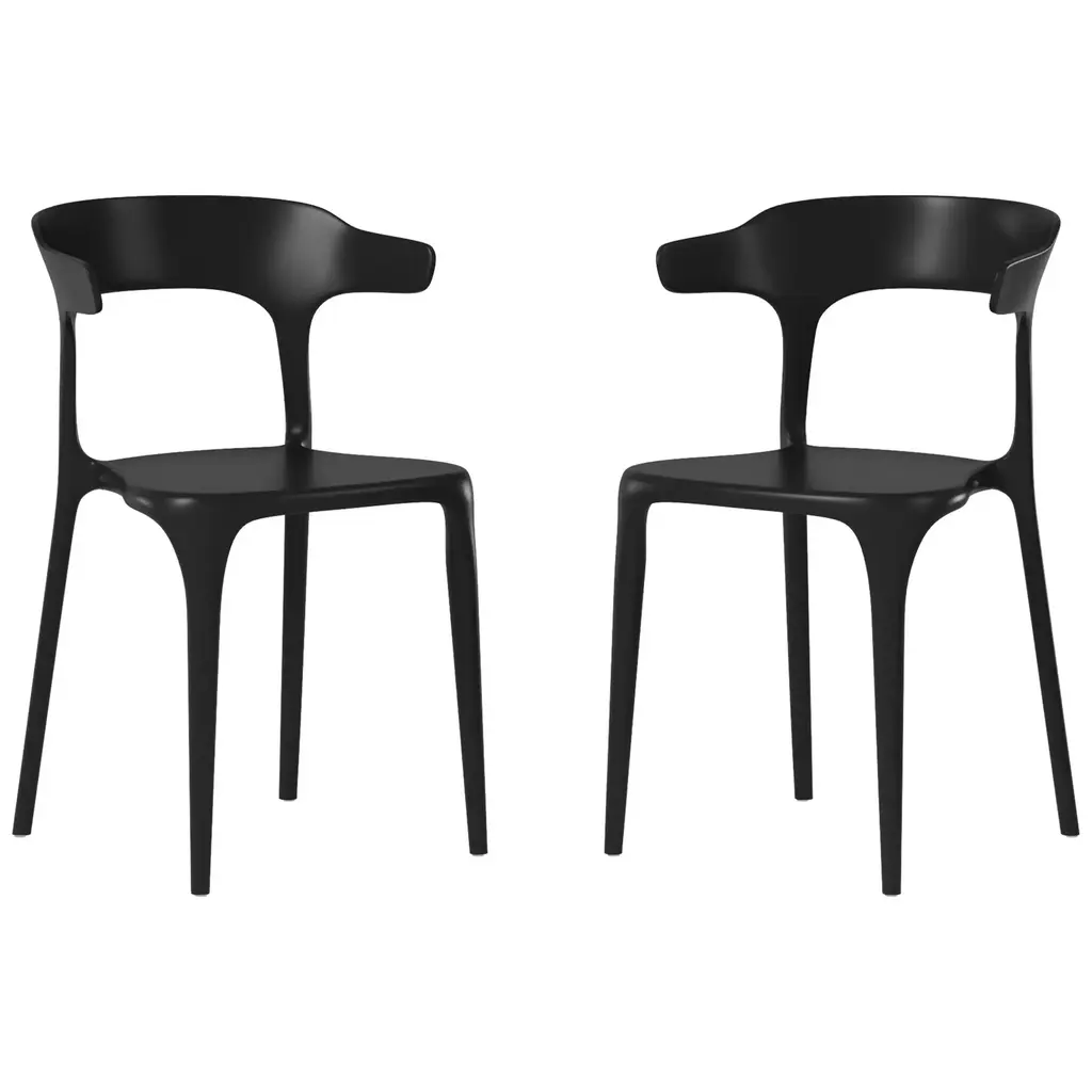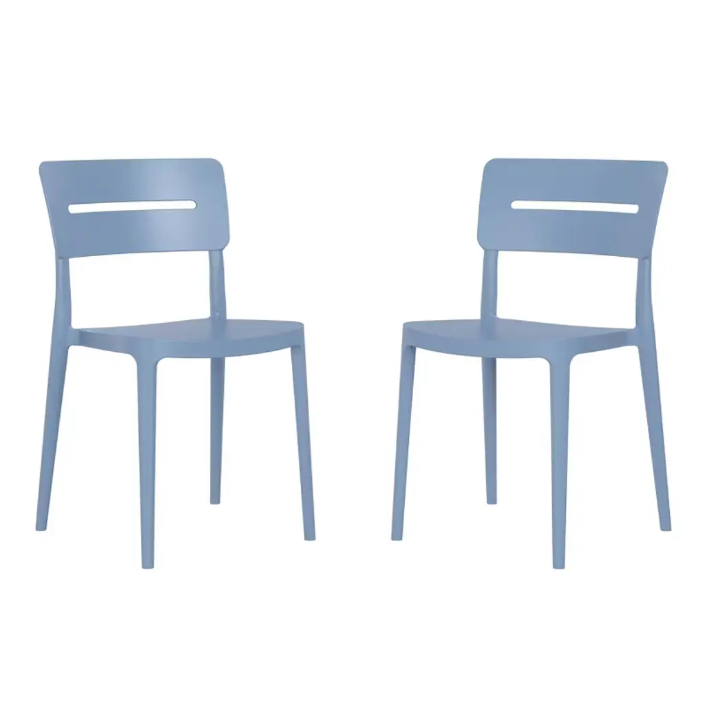 Appealing and modern style that is sure to give your balcony or outdoor terrace some added charm with this set of two modern outdoor dining chairs. Crafted from durable, all-weather PP resin, prepared to withstand the elements while retaining their vibrant color year-round thanks to their UV and fade-resistant properties. Lightweight and simple to move, they are perfect for creating a flexible dining area on even the smallest balconies or patios. Designed with comfort in mind, a ventilated backrest keeps you cool on warm summer evenings. And when not in use, they stack neatly for easy storage.While we strive to accurately represent product colors, please be aware that actual colors may vary slightly due to individual screen settings and lighting conditions. FeaturesDetails:Dining Chair