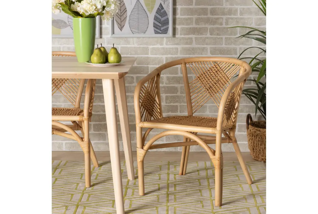 Gamora Modern Natural Brown Rattan Woven Dining Chair