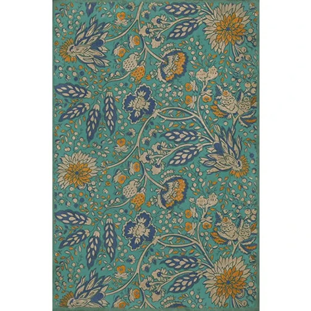 Cream, red and blue florals on vinyl floor mats, suggest a nostalgic vibe. Inspired by old floor mats and vintage linoleum, these vibrant vinyl floor cloths offer warm colors with beautiful aged characteristic. Their worn appeal makes them great in kitchens and baths, while the smooth surface is perfect in an office where rolling chairs can glide. The cloths can be used in controlled outdoor settings such as a screened-in porch or covered lanai. These wonderful designs are printed on durable, certified non-slip, lay-flat vinyl. Due to their mastered printing process please expect some variation in hue and saturation. With a wide range of color combinations and sizes to choose from, enjoy picking your favorites to dress up your floor.