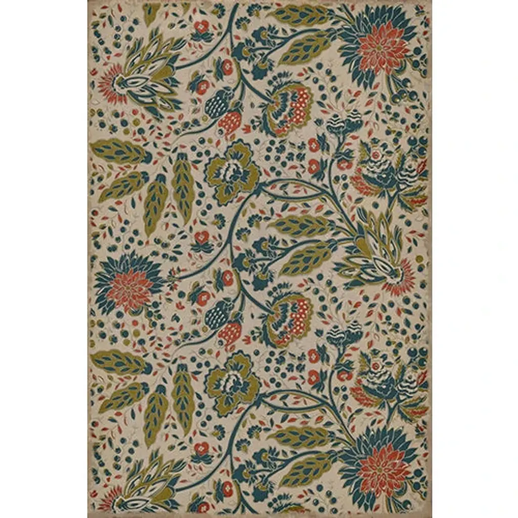 Teal, orange and blue florals on vinyl floor mats, suggest a nostalgic vibe. Inspired by old floor mats and vintage linoleum, these vibrant vinyl floor cloths offer warm colors with beautiful aged characteristic. Their worn appeal makes them great in kitchens and baths, while the smooth surface is perfect in an office where rolling chairs can glide. The cloths can be used in controlled outdoor settings such as a screened-in porch or covered lanai. These wonderful designs are printed on durable, certified non-slip, lay-flat vinyl. Due to their mastered printing process please expect some variation in hue and saturation. With a wide range of color combinations and sizes to choose from, enjoy picking your favorites to dress up your floor.