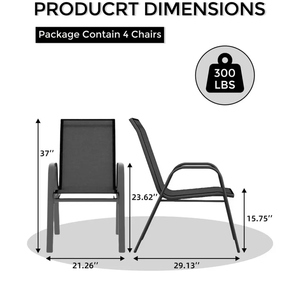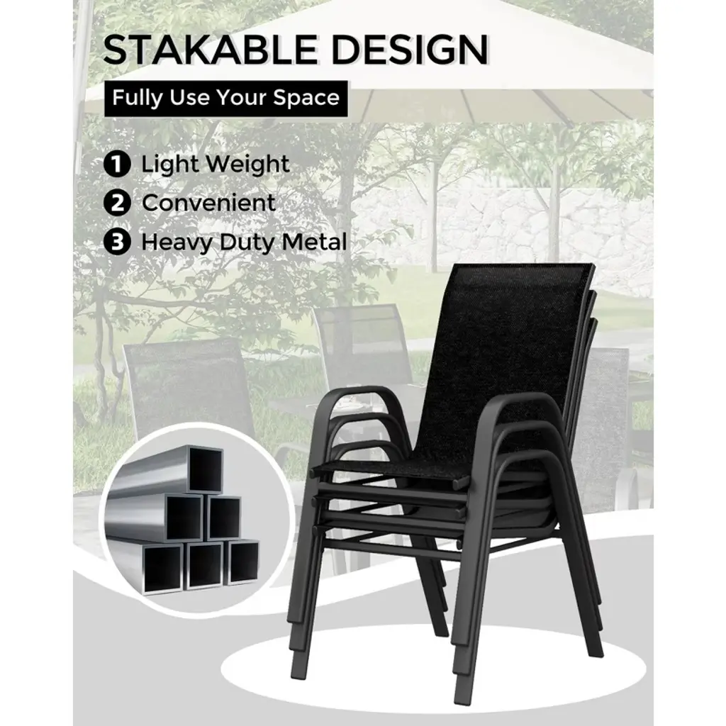 Garvee 4-pack Stackable Patio Chairs ̈C High-back Metal Frame With Textilene Fabric, Outdoor Dining Chairs For Lawn, Deck, Garden, Black