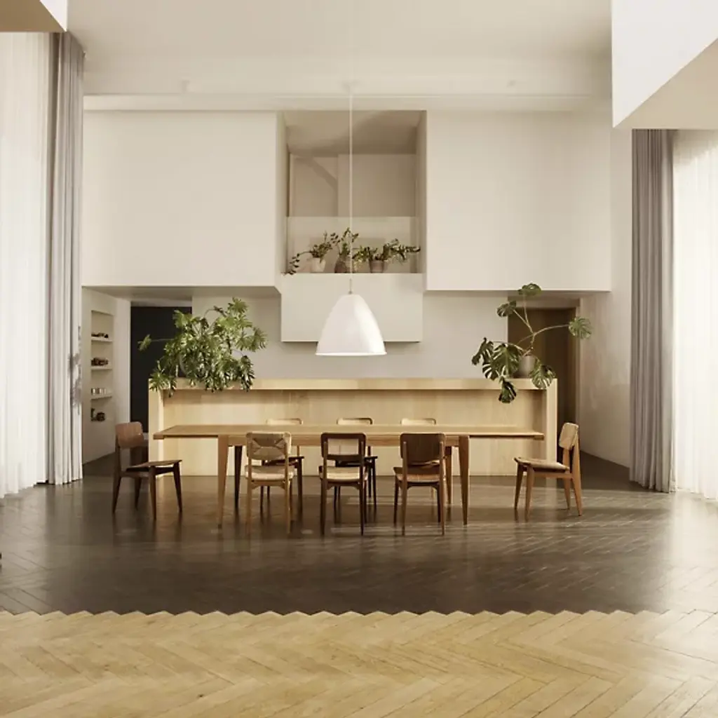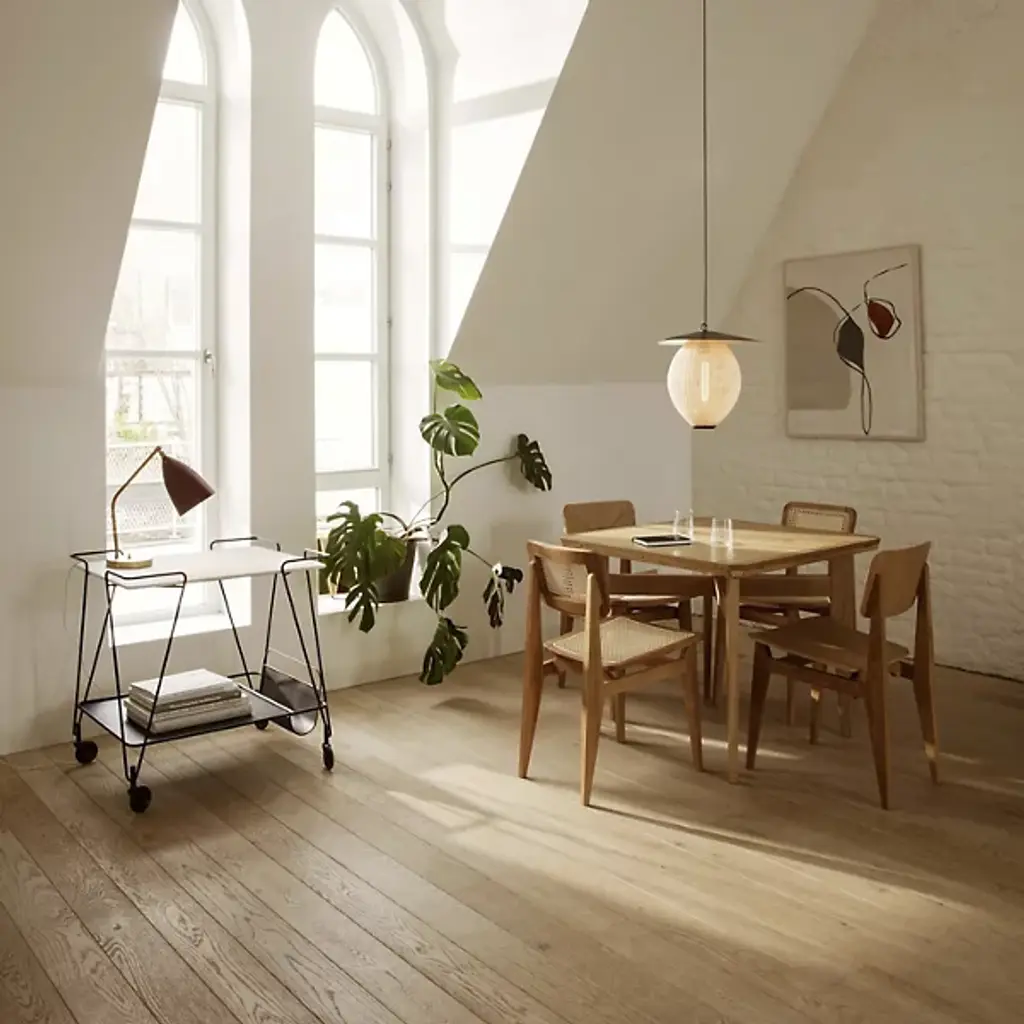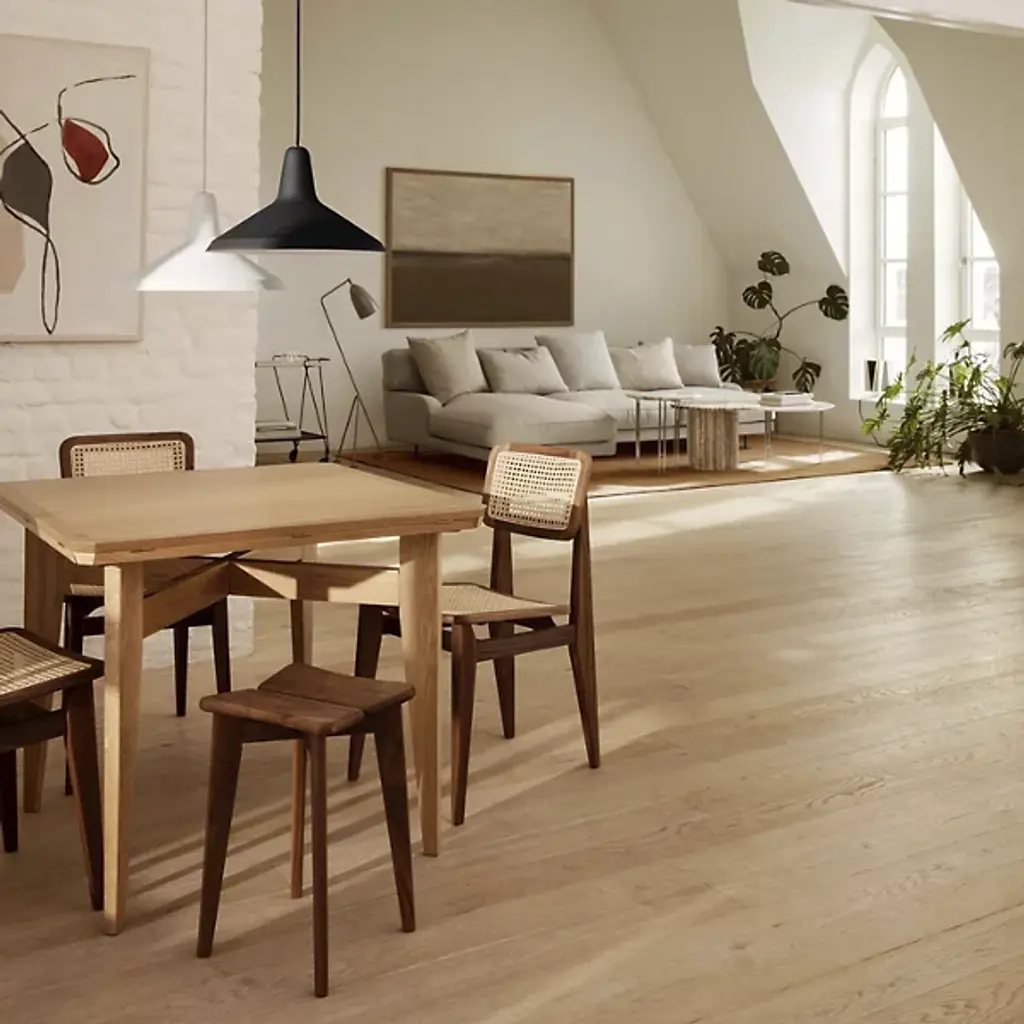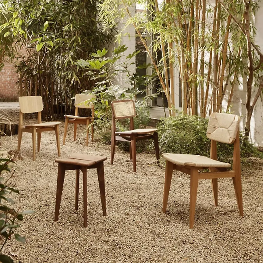 Marcel Gascoin conceived of the Gascoin C-Chair Dining Chair in post-war France, 1947. C-Chair came to be known as one of Gascoin’s most prolific designs, embodying not only the designer’s impactful practical aesthetic, but his clear social conscience during these years. Changing home sizes at the end of World War II necessitated a new furniture footprint and a simple, functional shape. C-Chair speaks to a sense of minimalism while displaying contrasting details of gentle cane, hand woven paper-cord, or veneer seats with solid, sculptural legs. The C-Chair explores craft, material, and utilization of space with an inviting sensibility.