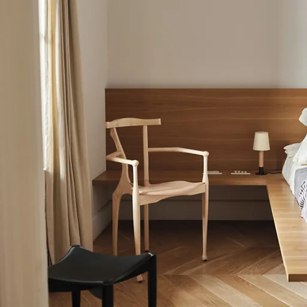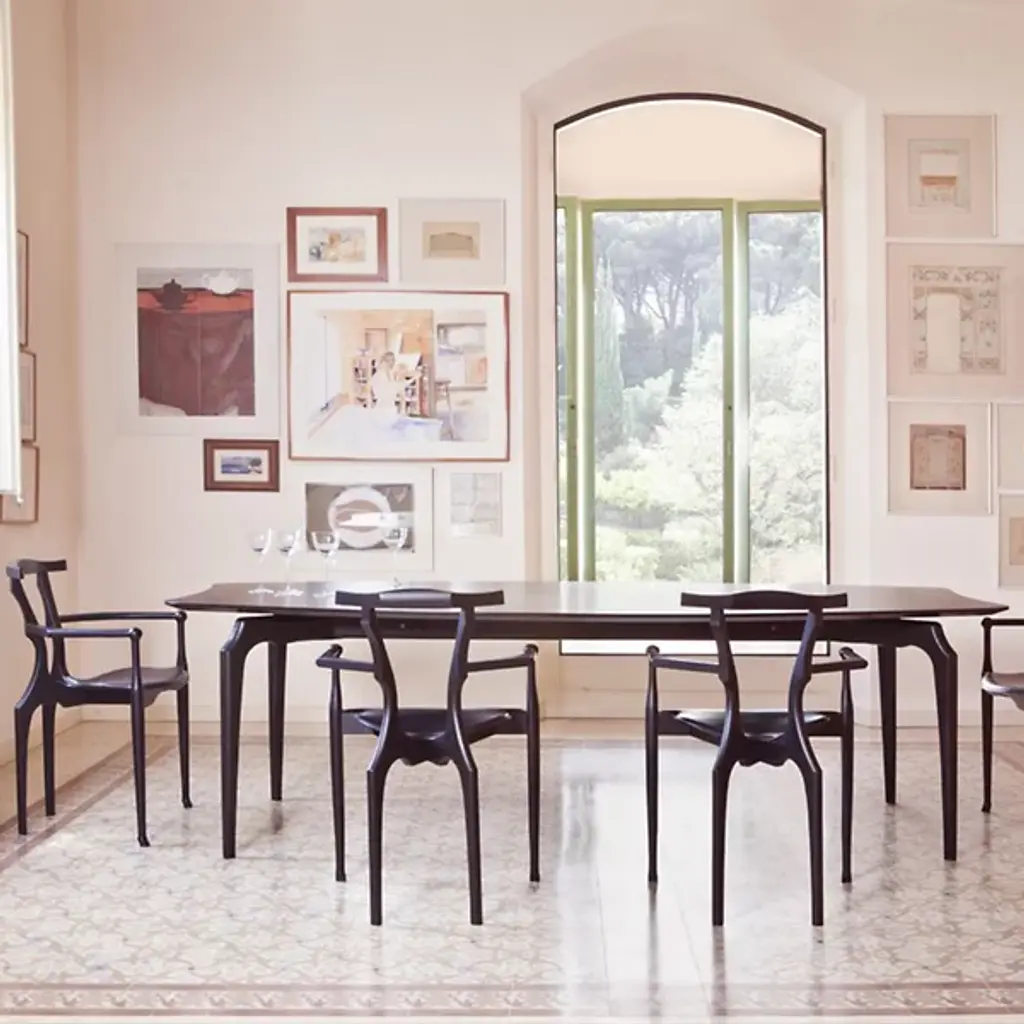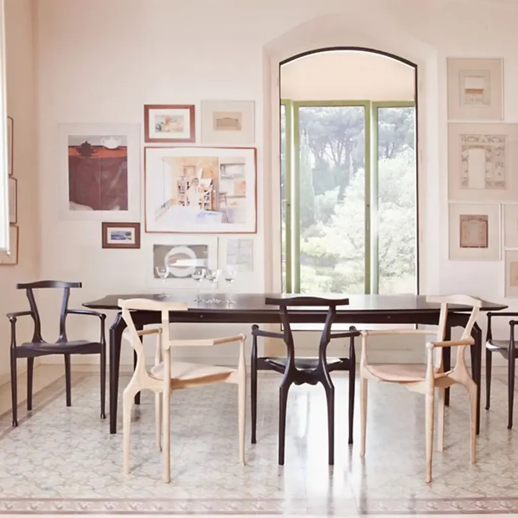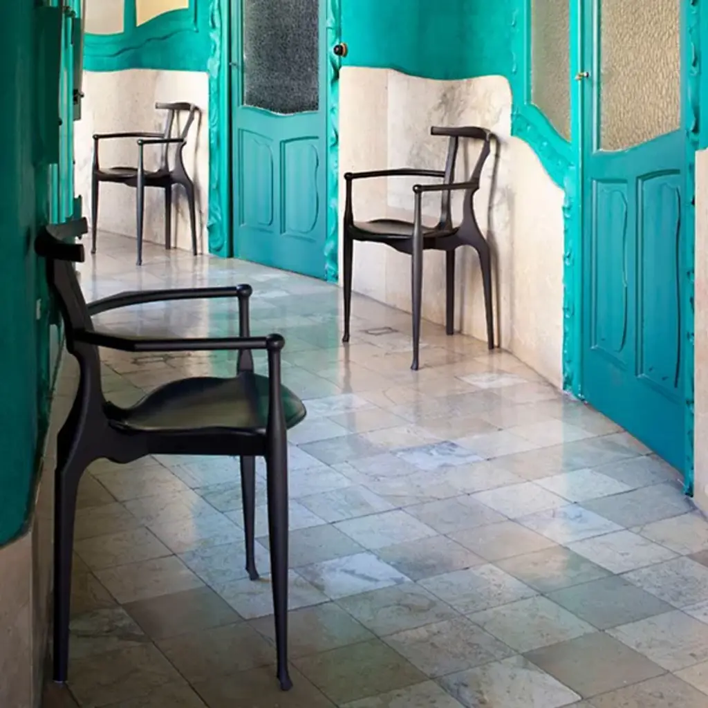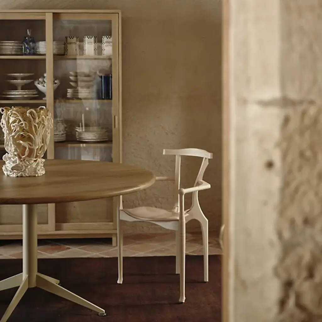 The Gaulino Dining Armchair with Leather Seat from BD Barcelona offers a stately Spanish appeal to interiors. A languid, open design from Oscar Tusquets, whose work has appeared in museums, its expressive elements show his training in architecture and design, with a smooth surface that reveals his experience in painting. With a name that is a portmanteau of the talented Antoni Gaudí and Carlo Mollino, its slender ash construction swoops up, setting rounded accents at the corners of armrests. An open back provides both flaring artistry and comfortable bracing, while a soft seat of natural hide provides elegant, encompassing comfort.