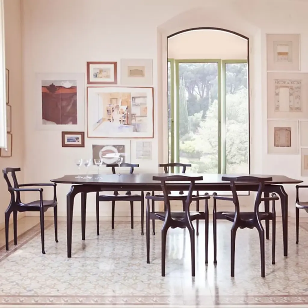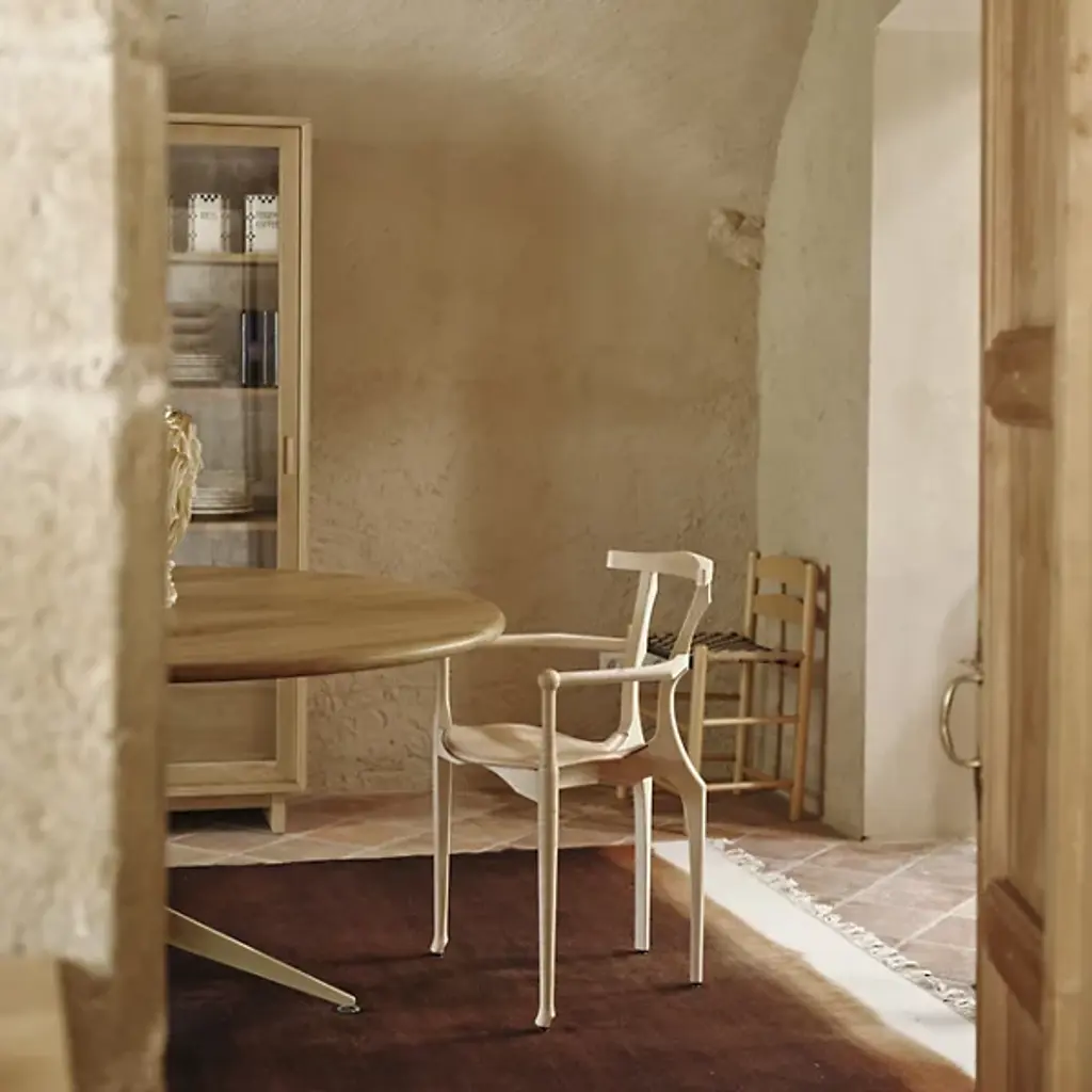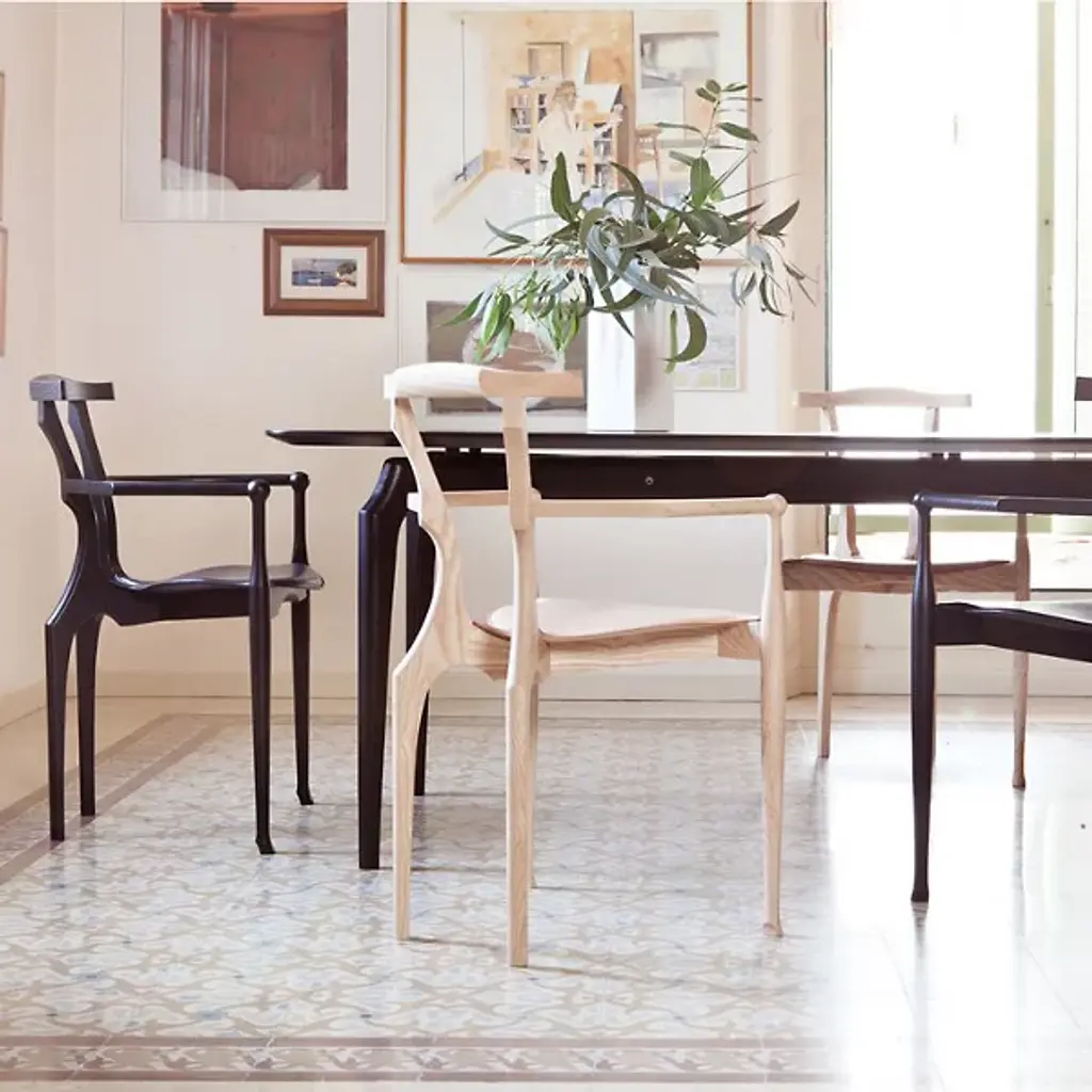 The Gaulino Dining Armchair with Leather Seat from BD Barcelona offers a stately Spanish appeal to interiors. A languid, open design from Oscar Tusquets, whose work has appeared in museums, its expressive elements show his training in architecture and design, with a smooth surface that reveals his experience in painting. With a name that is a portmanteau of the talented Antoni Gaudí and Carlo Mollino, its slender ash construction swoops up, setting rounded accents at the corners of armrests. An open back provides both flaring artistry and comfortable bracing, while a soft seat of natural hide provides elegant, encompassing comfort.