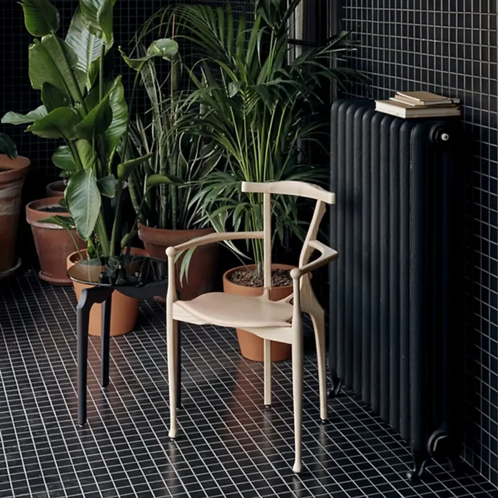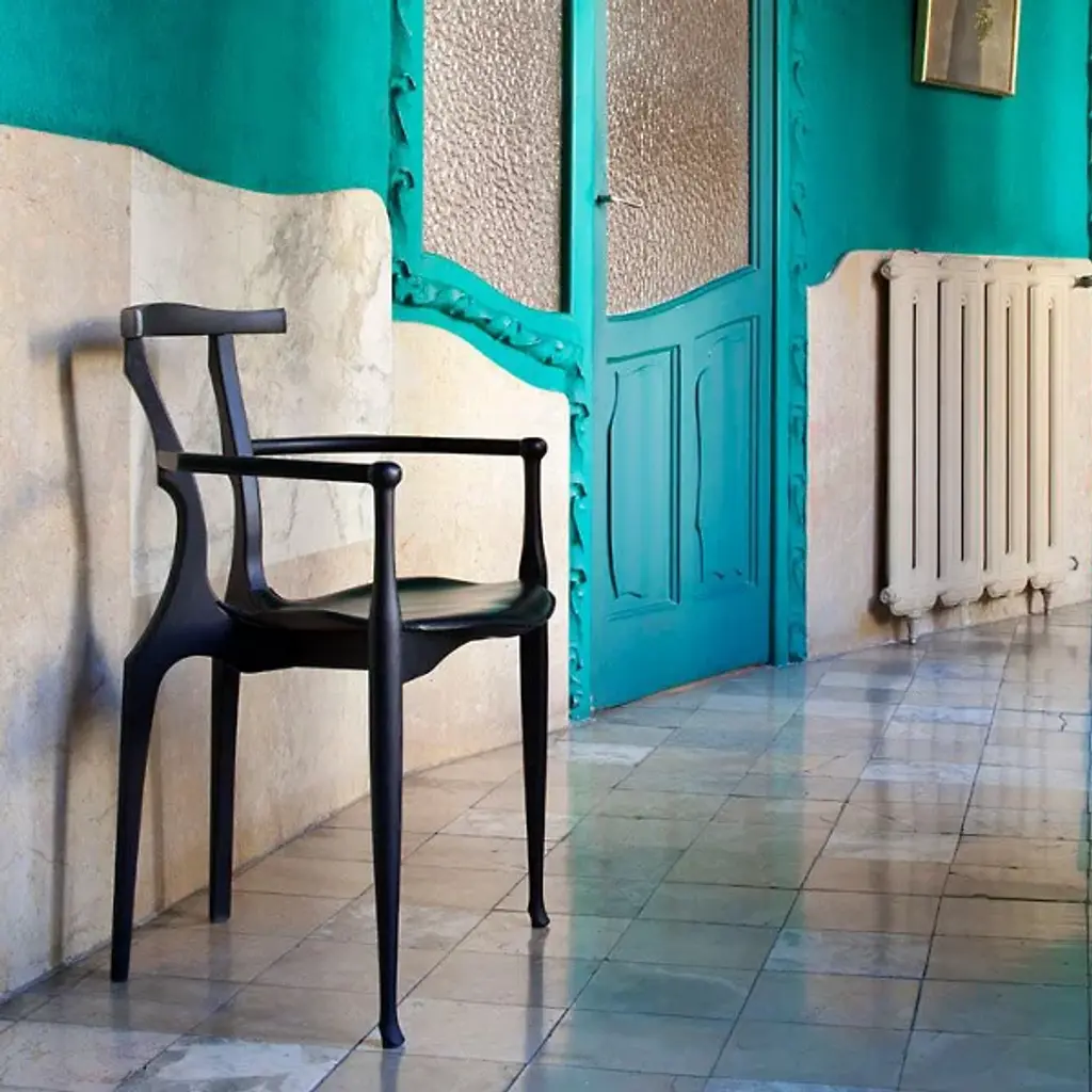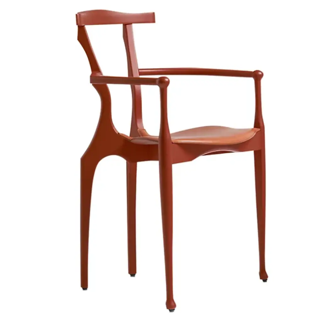 The Gaulino Dining Armchair with Leather Seat from BD Barcelona offers a stately Spanish appeal to interiors. A languid, open design from Oscar Tusquets, whose work has appeared in museums, its expressive elements show his training in architecture and design, with a smooth surface that reveals his experience in painting. With a name that is a portmanteau of the talented Antoni Gaudí and Carlo Mollino, its slender ash construction swoops up, setting rounded accents at the corners of armrests. An open back provides both flaring artistry and comfortable bracing, while a soft seat of natural hide provides elegant, encompassing comfort.