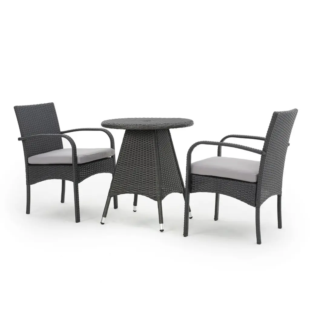 Gdfstudio Peterson Outdoor Wicker 3 Piece Bistro Set With Cushion, Gray