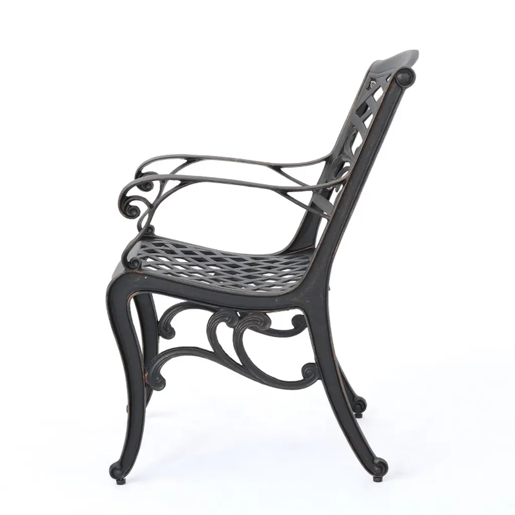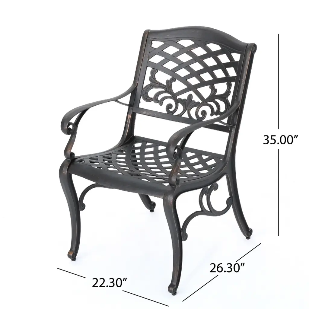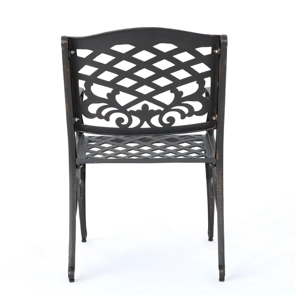 Gdfstudio Prague Outdoor Cast Aluminum Dining Chairs (Set Of 2), Black Copper