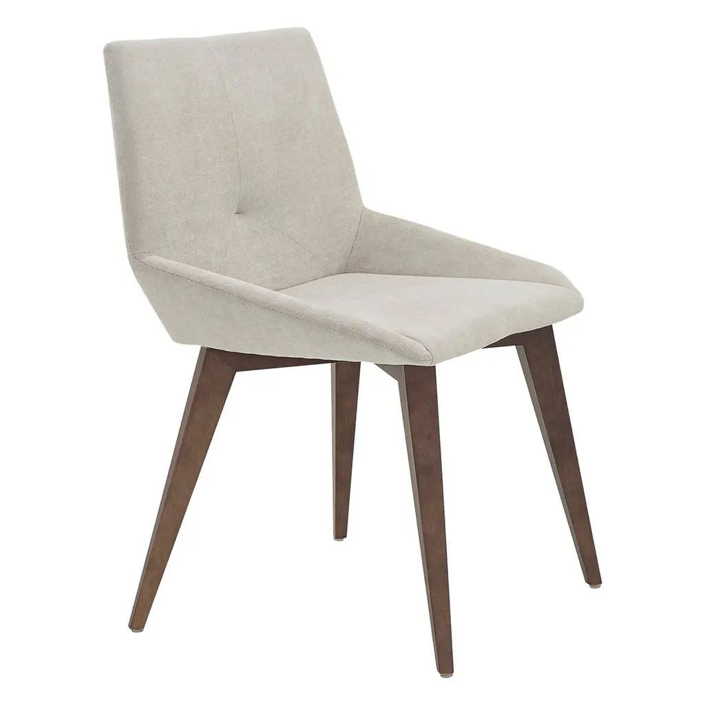 Geometric Beige Fabric Dining Chair With Walnut Finish Legs, Cubi Collection