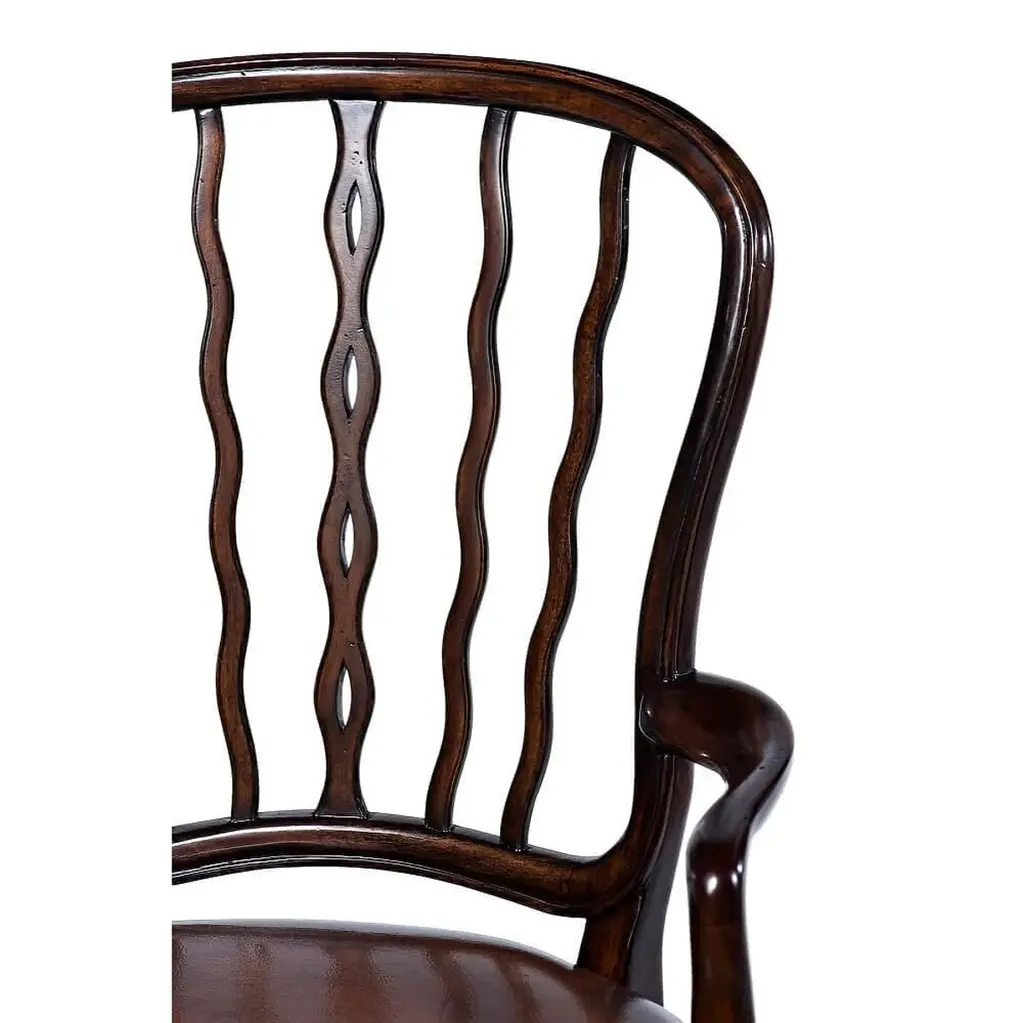 A mahogany dining armchair, the shaped waisted back with serpentine uprights above an upholstered seat, on elegant molded cabriole legs terminating in spade feet. The original very large set designed by George Seddon, circa 1800.Dimensions: 26" W x 25" D x 38" HSeat height 20"Arm height 25".These chairs ship two at a time. Kindly select multiples of two.