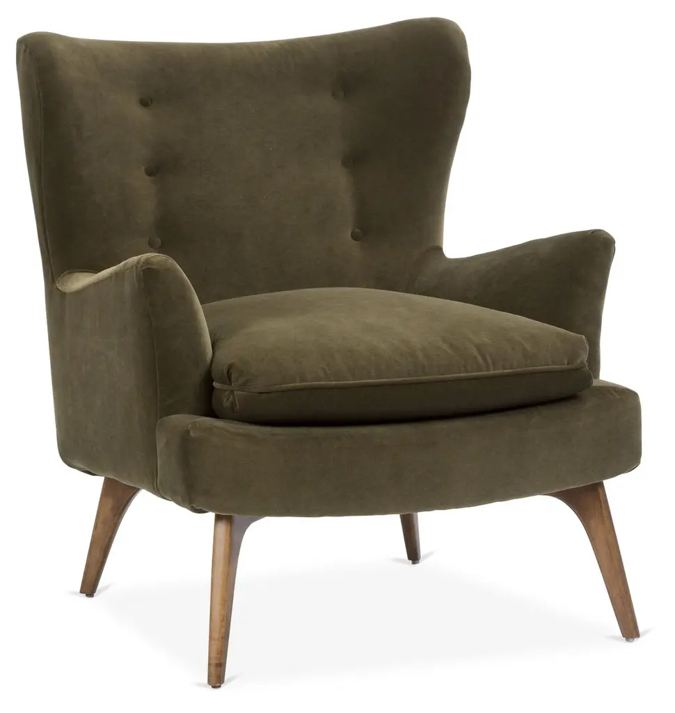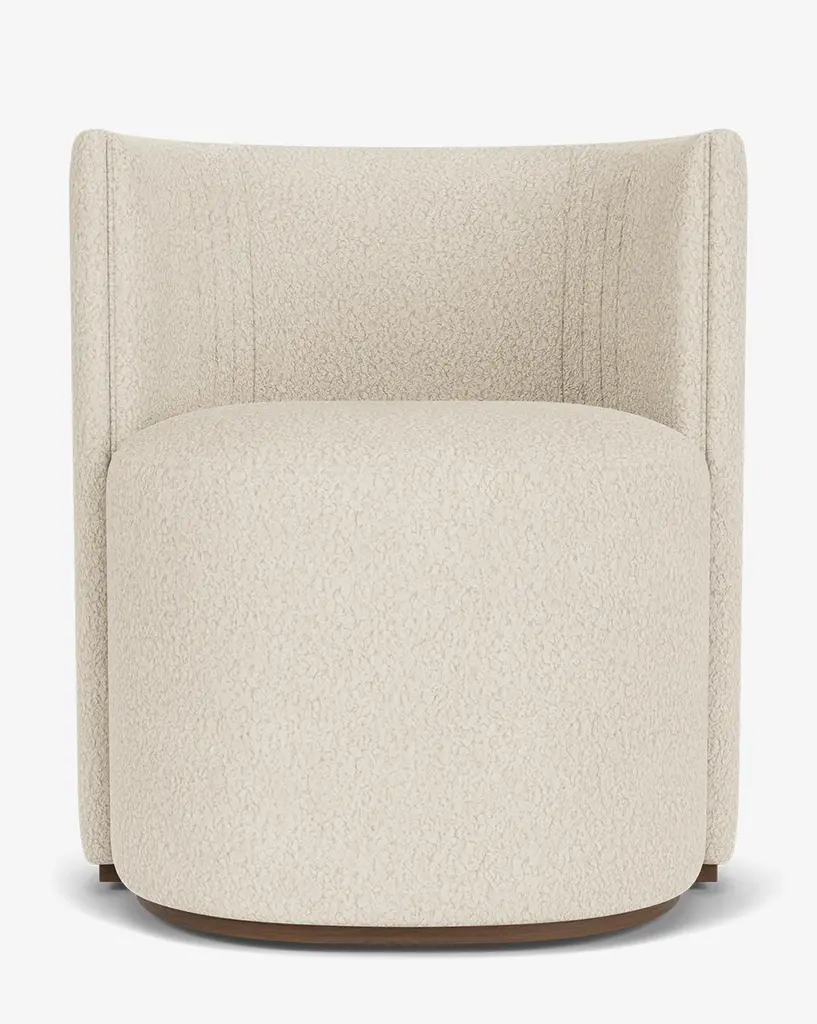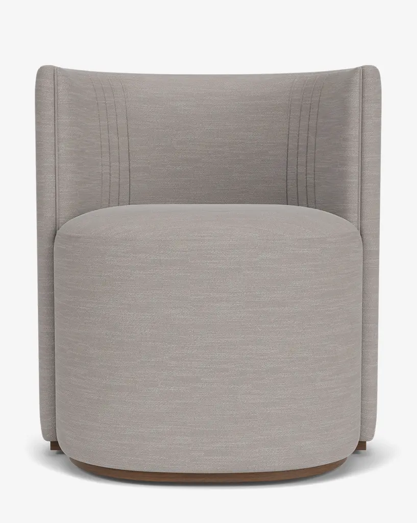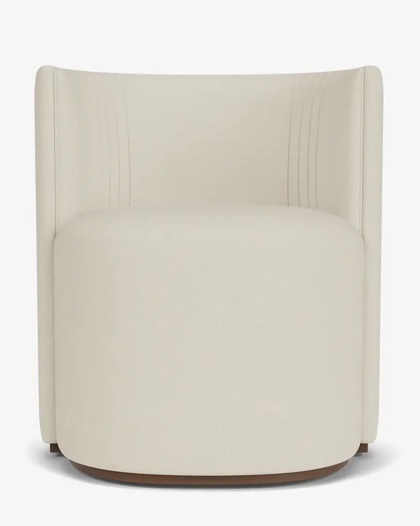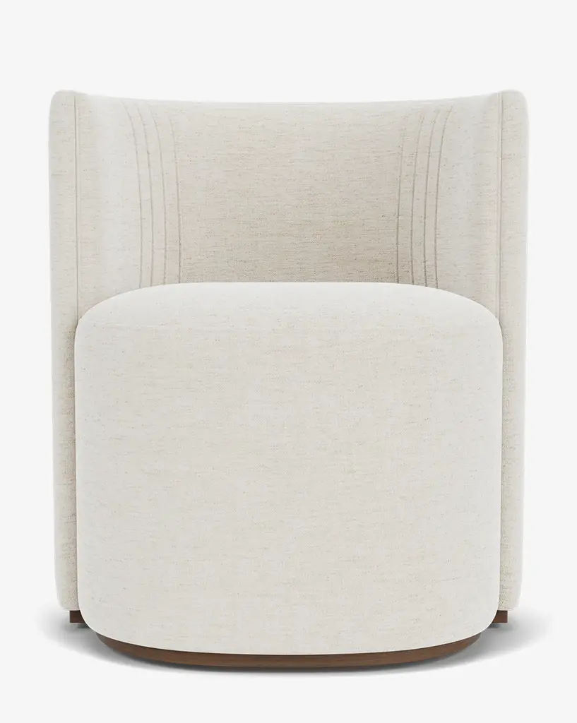Dramatic and shapely, our Georgina Dining Chair is designed with subtle art deco inspiration. Bench-made by craftsmen, the chair provides sophisticated seating in your dining room with its intentional details, barrel back, and your choice of designer upholstery.