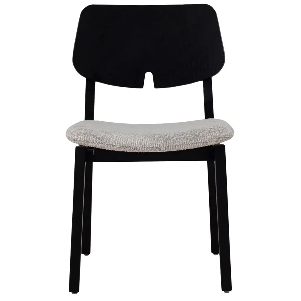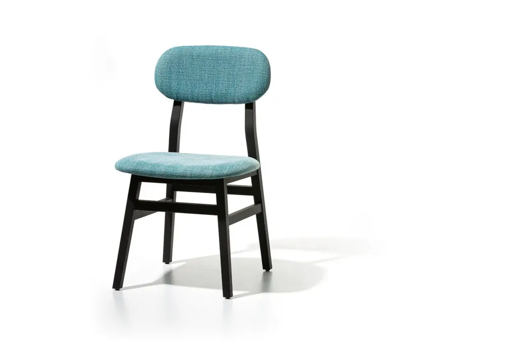 Nordic suggestions and industrial touches give life to the Brick 221/223 family of chairs. With a clean, simple structure in natural lacquered solid Canaletto walnut or beech lacquered in white, grey, black, ocean or dove-grey, they have padded back and seat for enhanced comfort. Available in two backrest variants: one smaller and more moderate, and the other with an elongated and slightly curved enveloping backrest.Side chair, frame in walnut or beech. Available wood finishes: natural lacquered American walnut; white, grey, air force blue or black lacquered beech. Upholstered seat and back, not removable cover. Available with all our fabrics except for 3D.Additional Information:Material: Wood, upholsteryUpholstery: Azzurro, Cat. DWood finish: Black lacquered beechDimension: 46 W x 50 D x 83 H cmSeat height: 46 cmAvailable in other upholstery options: Cat. H, Cat. B, Cat. C, Cat. EAvailable in other wood finish options: Natural lacquered American walnut; white, grey, air force blue