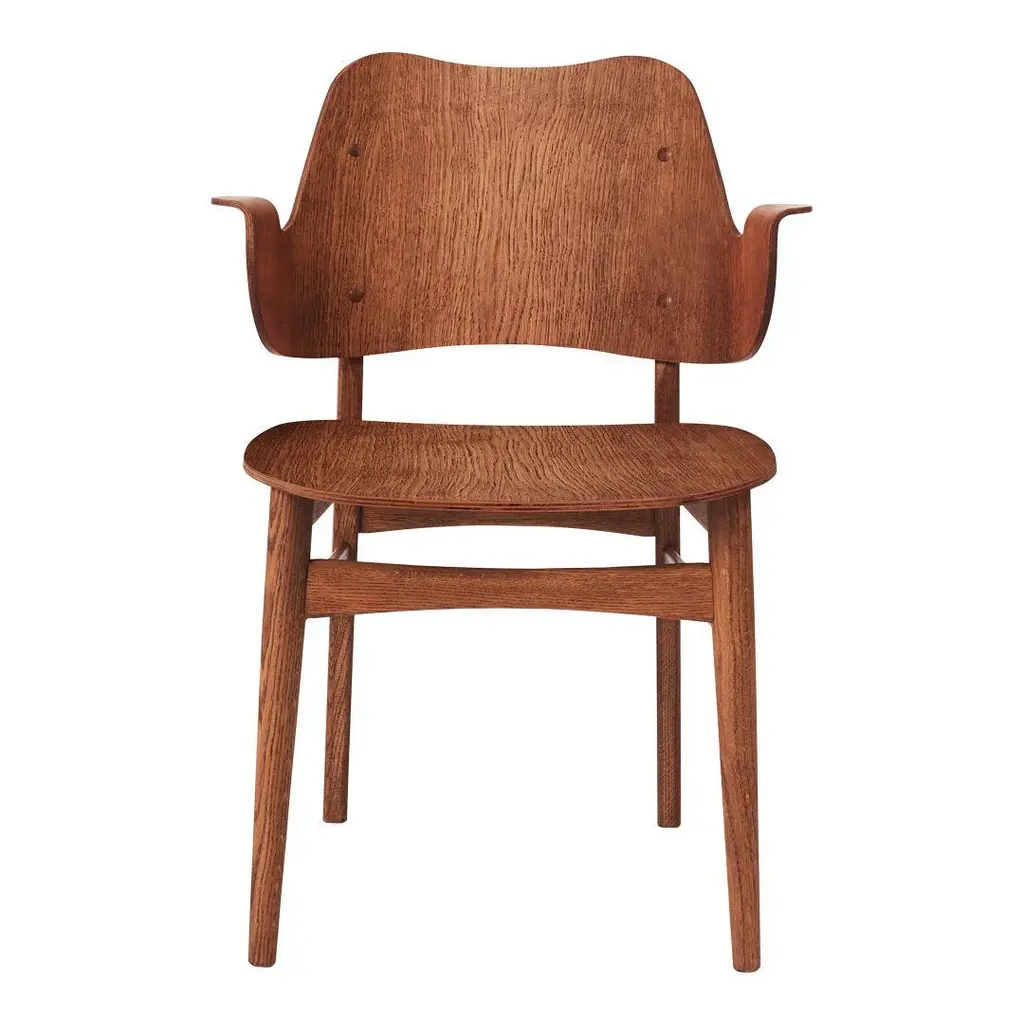 This beautiful, moulded Gesture chair, designed in the 1950s, was the work of the acclaimed Danish architect, Hans Olsen. With its welcoming design, the Gesture chair creates a warm atmosphere around a dining table or at a desk in the living room, where it does not hurt if a chair is something special. The armrests invite you to sit down and relax in the moulded design and are also constructed so you cannot get too close to the table. Gesture is a designer chair with a certain weight, offset by its light, playful charm. As a tribute to the 1950s' adoration of colour, the Gesture chair is available in an abundance of stunning colours in three versions: fully upholstered; with upholstery on the seat; or a unique type of wood depending on the look you after. Choose from high quality leather or several different exclusive fabrics in the most beautiful colours from the Warm Nordic universe. The frame is available in several exclusive types of wood and a variety of surface treatments.