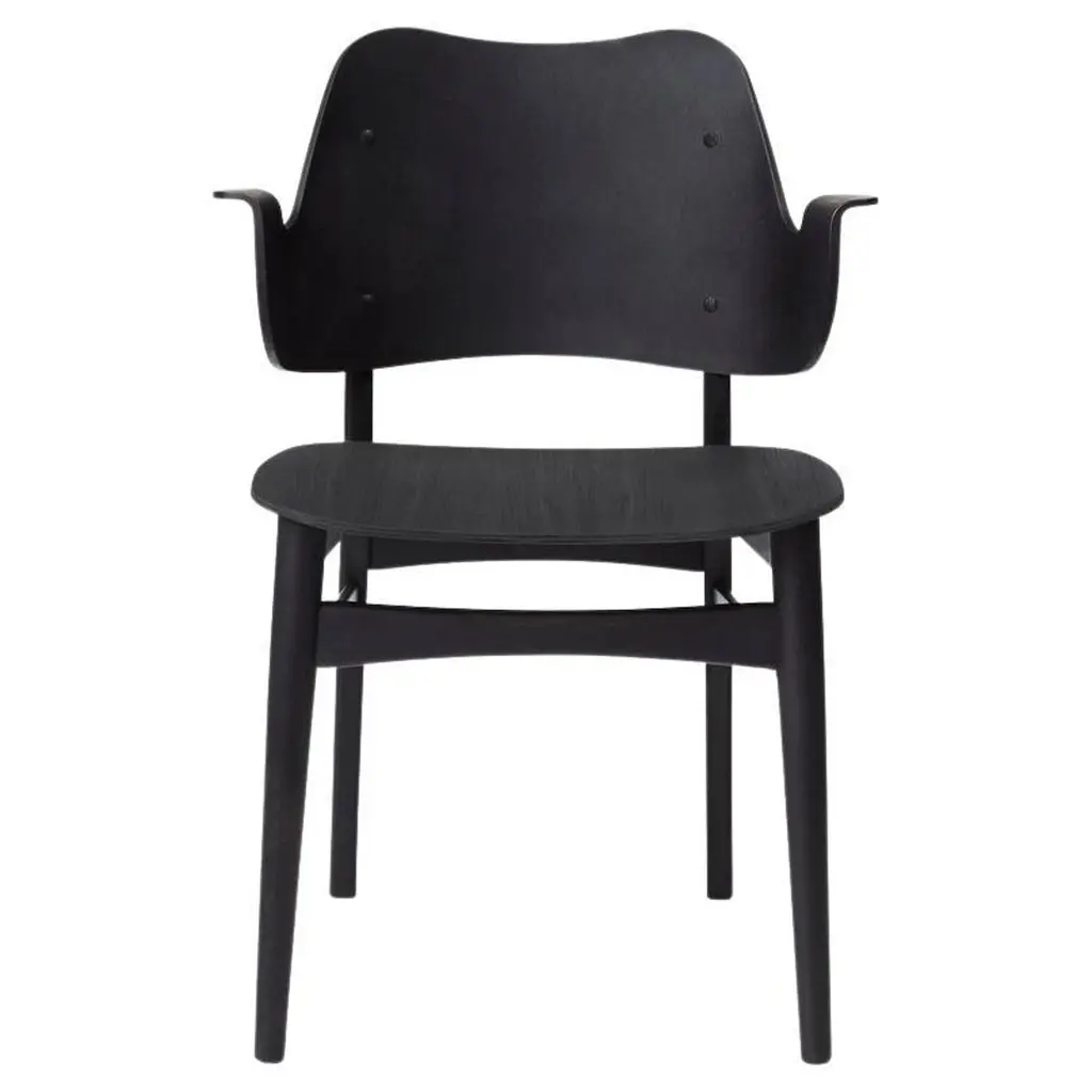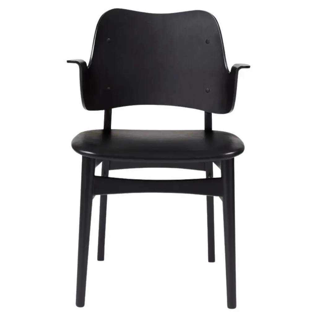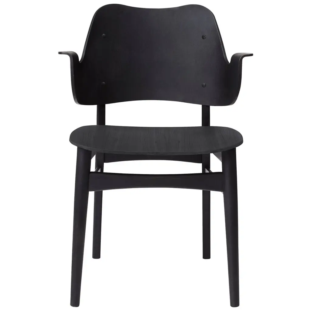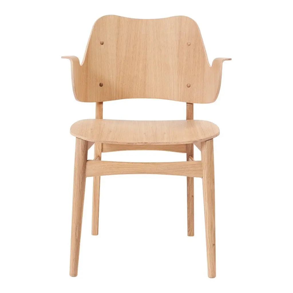 This beautiful, moulded Gesture chair, designed in the 1950s, was the work of the acclaimed Danish architect, Hans Olsen. With its welcoming design, the Gesture chair creates a warm atmosphere around a dining table or at a desk in the living room, where it does not hurt if a chair is something special. The armrests invite you to sit down and relax in the moulded design and are also constructed so you cannot get too close to the table. Gesture is a designer chair with a certain weight, offset by its light, playful charm. As a tribute to the 1950s' adoration of colour, the Gesture chair is available in an abundance of stunning colours in three versions: fully upholstered; with upholstery on the seat; or a unique type of wood depending on the look you after. Choose from high quality leather or several different exclusive fabrics in the most beautiful colours from the Warm Nordic universe. The frame is available in several exclusive types of wood and a variety of surface treatments.