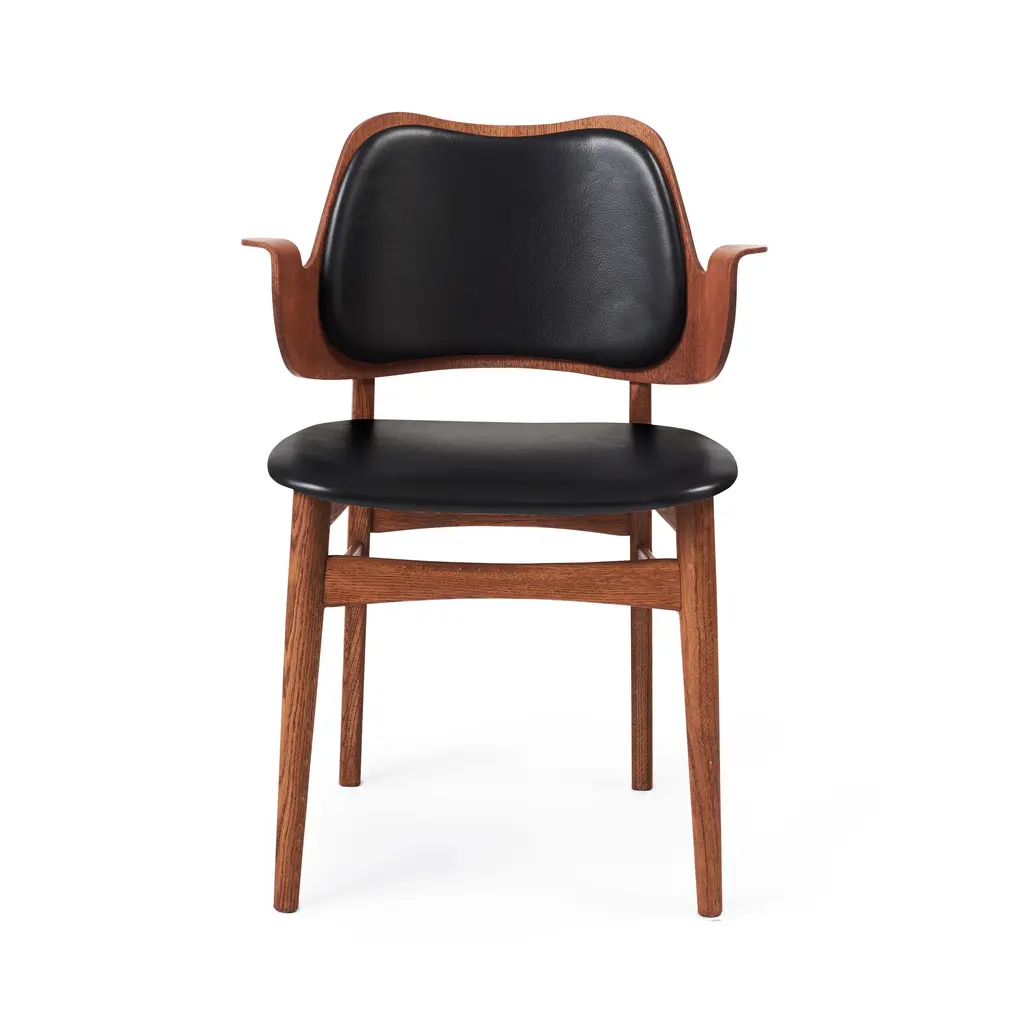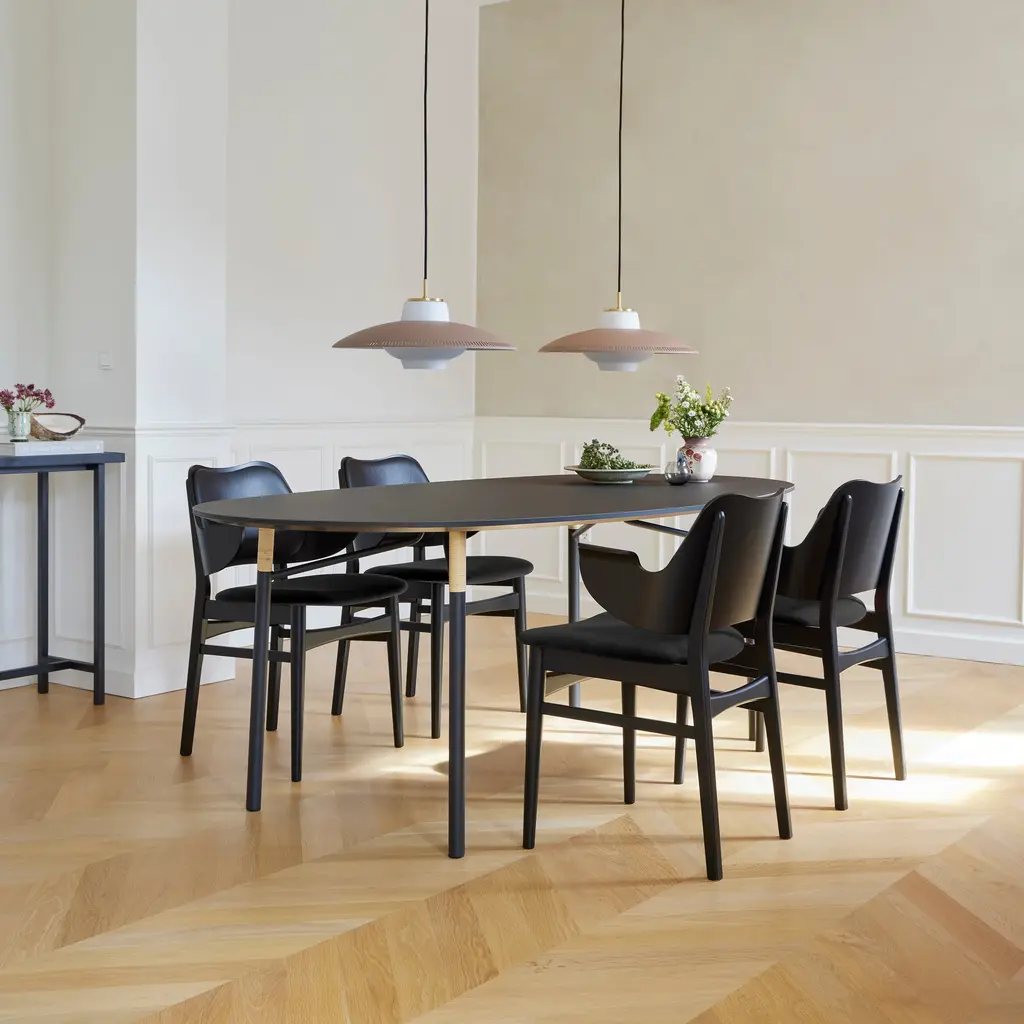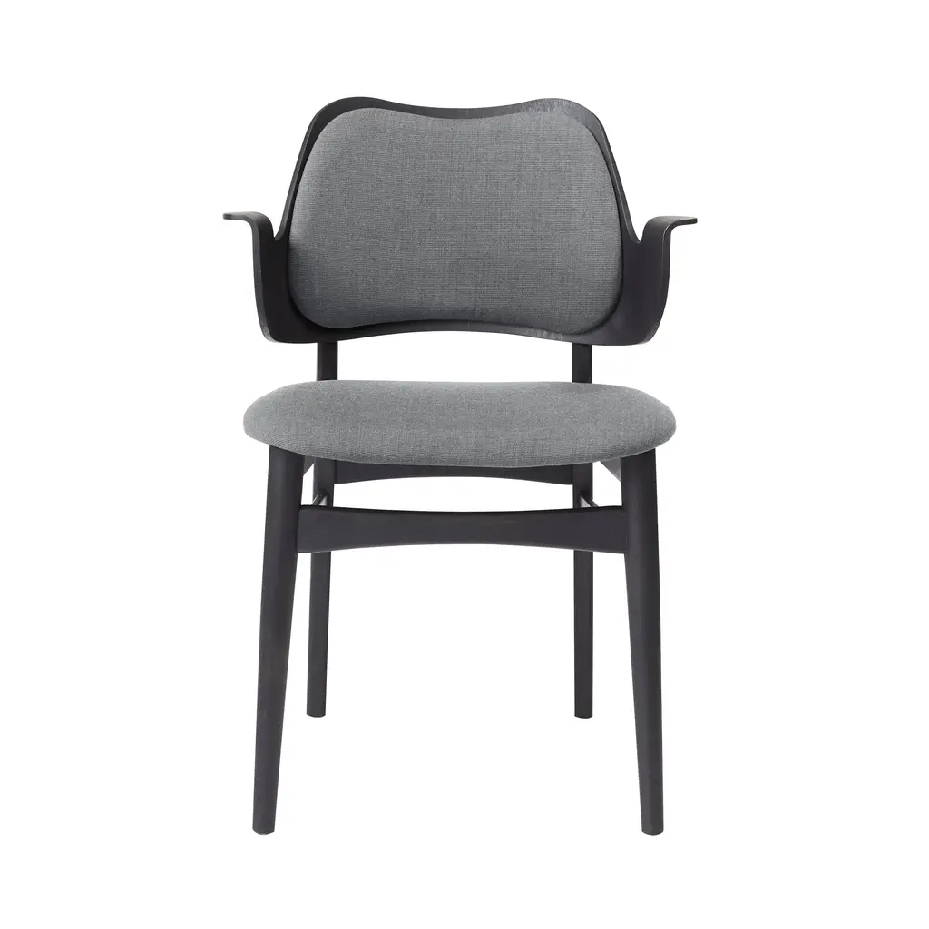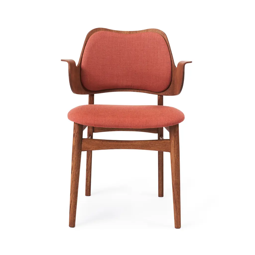 The Gesture Dining Chair is a 1957 design by renowned Danish architect Hans Olsen. This chair stands out for its distinctive curved form and welcoming design, making it a perfect fit for both dining and living spaces. Upholstered in high-quality fabric, the chair offers exceptional comfort with both the seat and backrest fully padded. The solid wood frame is available in finishes such as teak oiled oak, white oiled oak or black lacquered beech.