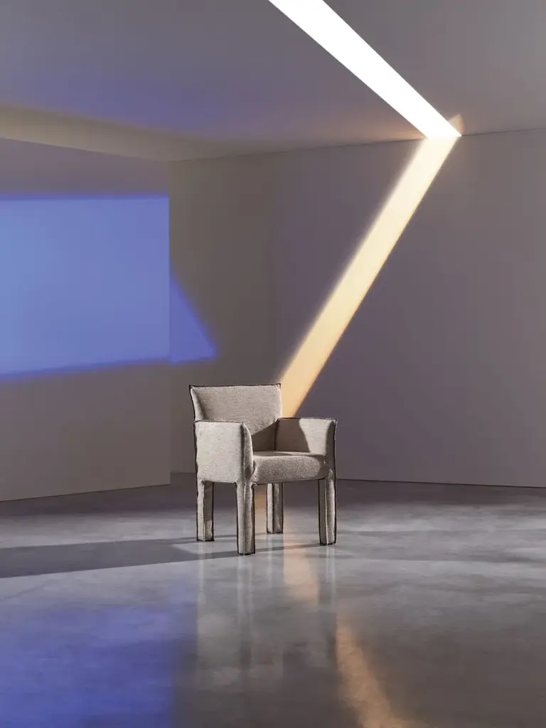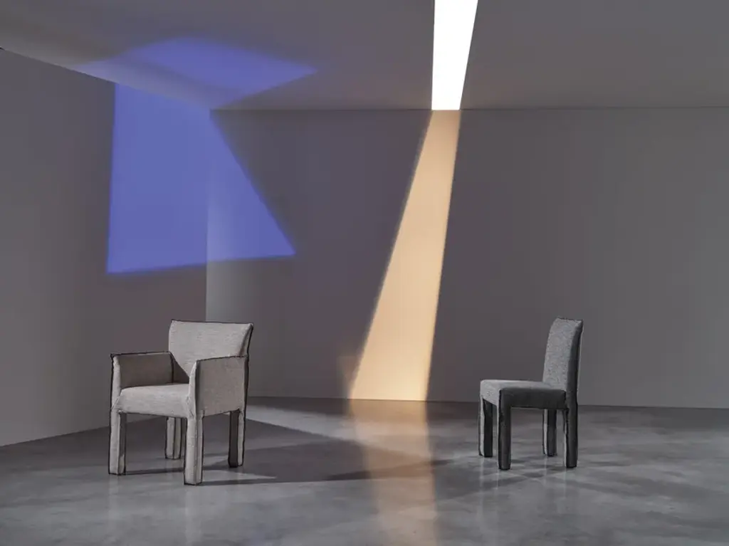 Ghost 125 is a fully removable armchair-style chair.Visible stitching highlights its tailored, handcrafted character—central to Gervasoni’s design philosophy. This new version of the Ghost chair features enveloping armrests and fully upholstered legs, emphasizing the softness of its form and creating a captivating contrast between relaxed aesthetics and structural solidity.Comfort and versatility are the keywords that define Ghost, a collection of seats that are as comfortable and enveloping as their upholstery. The name of the collection is inspired by the white version which, thanks to the soft falling fabric, brings to mind the common imagination of ghosts. The large collection Ghost seats is developed around a light body with essential volumes that contains soft cushions. The main feature is the upholstery: an oversized housse whose profile is underlined by the visible stitching. Sofas, armchairs, ottomans, chairs and beds are undressed and dressed in a flash, like a change of clothes, taking on a different image each time, simple or sophisticated, depending on the personality of those who choose and live them.