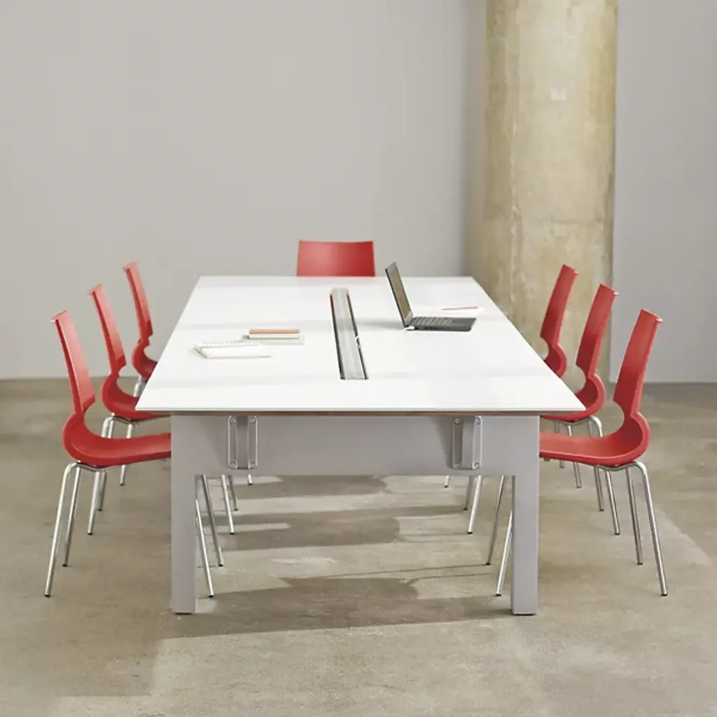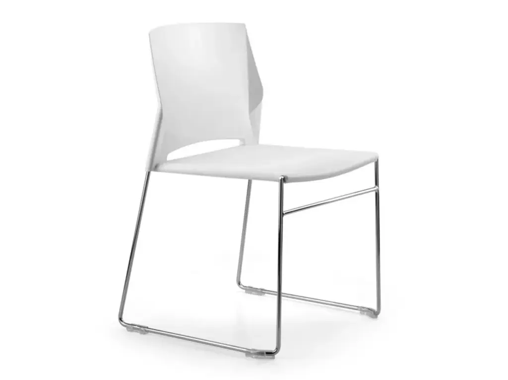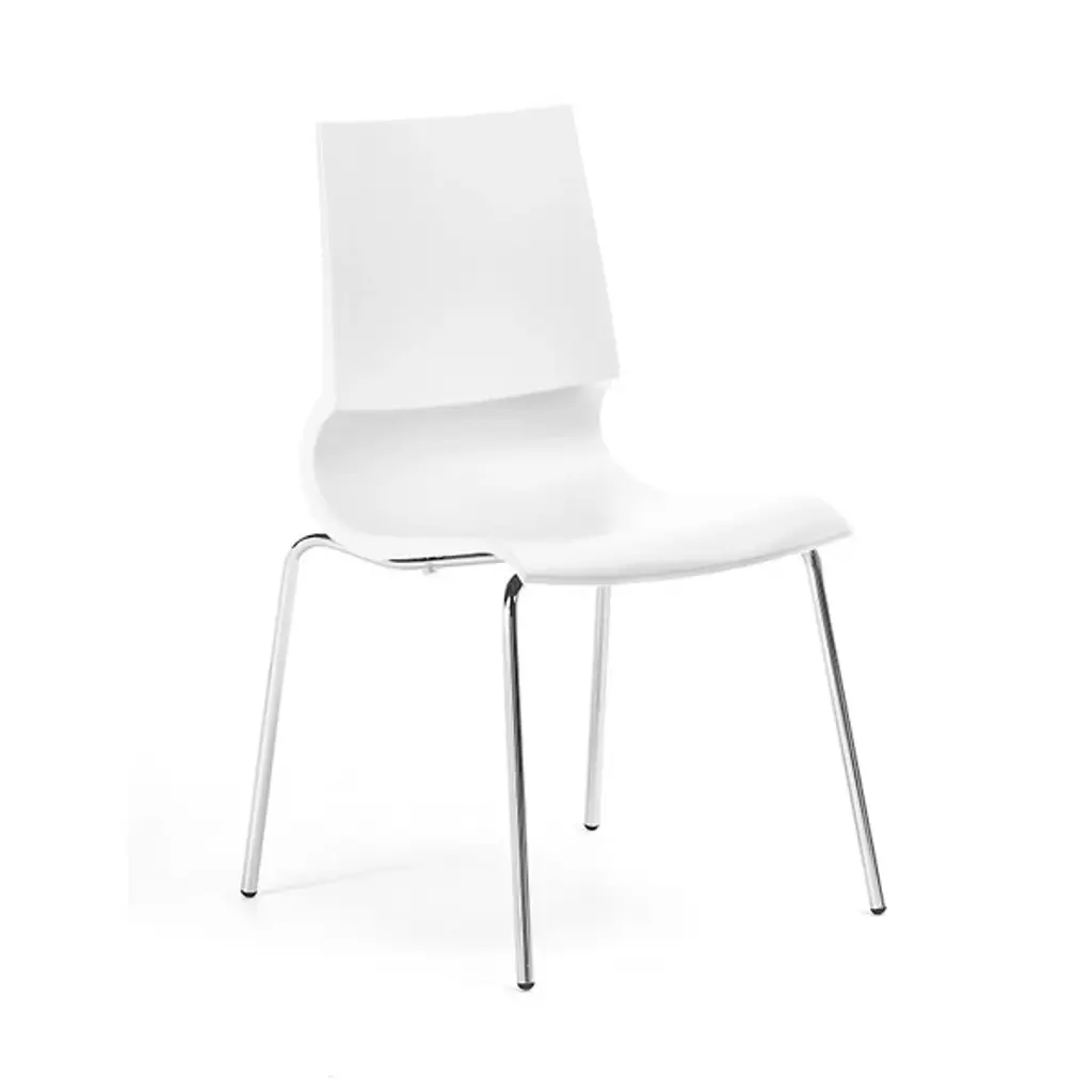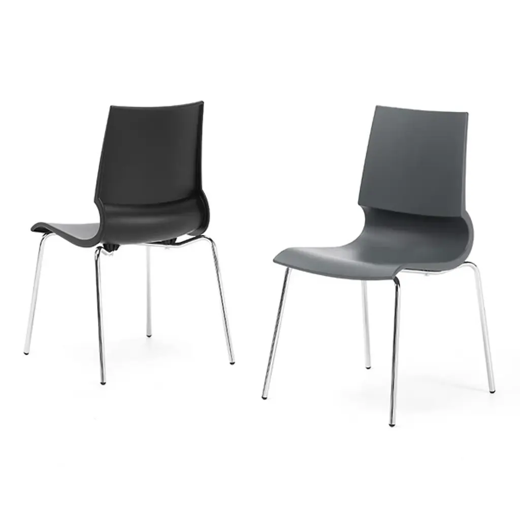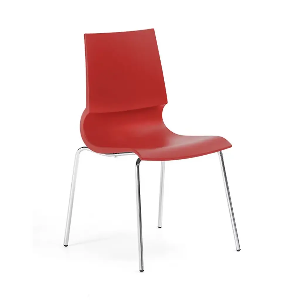 Spirited, versatile and comfortable. The Gigi Stacking Chair is an elegant plastic stacking chair ideal for use in large gathering spaces or as an occasional chair. The sturdy and flexible chair features a colored polypropylene frame that attaches to a chrome-plated base. A wide range of bright and neutral hues are offered for the shell. Accessories include a ganging mechanism and a transportation dolly, available by special order.
