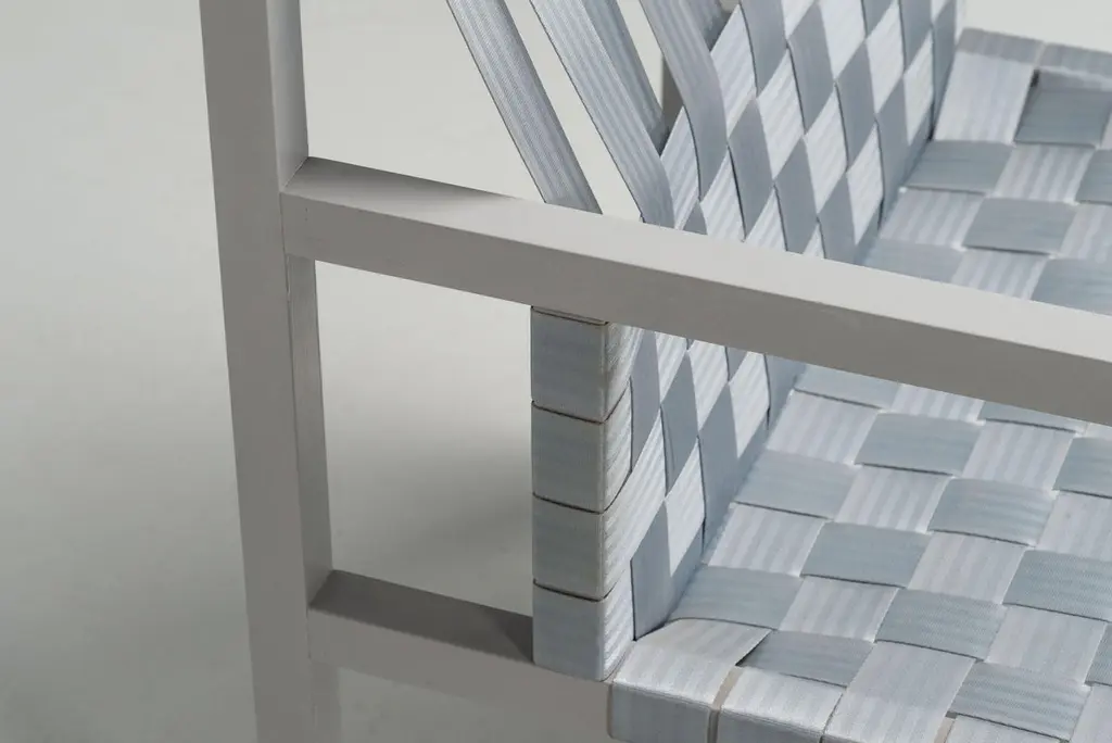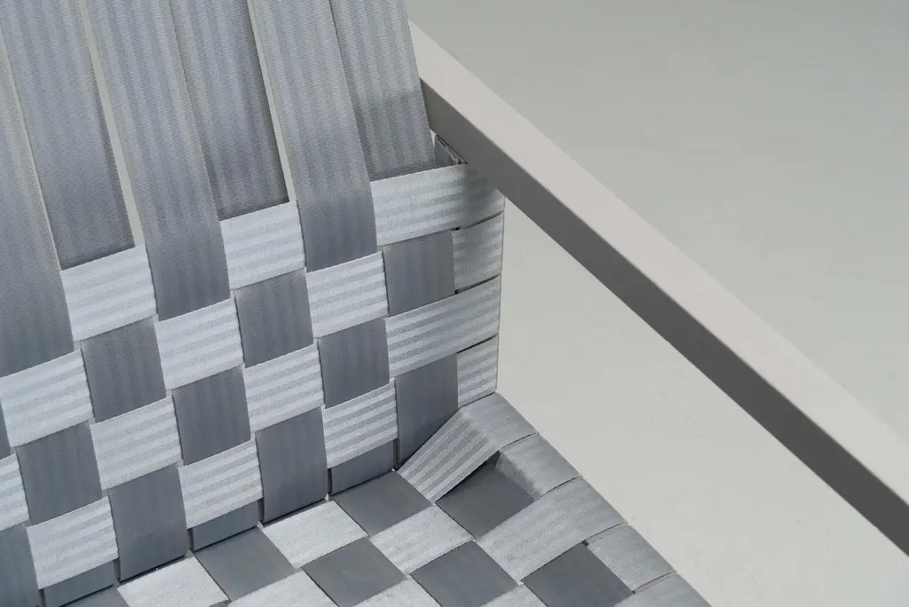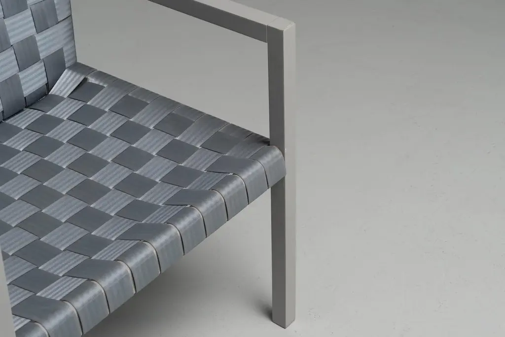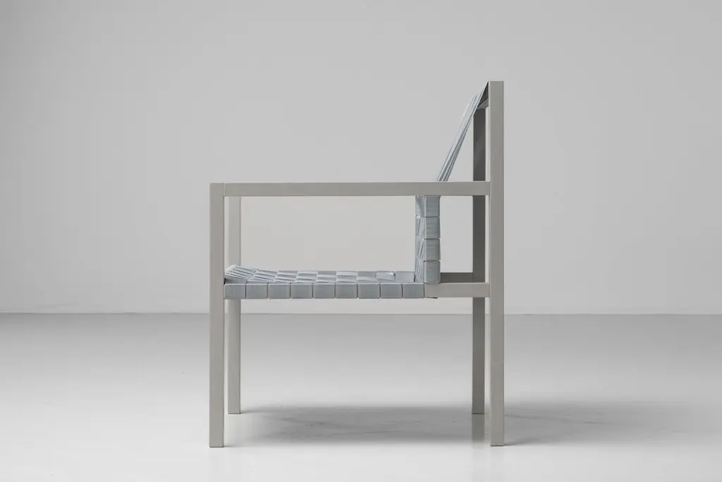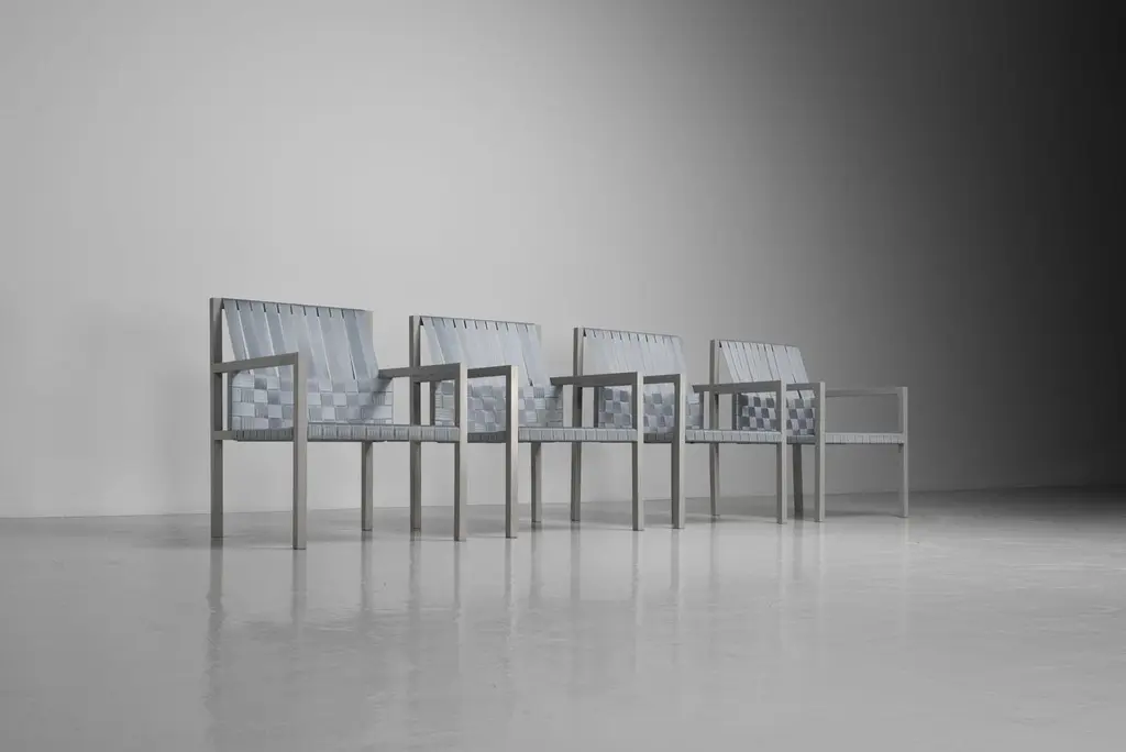 This super rare lot of four easy chairs was designed by Gijs Bakker for Castelijn, Holland, in 1978. Known as the "Webbing Chair," they quickly earned the nickname "Seatbelt Chair" due to their distinctive seats made of woven seatbelts. Designed in 1978, these chairs were produced for only a brief period, making them exceptionally rare. The Webbing Chair series included various models such as dining chairs and lounge chairs, available with or without arms. This particular set features the low and large easy chairs, which are the largest and most comfortable model in the series. They are crafted from grey lacquered beech wood with seats made of matching grey seatbelts, providing both durability and a unique aesthetic.Currently, we have four of these chairs in stock, and they are priced and sold individually. These chairs not only offer a piece of design history but also deliver exceptional comfort and style, making them a coveted addition to any collection. Not only constructional but also aesthetic these are very unique chairs and are a design with a bit of humour.Gijs Bakker is a renowned Dutch designer and co-founder of the influential design collective Droog. Born in 1942, Bakker's work spans furniture, jewelry, and industrial design, characterized by his innovative use of materials and conceptual approach. He is celebrated for his ability to blend functionality with artistic expression, creating pieces that challenge conventional design norms. Bakker’s designs, such as the iconic "Seatbelt Chair," reflect his commitment to innovation and his influence on contemporary design is profound, making him a pivotal figure in the design world.