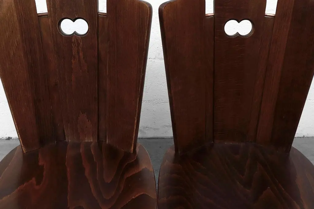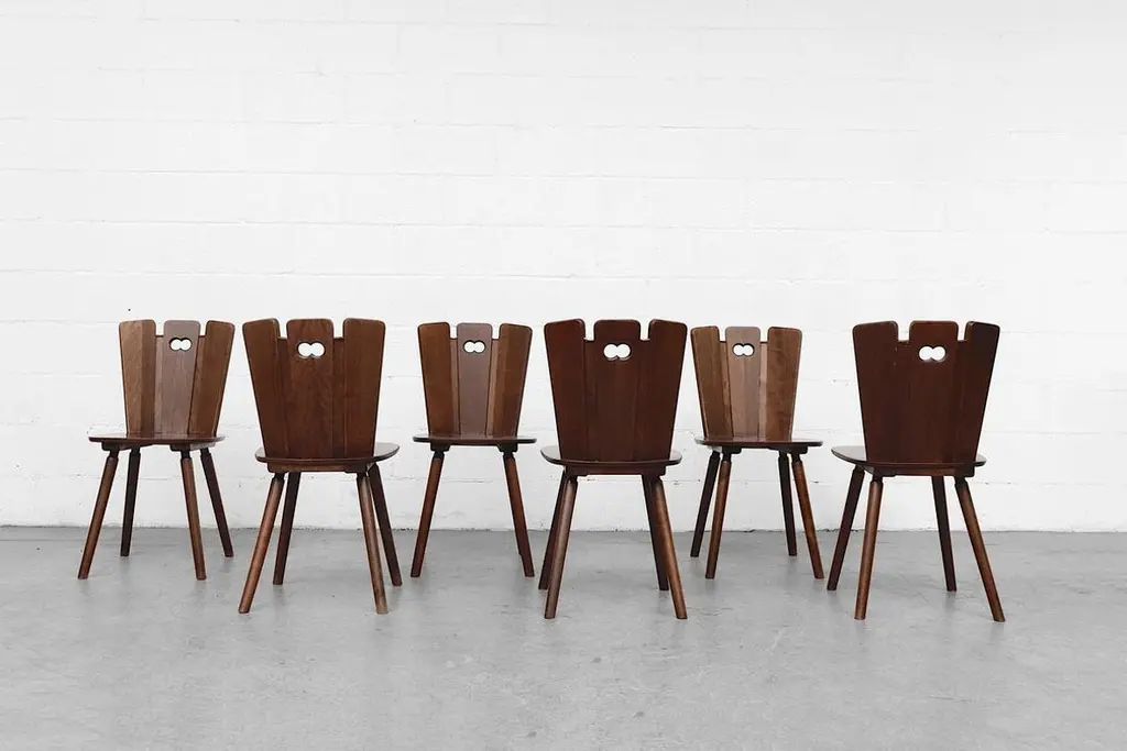 Gilbert Marklund Style Brutalist Dining Chairs With Fan-Top Seat Backs
