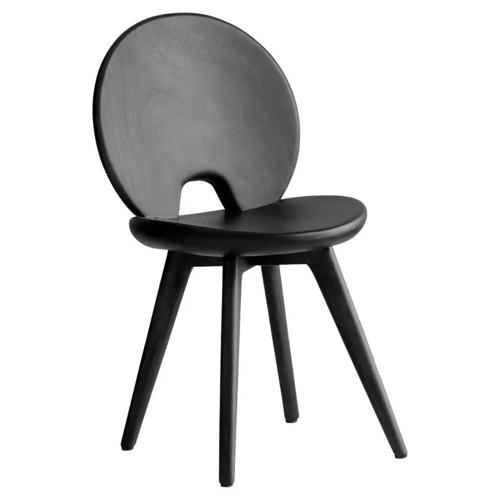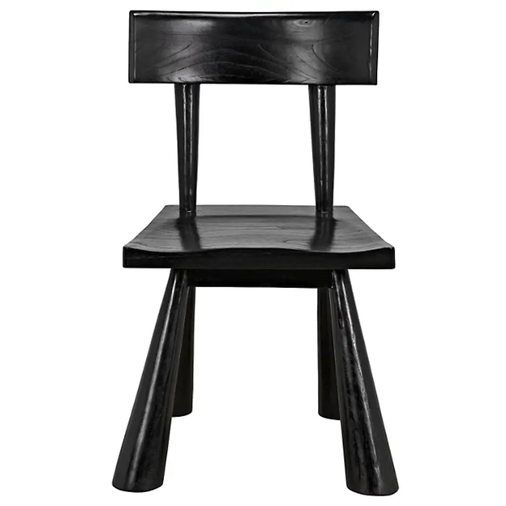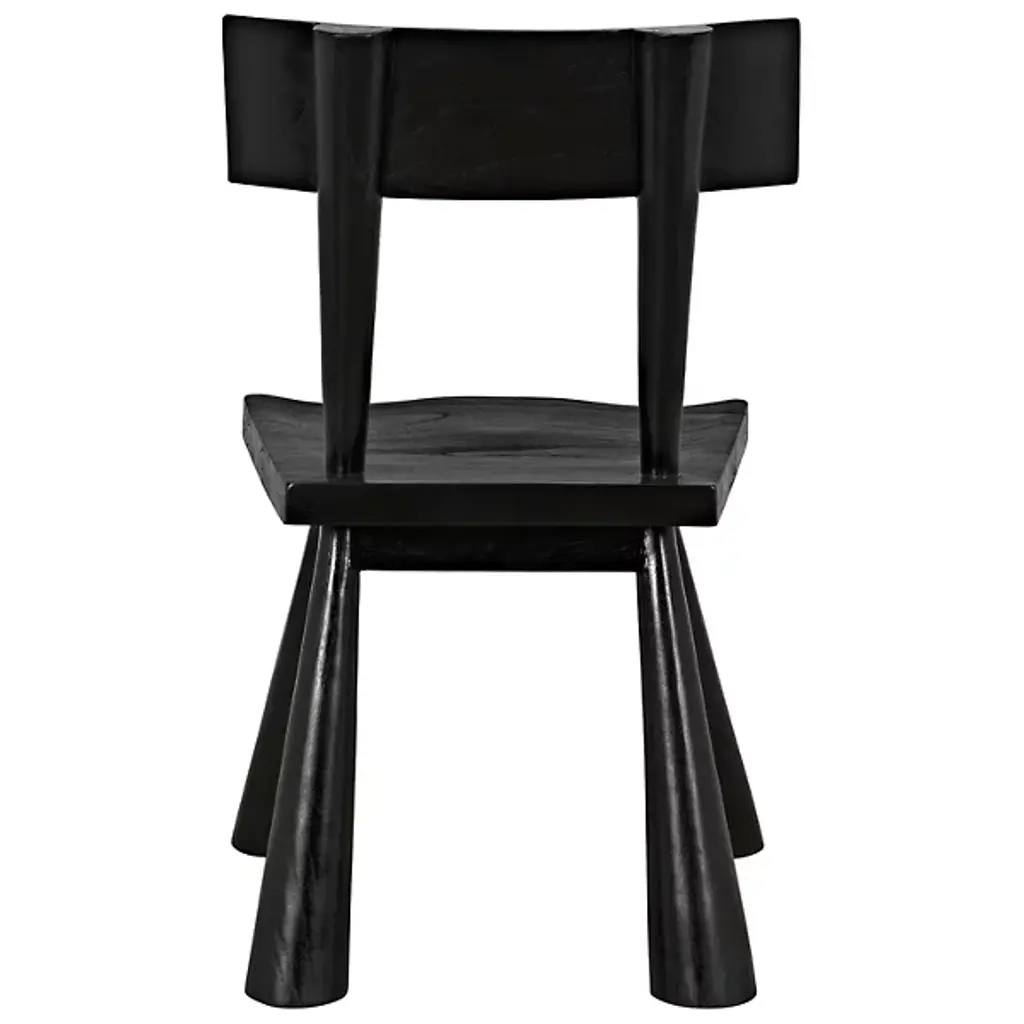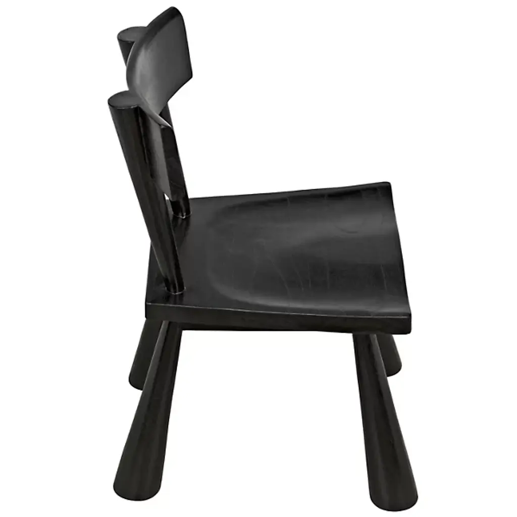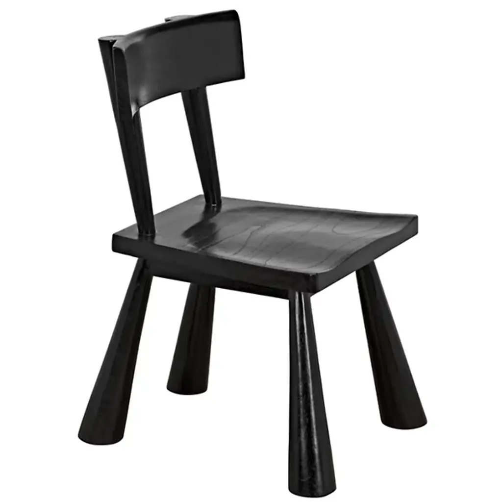 The Gilbert Side Chair from Noir features a bold, expressive frame that commands attention with its chunky silhouette, conical legs, and thoughtfully contoured back and seat. Its strong geometric lines are softened by the subtle elegance of a satin sheen Charcoal Black finish, which beautifully enhances the wood's natural grain for a refined ceruse effect. This chair balances comfort with contemporary style, making it a standout piece that adds visual interest and functional seating to any space.
