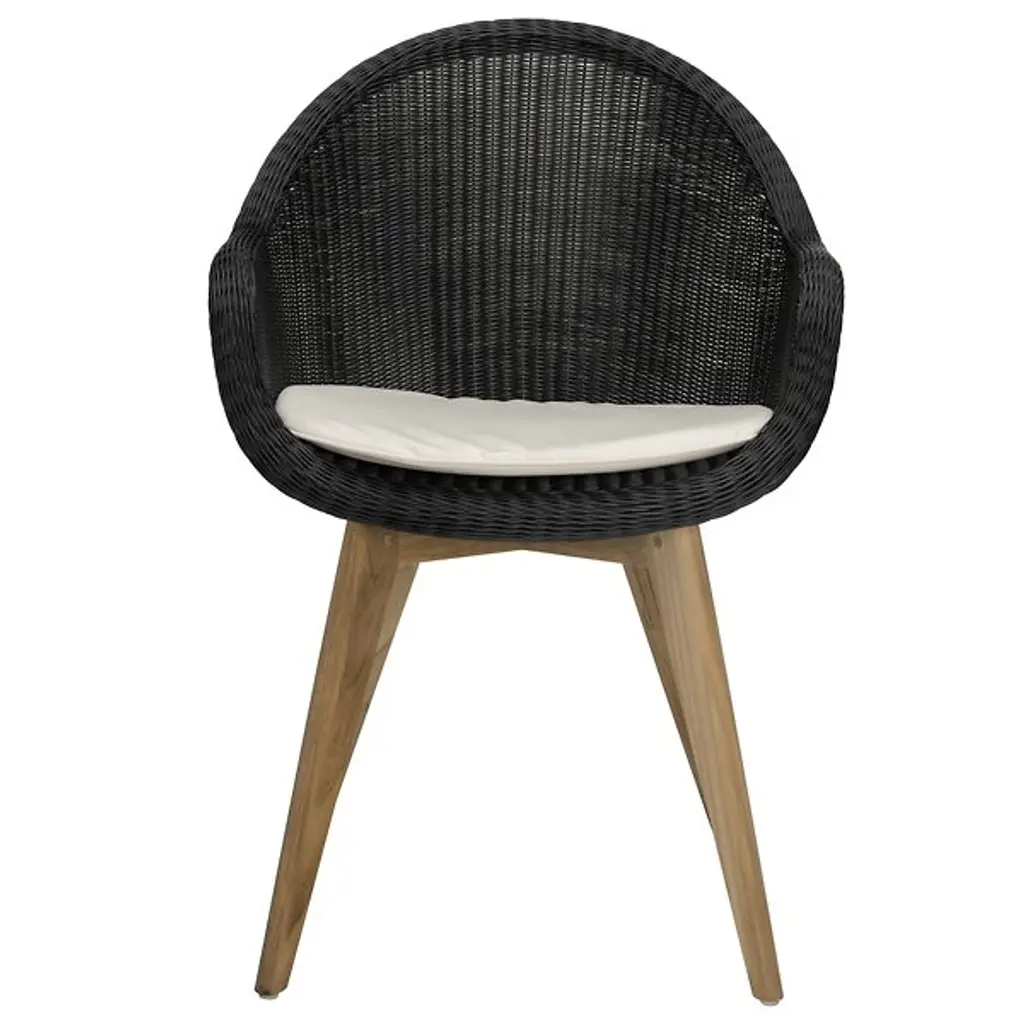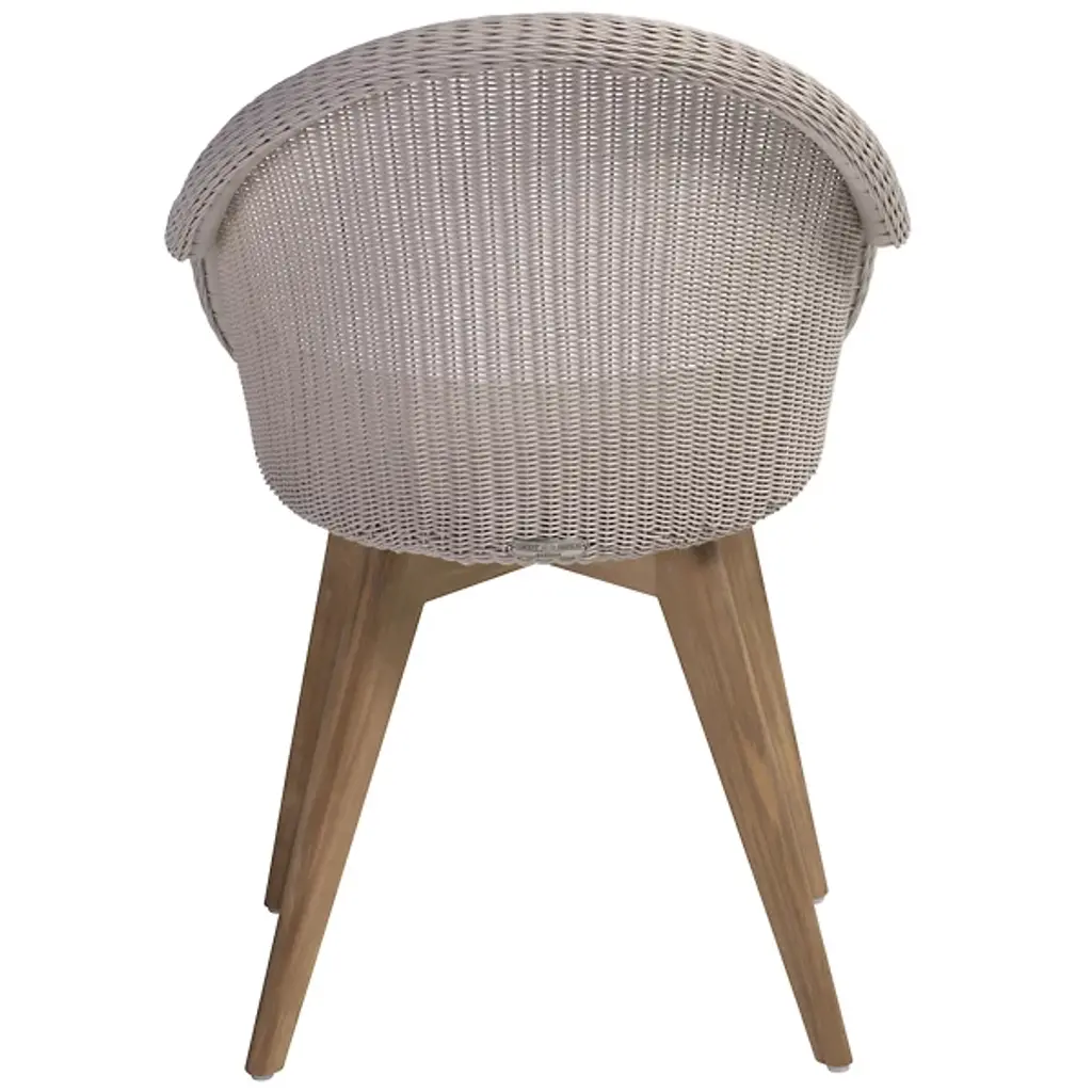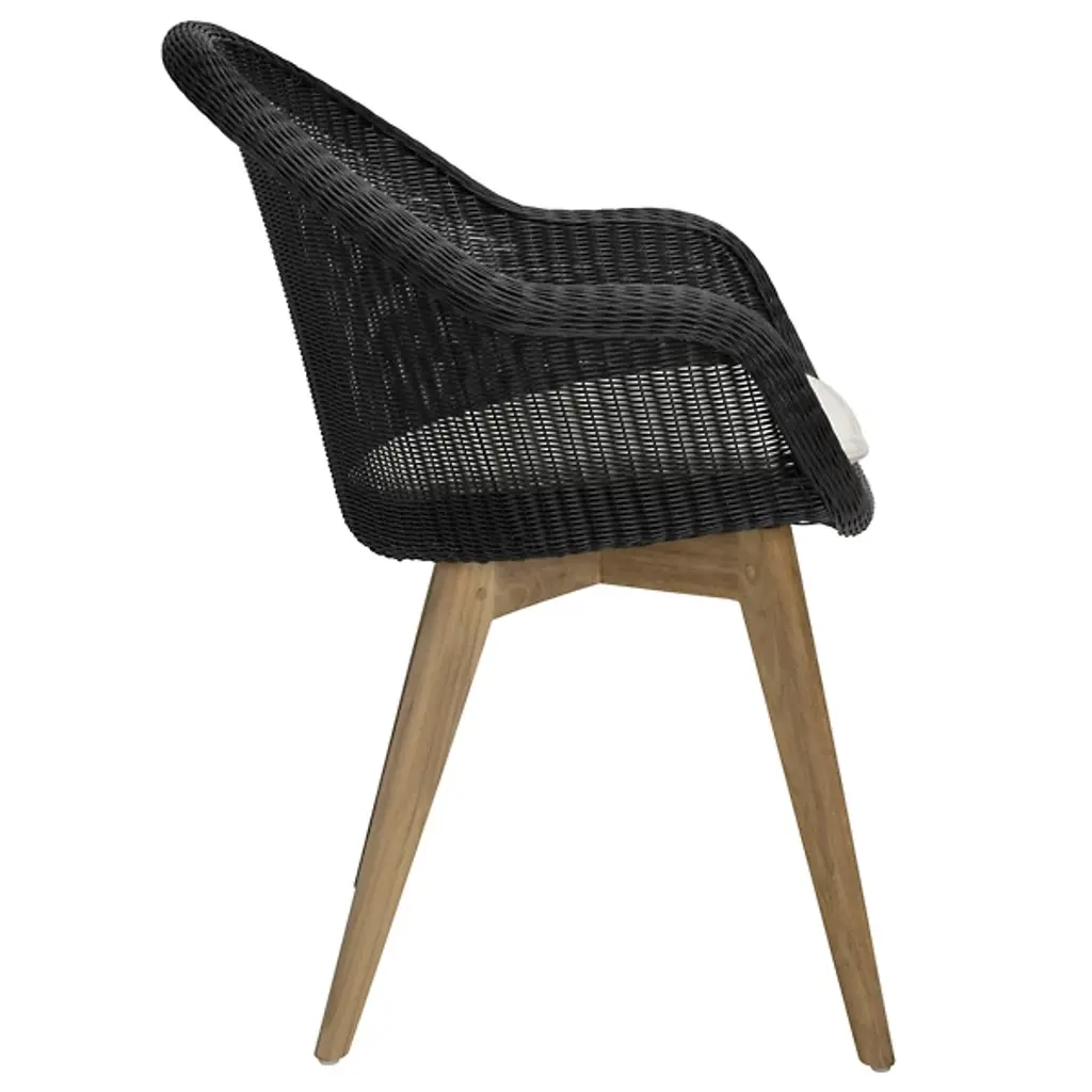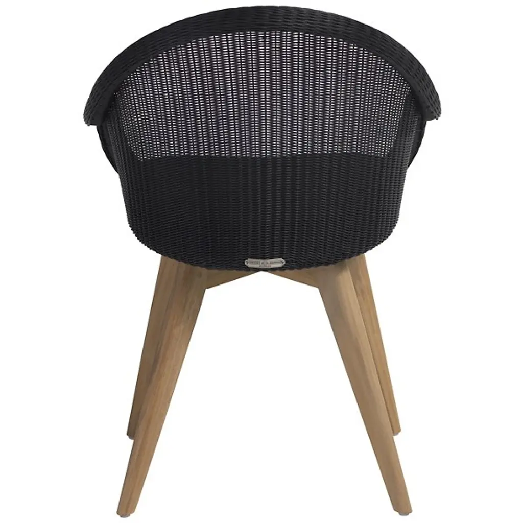 A refreshing take on your typical patio chair, the Gipsy Edgard Teak Base Outdoor Dining Chair by Vincent Sheppard makes outdoor dining a new part of your routine. Built with a beautiful teak base and polyethylene wicker backing, this piece is both stable and incredibly comfortable. Designed with ample back and armrest support, this chair truly allows for full relaxation. This modern outdoor dining chair is perfect for all occasions and makes patio relaxation a new reality.