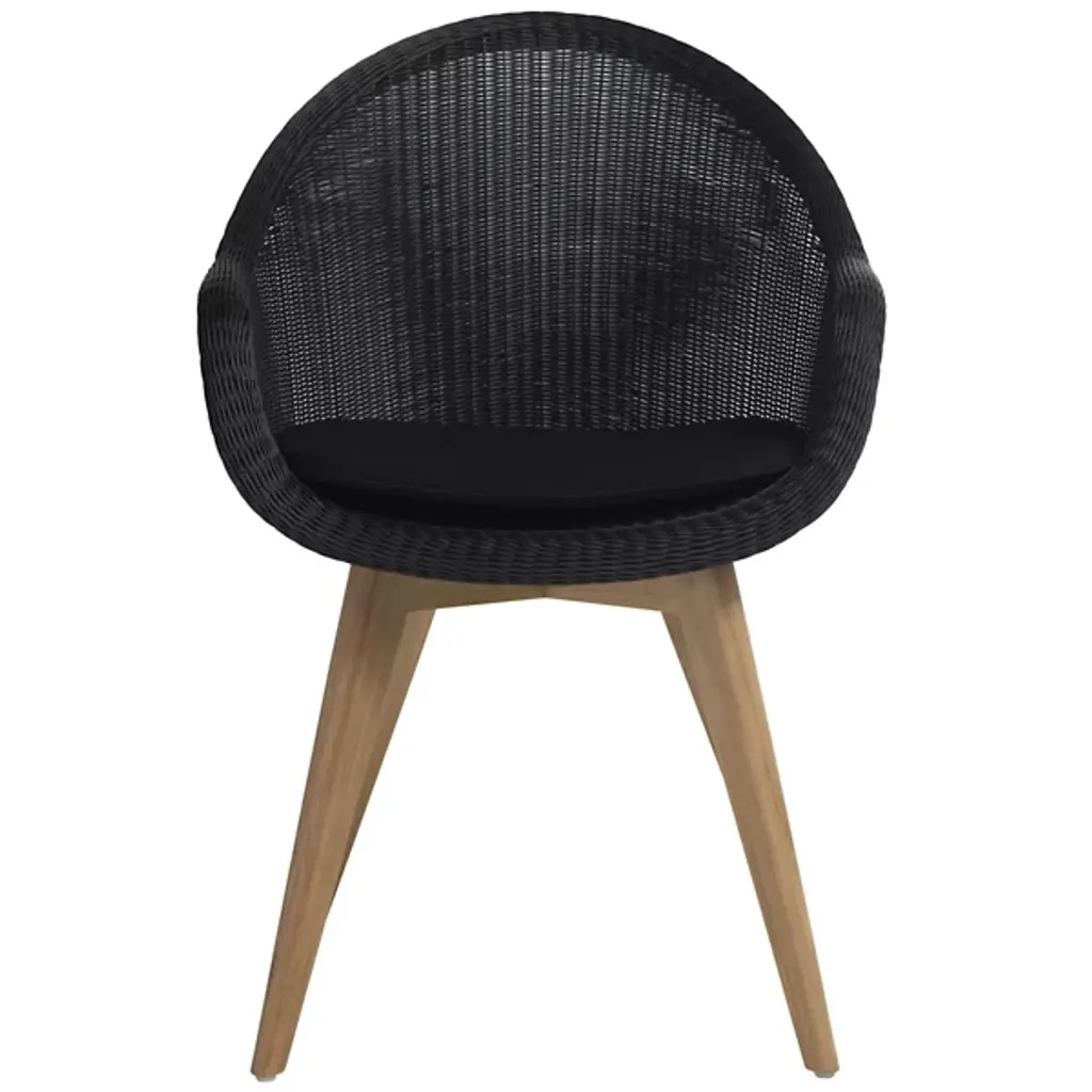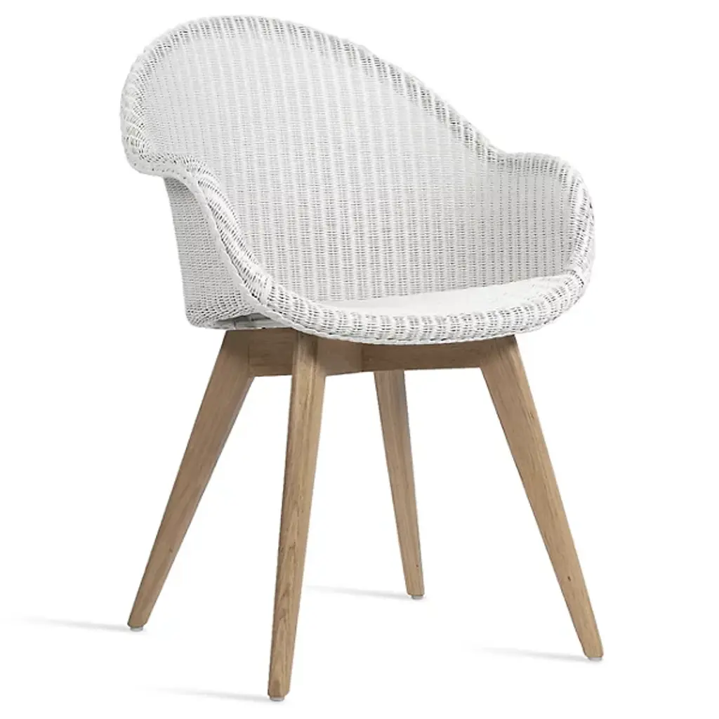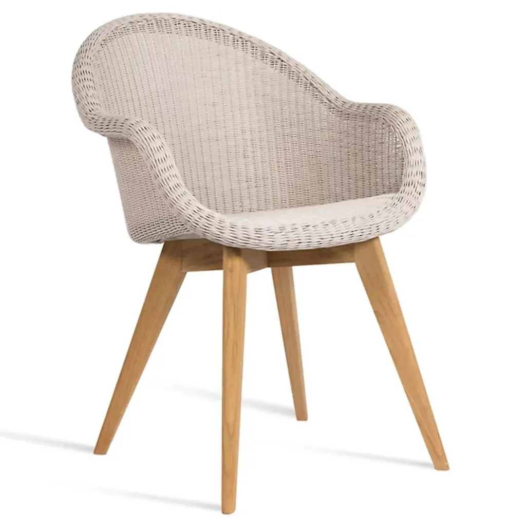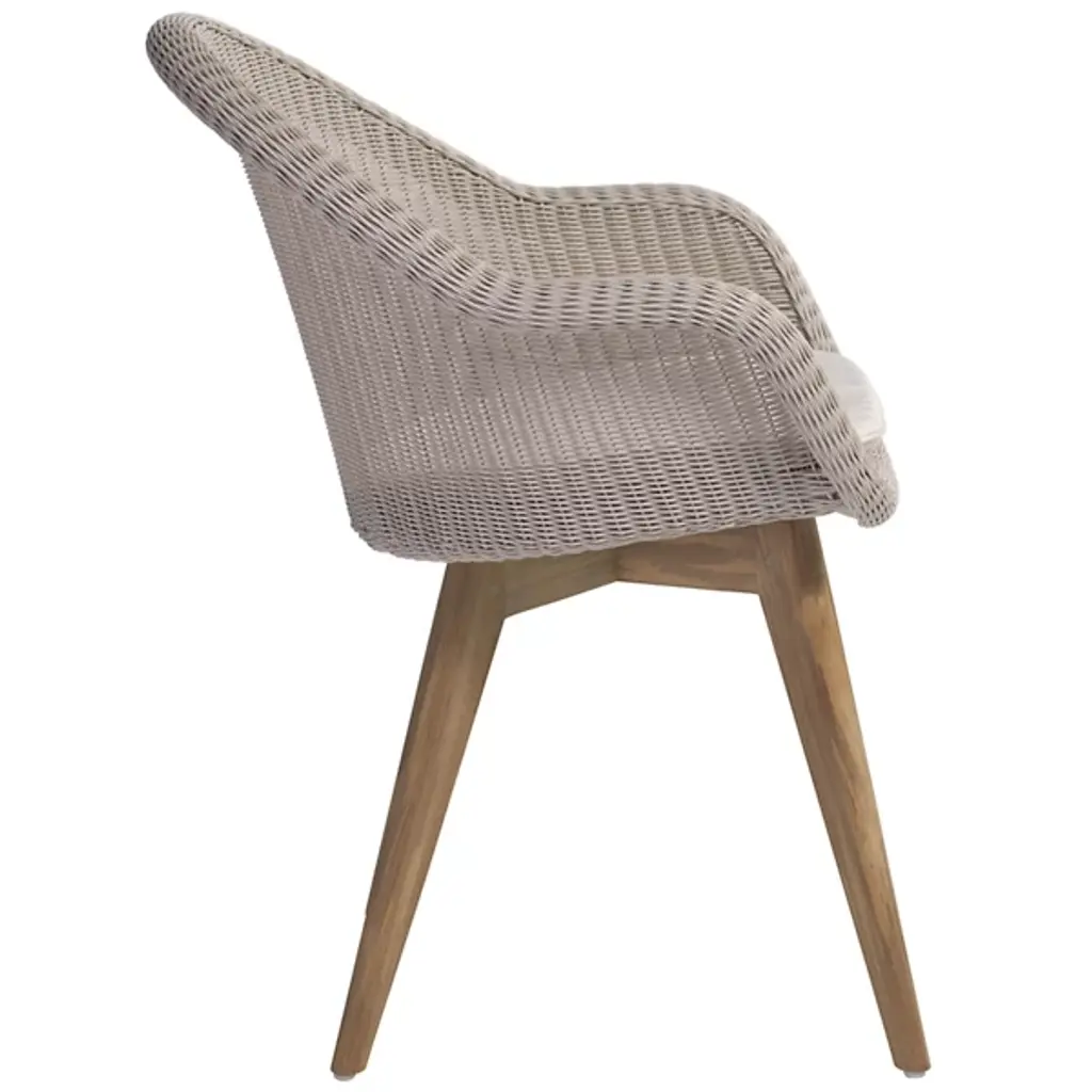 A refreshing take on your typical patio chair, the Gipsy Edgard Teak Base Outdoor Dining Chair by Vincent Sheppard makes outdoor dining a new part of your routine. Built with a beautiful teak base and polyethylene wicker backing, this piece is both stable and incredibly comfortable. Designed with ample back and armrest support, this chair truly allows for full relaxation. This modern outdoor dining chair is perfect for all occasions and makes patio relaxation a new reality.