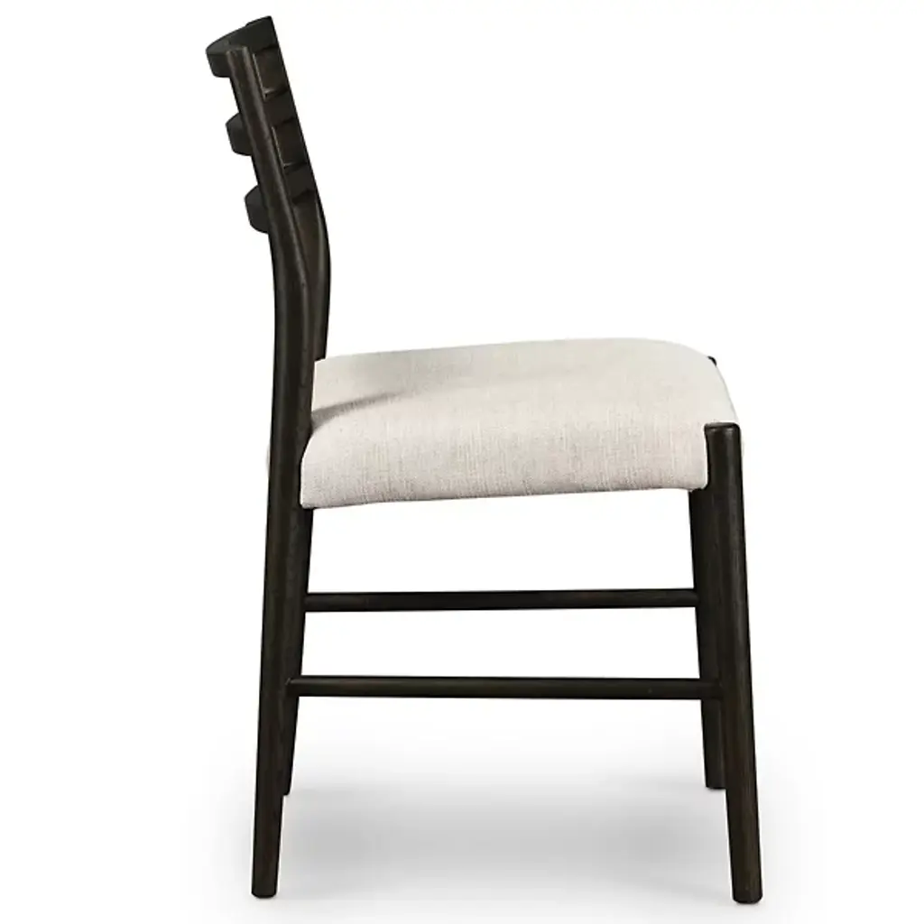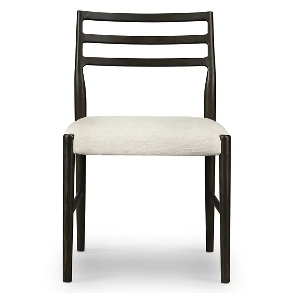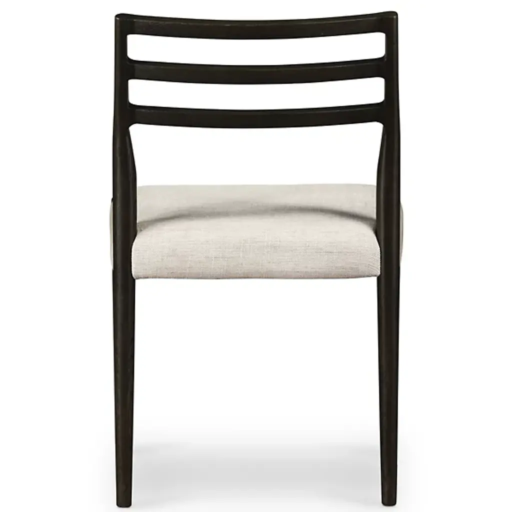 Elevate your seating experience with this elegant refresh on the ladderback chair that is the Glenmore Dining Chair from Four Hands. Evocative motifs make this piece a great choice in a traditional or modern setting. Crafted from solid oak wood, the chair’s frame presents itself like a line drawing in silhouette, producing trim legs and an airy backrest. The ladderback-style backrest curves subtly and uses its openings to create airy comfort. Lined with cozy foam, the seat’s texture-rich fabric blend jumps out visually against the wood’s seductive grain details.