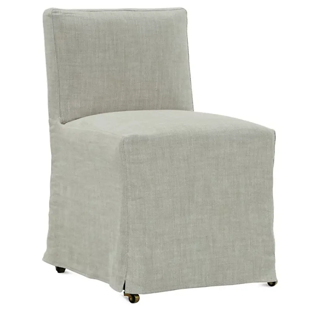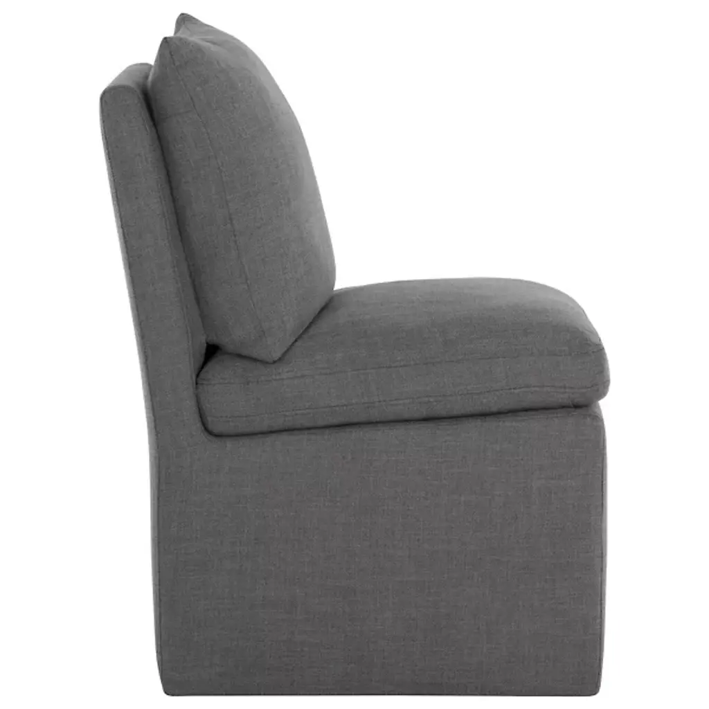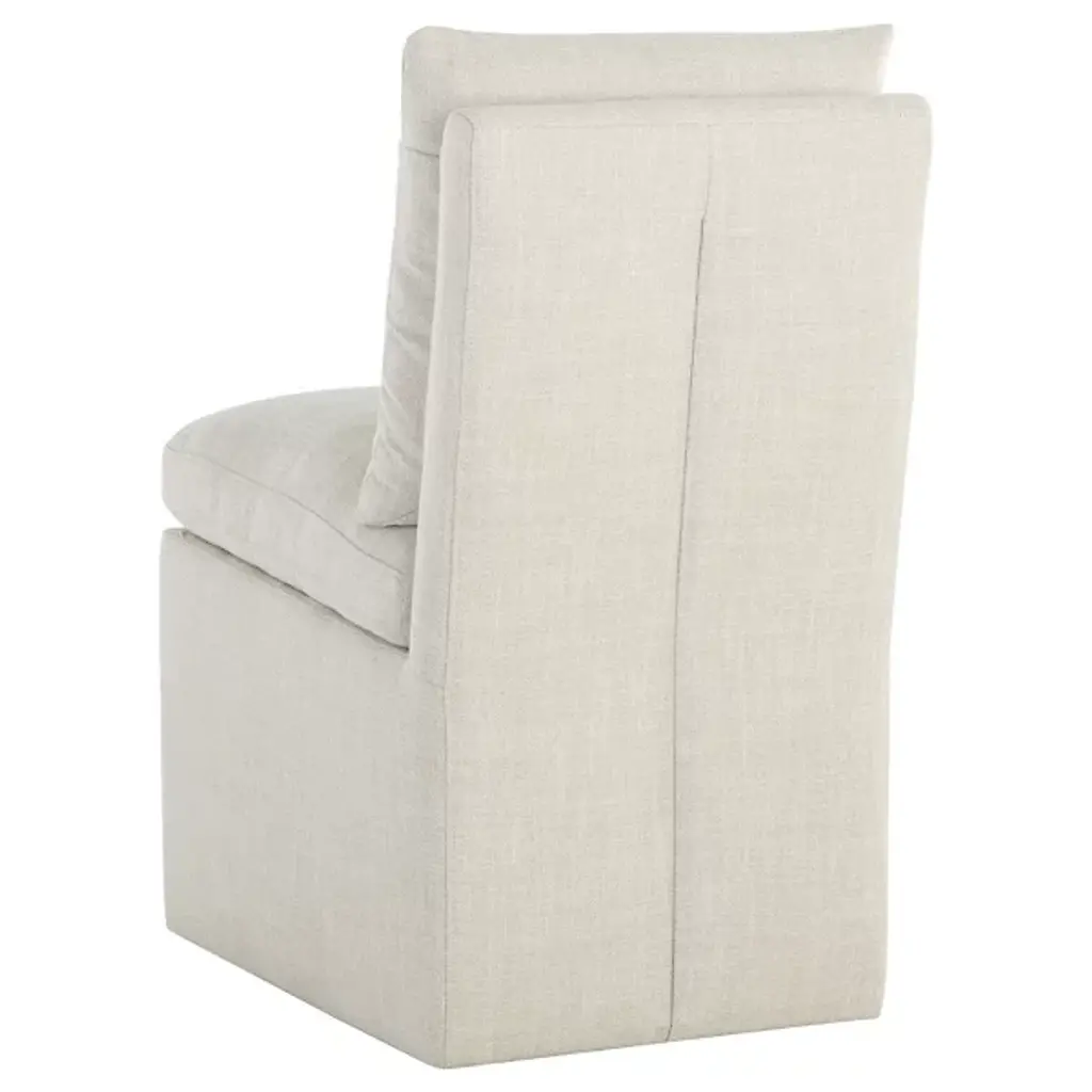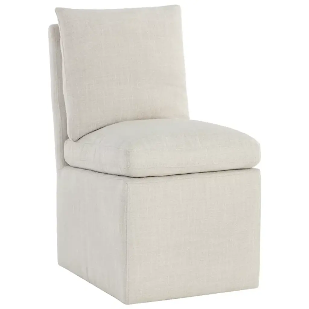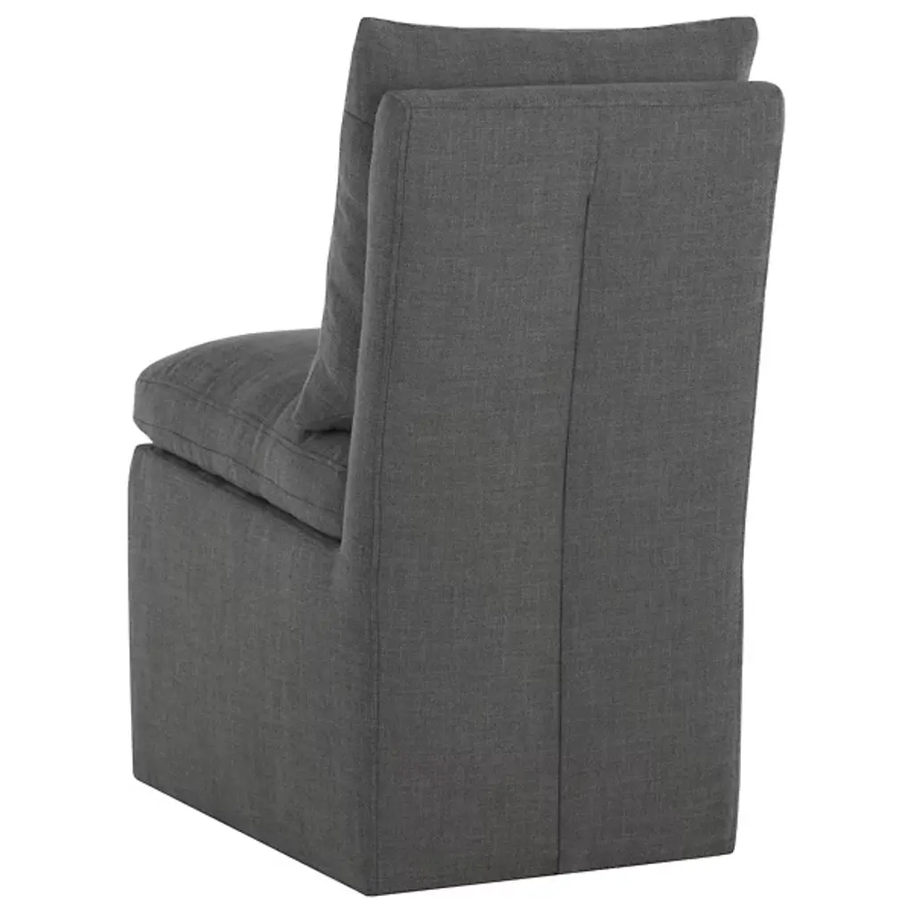 Meet the Glenrose Wheeled Dining Chair by Sunpan, a perfect blend of formality and comfort that exudes classic charm. Available in fabulously soft fabrics, it's a stylish addition to living and dining spaces. This chair comes with the convenience of plastic casters, offering inspired mobility concealed beneath the fabric apron. With feather-filled cushions, its fluffy inner surface creates enduring comfort and beauty that blends well with a range of decor styles with a casual appeal.