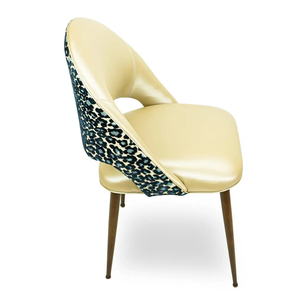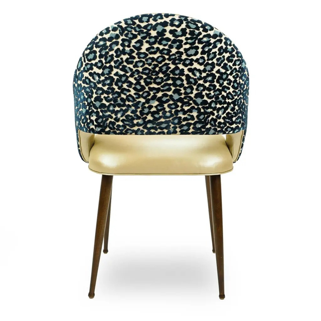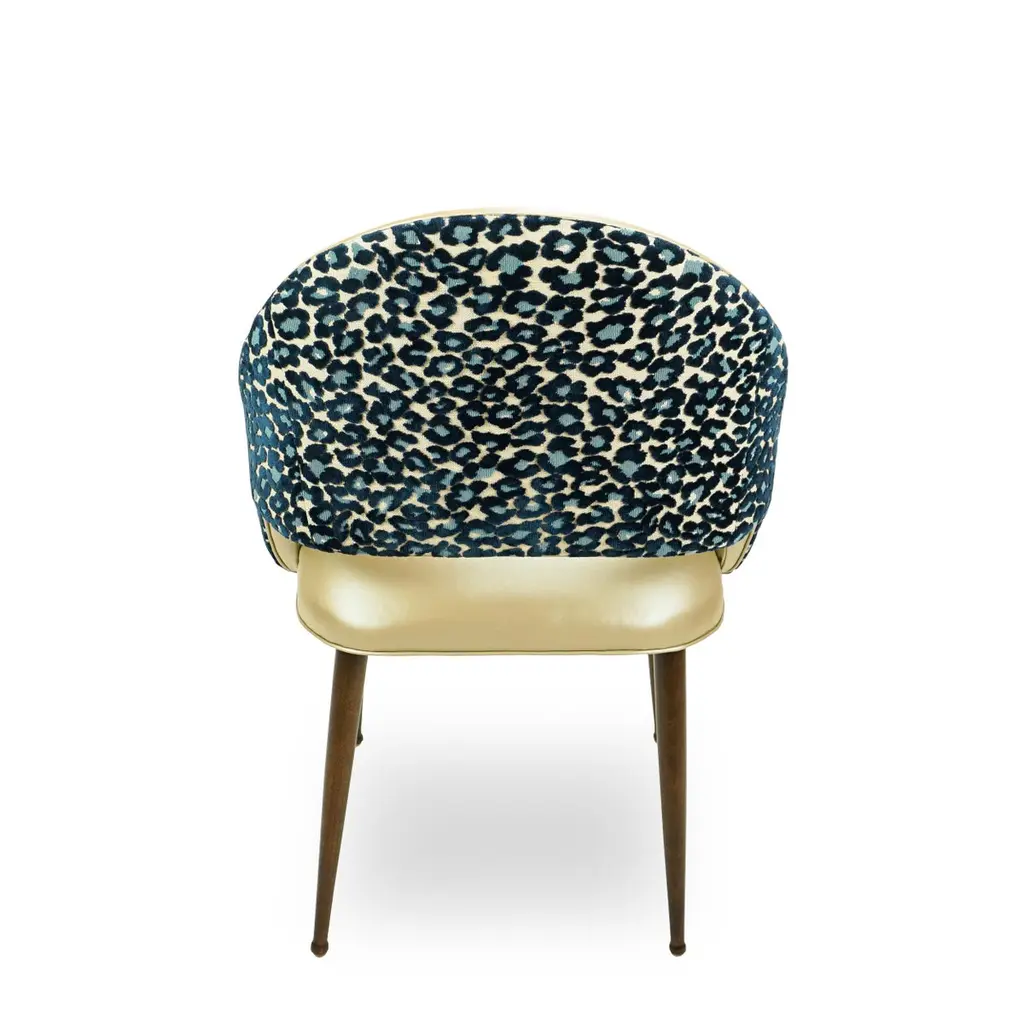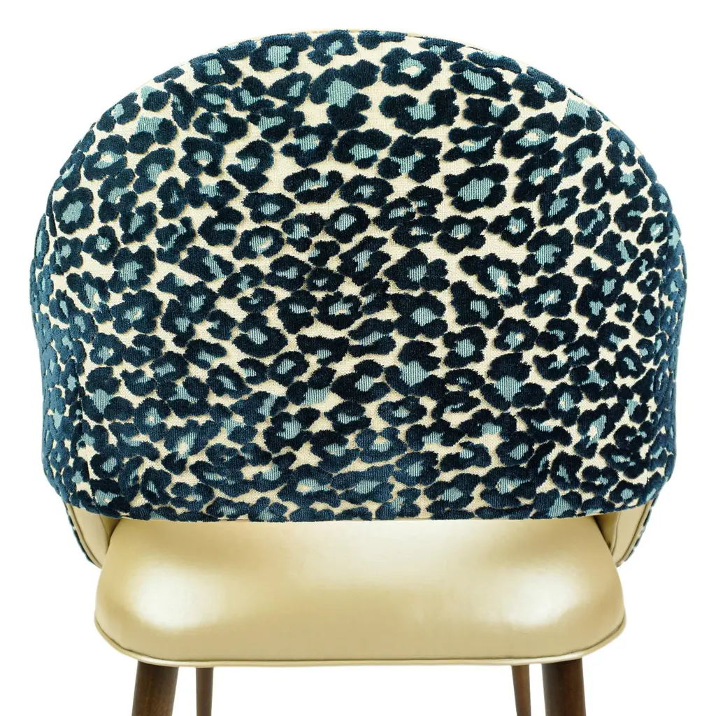 Golden Vinyl Dining Chair With Blue Leopard Back