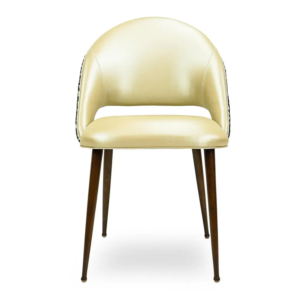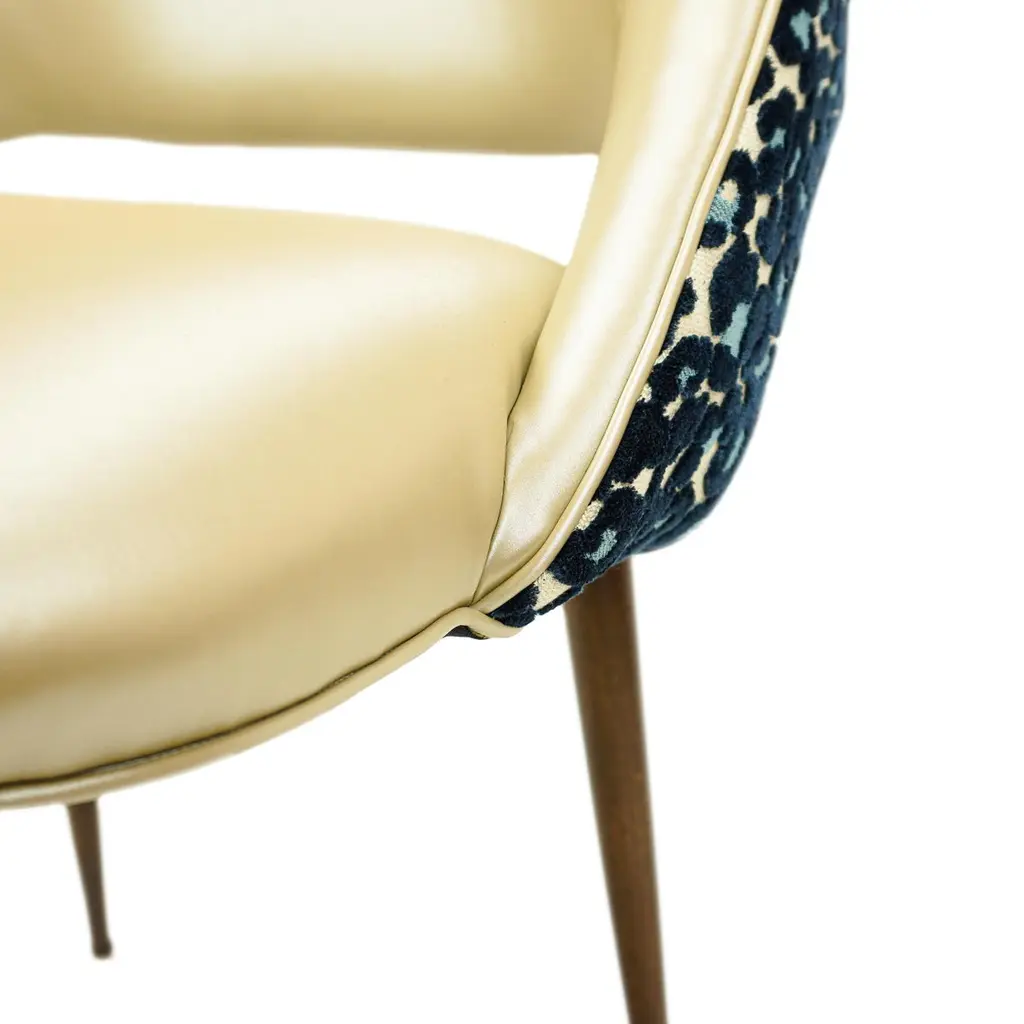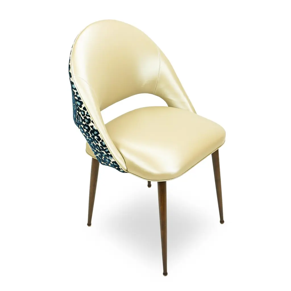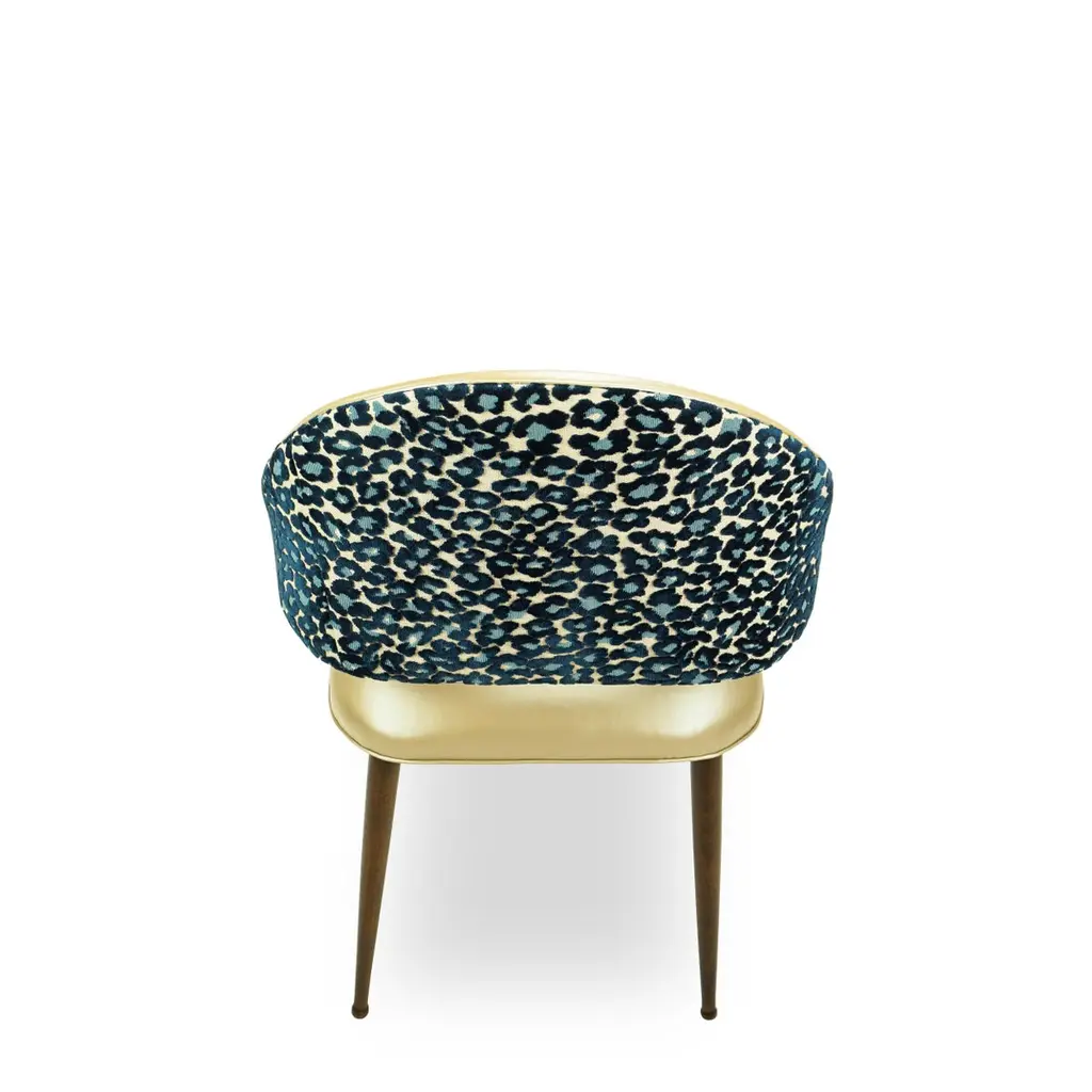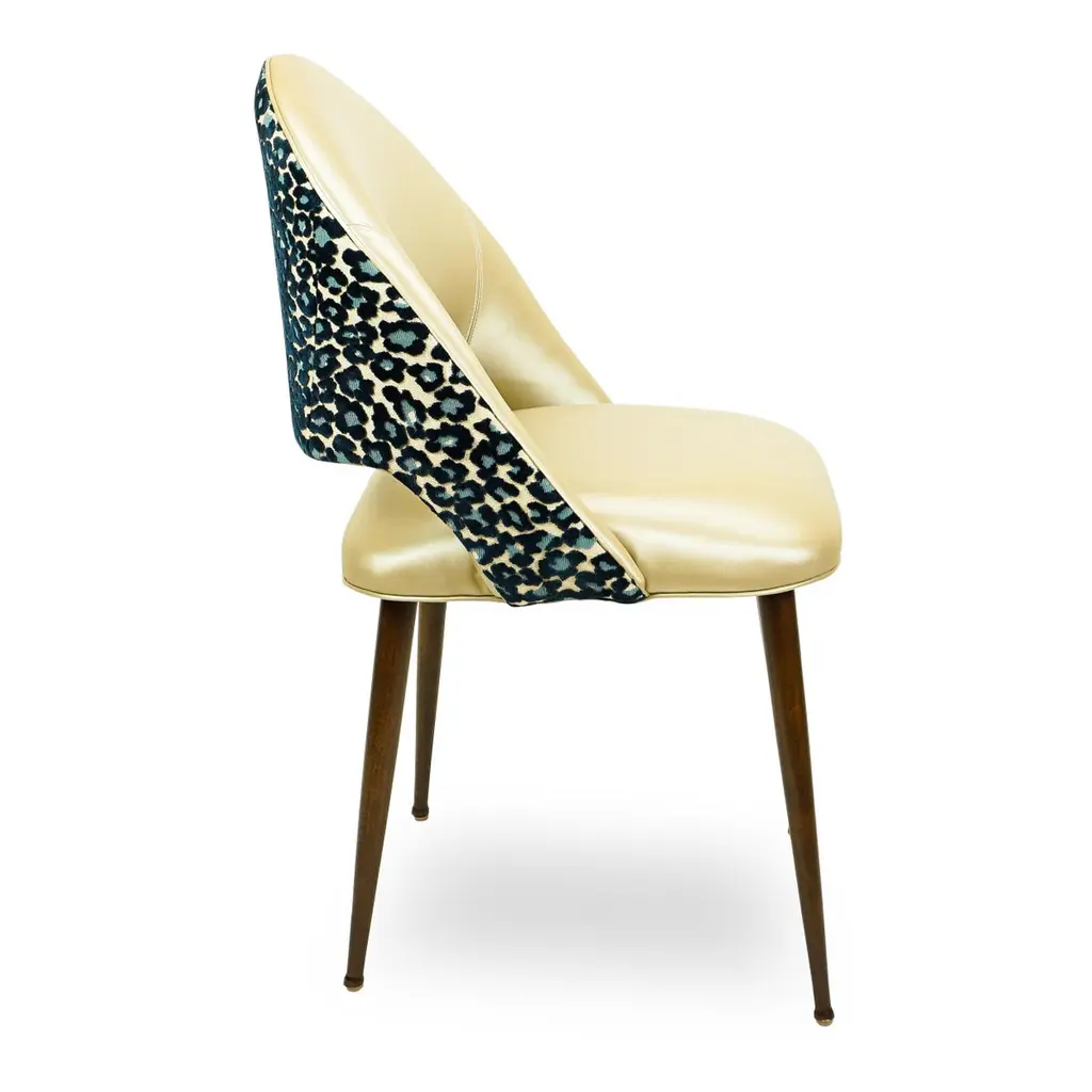 Golden Vinyl Dining Chair With Blue Leopard Back