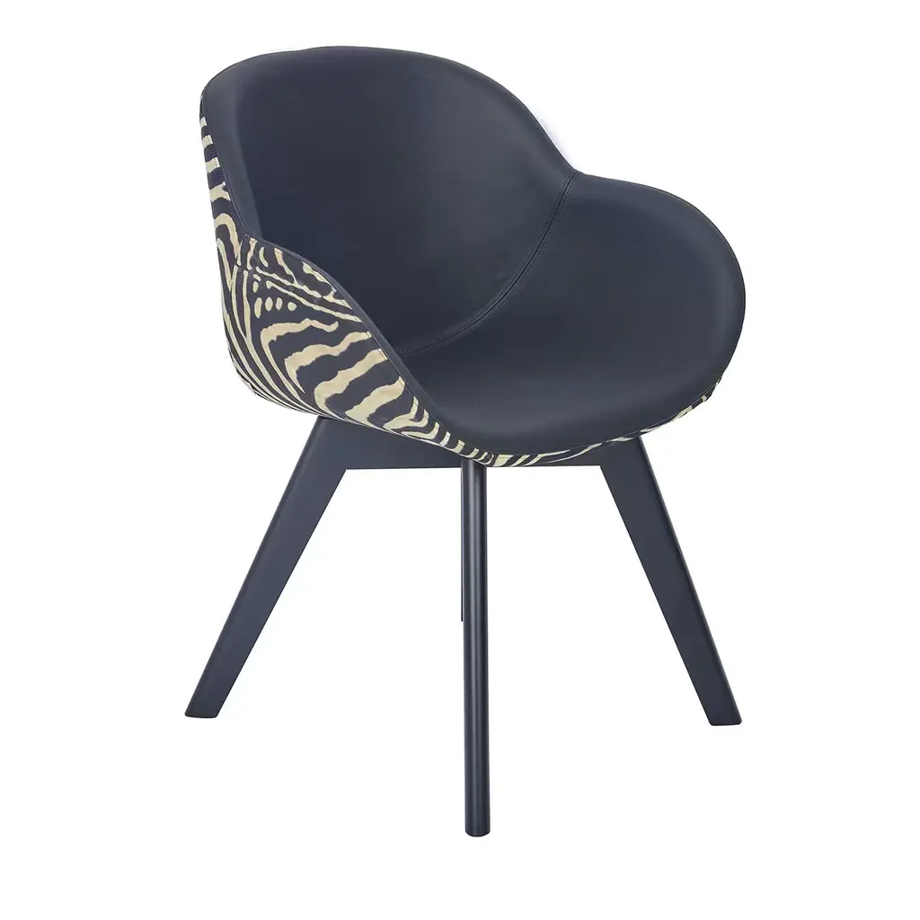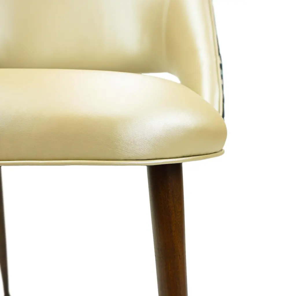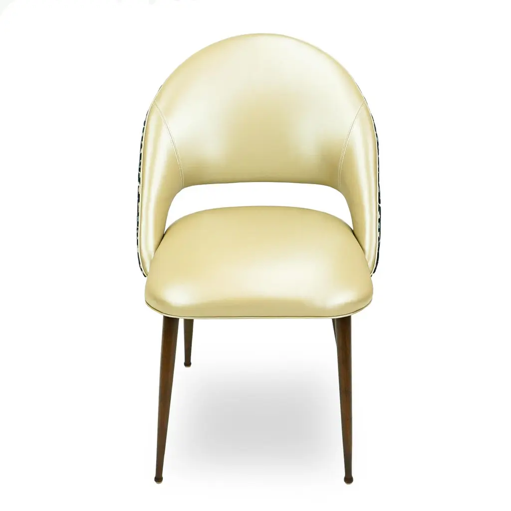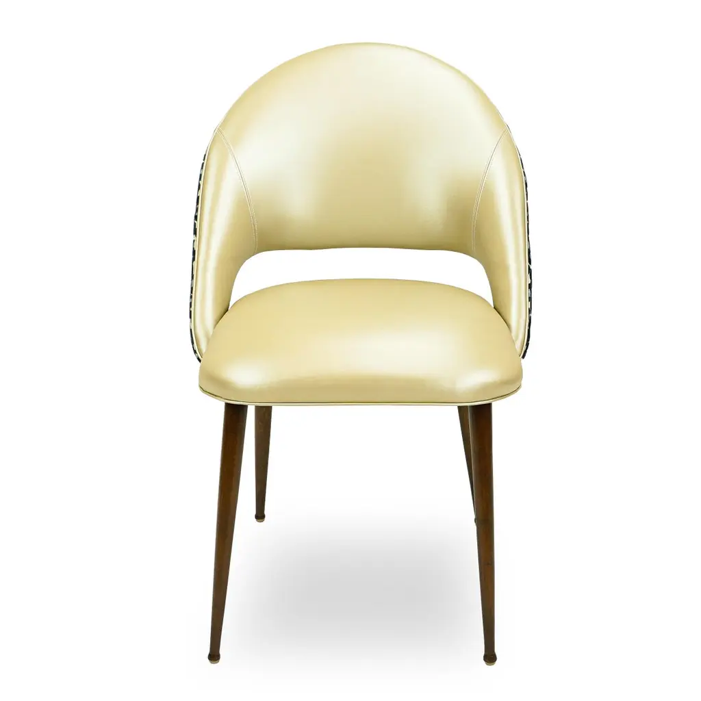 Golden Vinyl Dining Chair With Blue Leopard Back