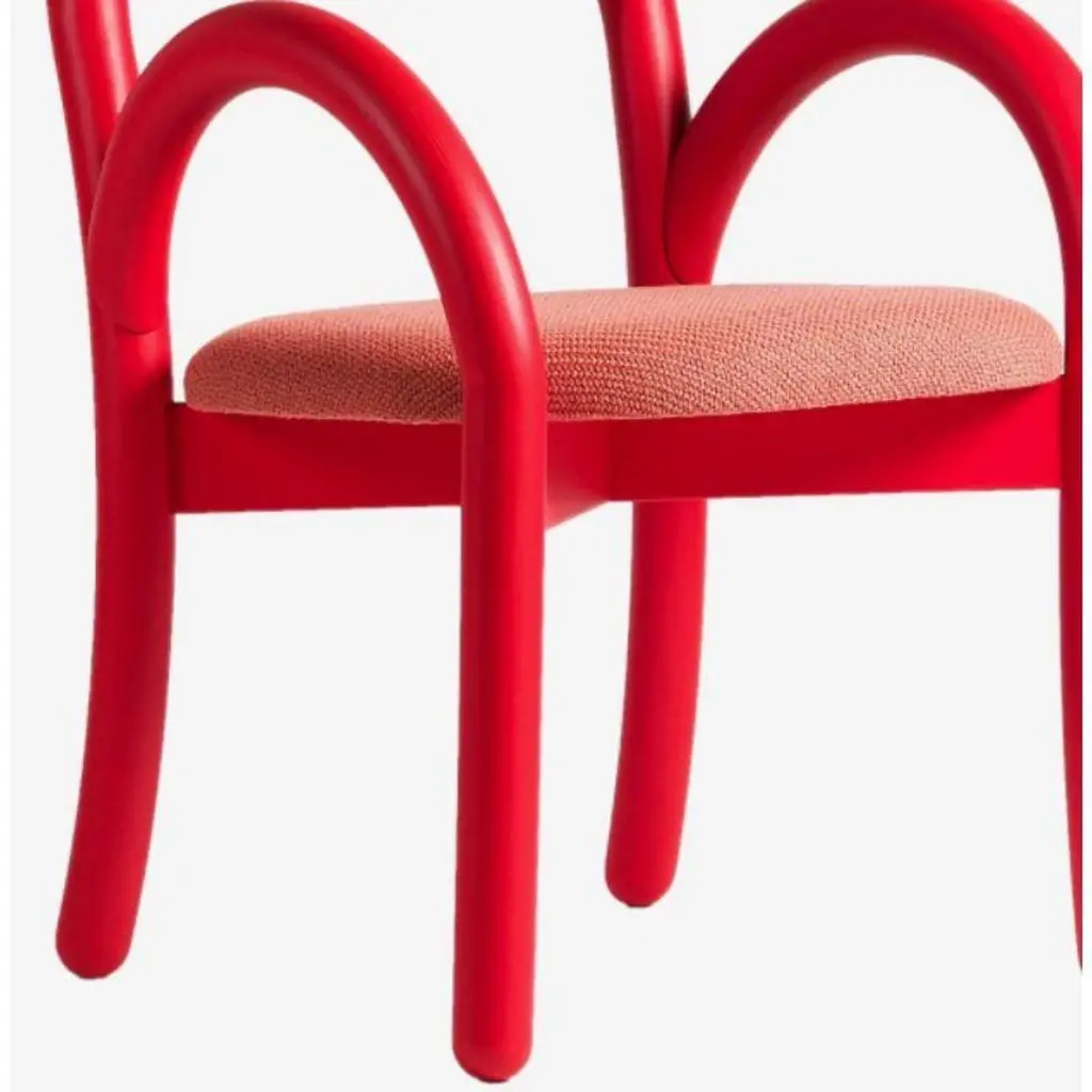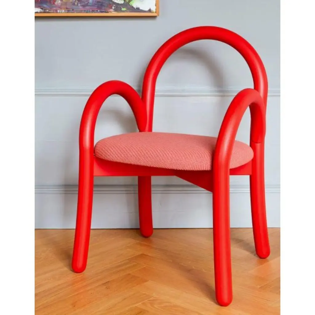 Goma armchair, red by Made by ChoiceDimensions: 55 x 55 x 85 cmMaterials: PlywoodStandard finishes: Natural wood / painted blackAlso available: Upholstery in fabric or leather (category 1 & 3), Goma dining chair, and Goma bar chair,The barstool GOMA was created for a restaurant project of the same name. Goma by Miss Voon is an Asian street food and cocktail bar in the heart of Stockholm where the bar stool is a solid piece with a clean and obvious design language. The barstool also has a sibling chair and armchair, all with a strong and distinct character.About Made by Choice: Nordic Happiness. Nordic Happiness is our grand theme and guiding star. Studies show that Nordic people are among the happiest on Earth. Nordic happiness is composed of authentic values and sustainable choices. The vision of Choice is based on the added value of collective creation while promoting sustainable Nordic values through authentic design. Rooted in the traditions of Finnish woodworks, Made by Choice is a creative powerhouse of collaborative thinkers, believers and makers, establishing a global brand for the 21st century. Committed to producing durable, bold and innovative designs, we combine contemporary woodworking methods and modern technology. Halikko is home to our 4000 square metre campus where we turn abstract concepts into tangible objects. Our team in our office in Helsinki coordinates all operations and installations. Made by Choice's agile, purpose driven approach means all new products are developed on demand, for a specific project and need, and carries the authentic story of it's reason of existence. Our products are developed and manufactured at our own factory in south-western Finland by some of the best craftsmen in the world. Choice is inspired by heritage and Nordic urban lifestyle. We are driven to explore the boundaries of our discipline to create new narratives. Choice collaborates with leading designers and ambitious interior architects on site-specific projects to create new urban spaces.Choice was founded by Lasse Laine, Sebastian Jansson and Niclas Ahlström – based on the common vision and mutual values to create a distinctive, value-driven brand and a new design heritage.