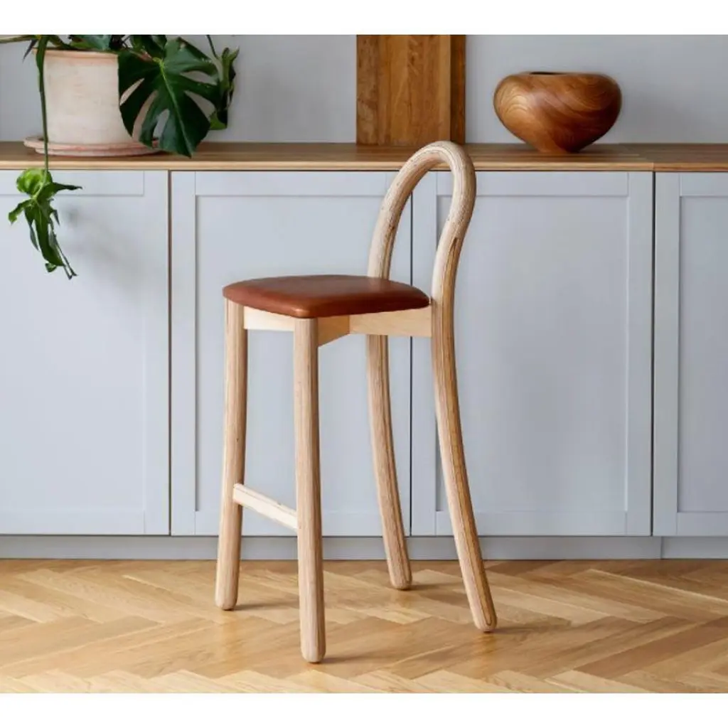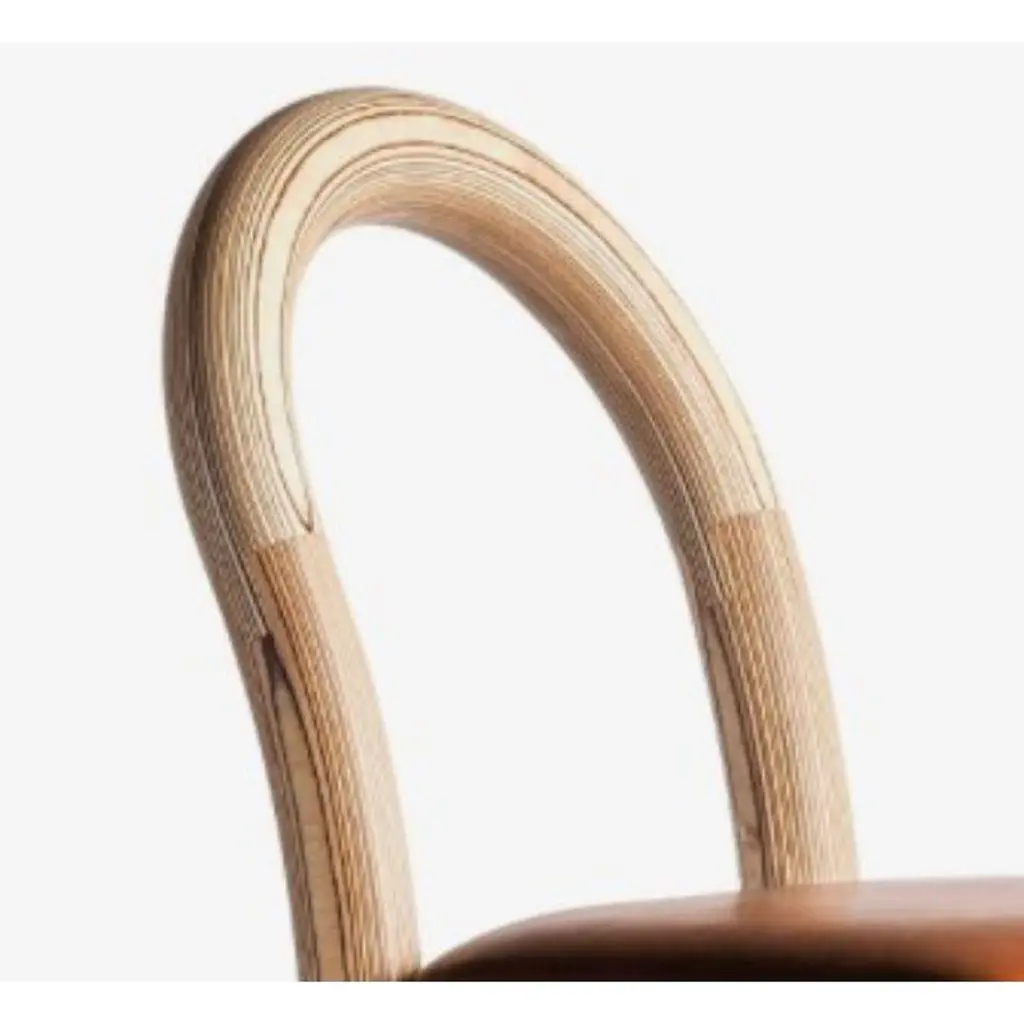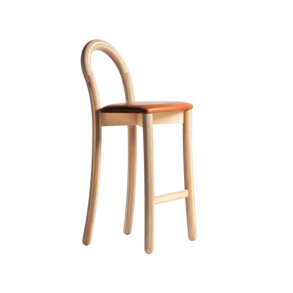 Goma bar chair by Made by Choice with Thomas SandellDimensions: 50 x 50 x 105 cmMaterials: plywoodAlso available: upholstery in fabric or leather (category 1 & 3), goma dining chair, and goma armchair.The barstool GOMA was created for a restaurant project of the same name. Goma by Miss Voon is an Asian street food and cocktail bar in the heart of Stockholm where the bar stool is a solid piece with a clean and obvious design language. The barstool also has a sibling chair and armchair, all with a strong and distinct character.About Made by Choice: Nordic Happiness. Nordic Happiness is our grand theme and guiding star. Studies show that Nordic people are among the happiest on Earth. Nordic happiness is composed of authentic values and sustainable choices. The vision of Choice is based on the added value of collective creation while promoting sustainable Nordic values through authentic design. Rooted in the traditions of Finnish woodworks, Made by Choice is a creative powerhouse of collaborative thinkers, believers and makers, establishing a global brand for the 21st century. Committed to producing durable, bold and innovative designs, we combine contemporary woodworking methods and modern technology. Halikko is home to our 4000 square metre campus where we turn abstract concepts into tangible objects. Our team in our office in Helsinki coordinates all operations and installations. Made by Choice's agile, purpose driven approach means all new products are developed on demand, for a specific project and need, and carries the authentic story of it's reason of existence. Our products are developed and manufactured at our own factory in south-western Finland by some of the best craftsmen in the world. Choice is inspired by heritage and Nordic urban lifestyle. We are driven to explore the boundaries of our discipline to create new narratives. Choice collaborates with leading designers and ambitious interior architects on site-specific projects to create new urban spaces.Choice was founded by Lasse Laine, Sebastian Jansson and Niclas Ahlström – based on the common vision and mutual values to create a distinctive, value-driven brand and a new design heritage.