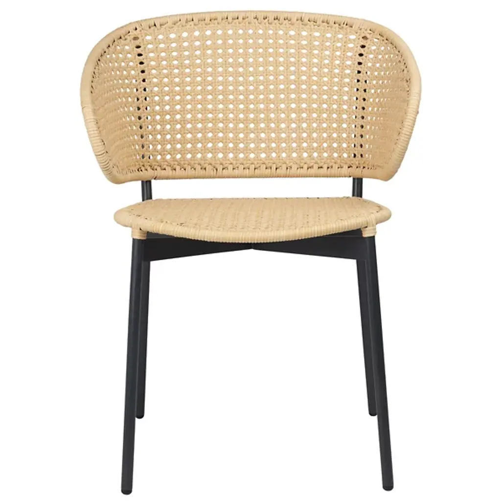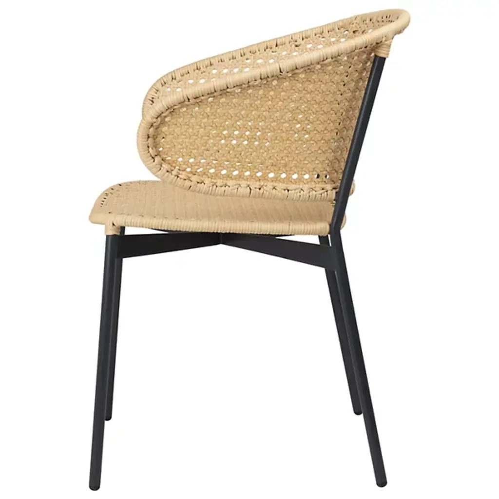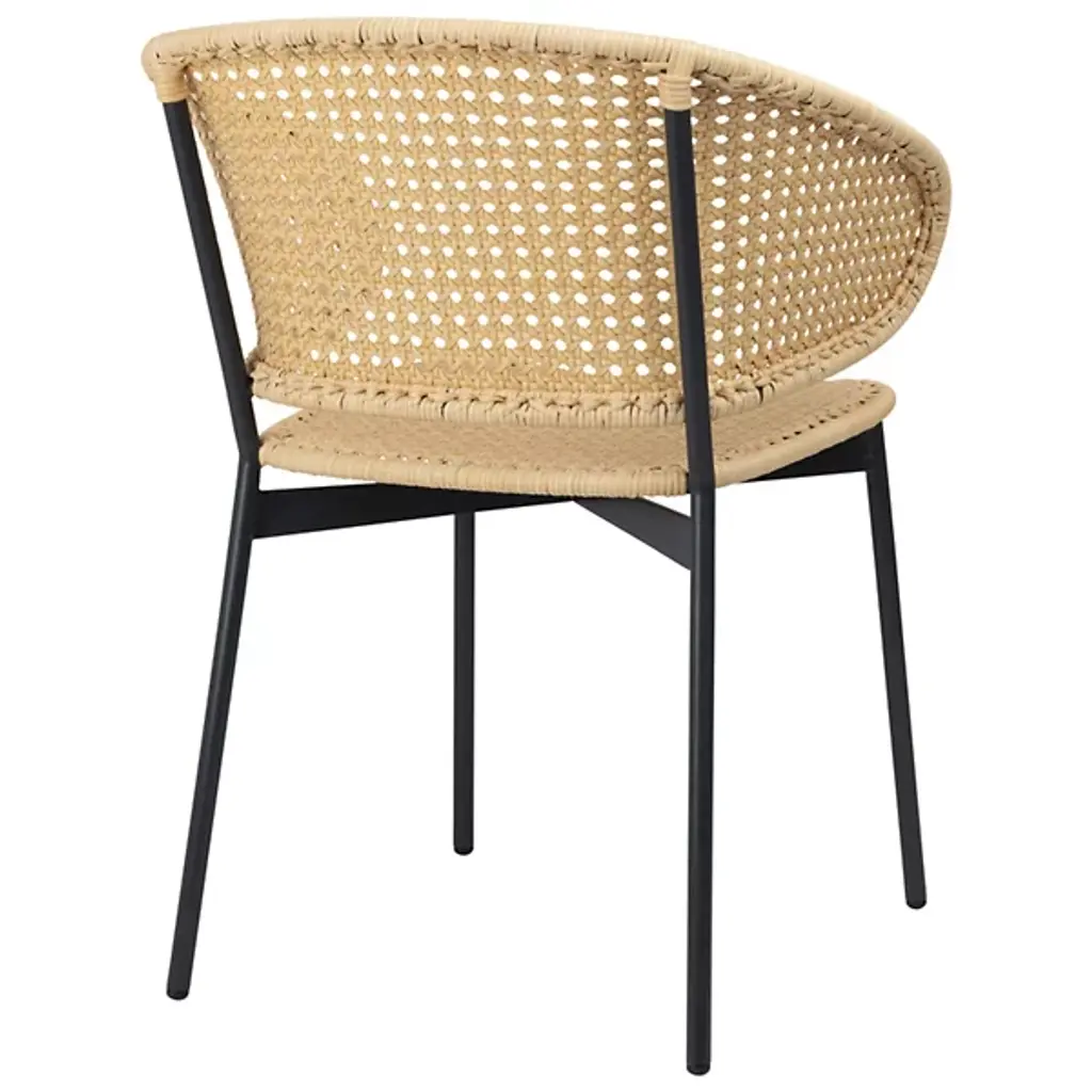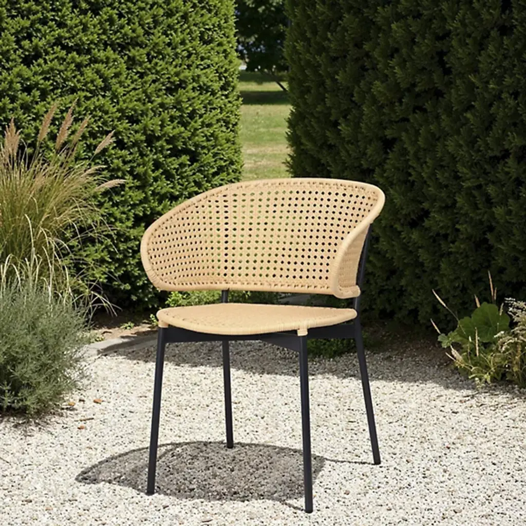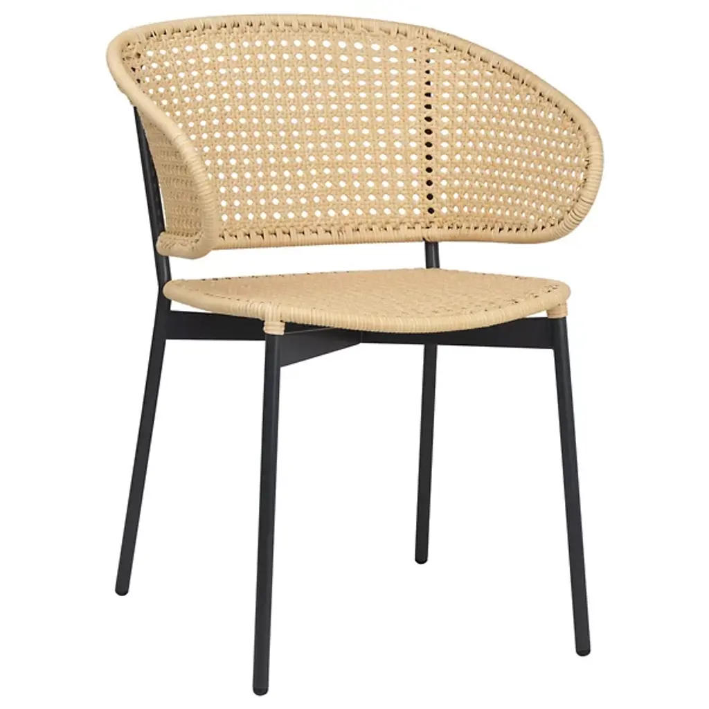 Gorm Outdoor Dining Arm Chair from Feelgood Designs effortlessly blends style and comfort for your patio, balcony, or outdoor terrace. Its curvaceous backrest paired with a sophisticated woven shell radiates bohemian charm. Designed with handwoven elements, it ensures subtle elasticity and nurturing support for a plush seating experience. This natural chair not only enhances outdoor settings but also brings elegance to commercial and/or residential use, making it a versatile choice for any outdoor environment.