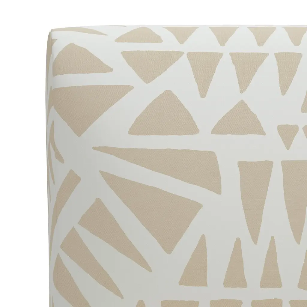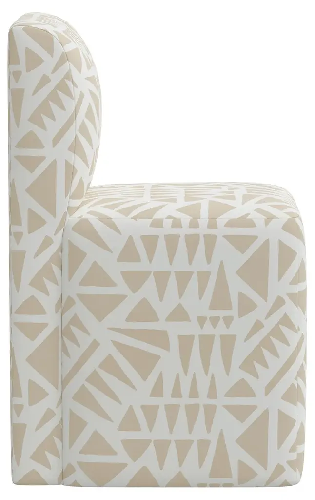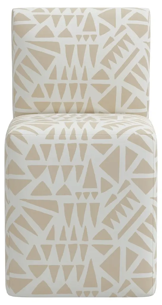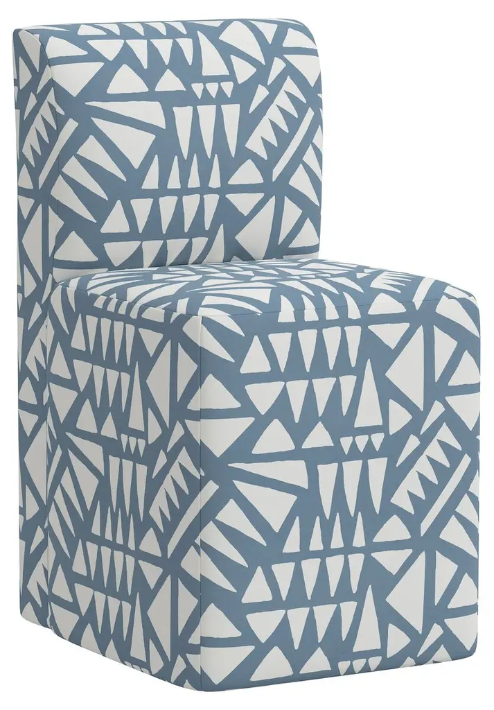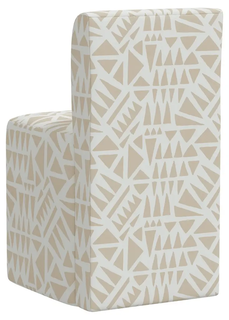 The geometric pattern of the cotton upholstery, inspired by timeless Kuba motifs, ensures that this dining chair will command attention. Made in the USA, it's generously cushioned to encourage lingering at the table long after the meal is over.