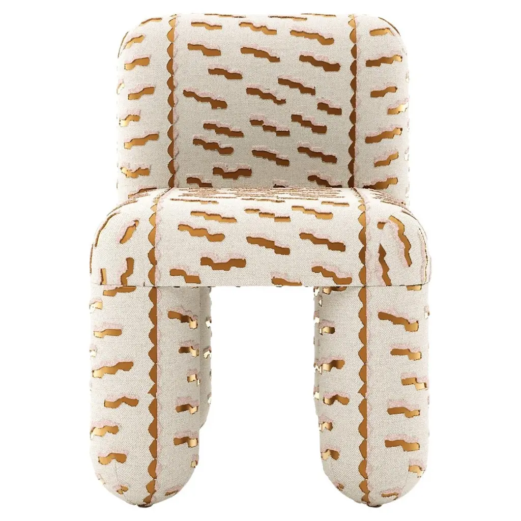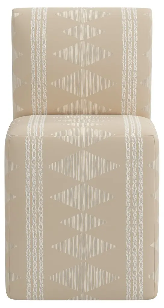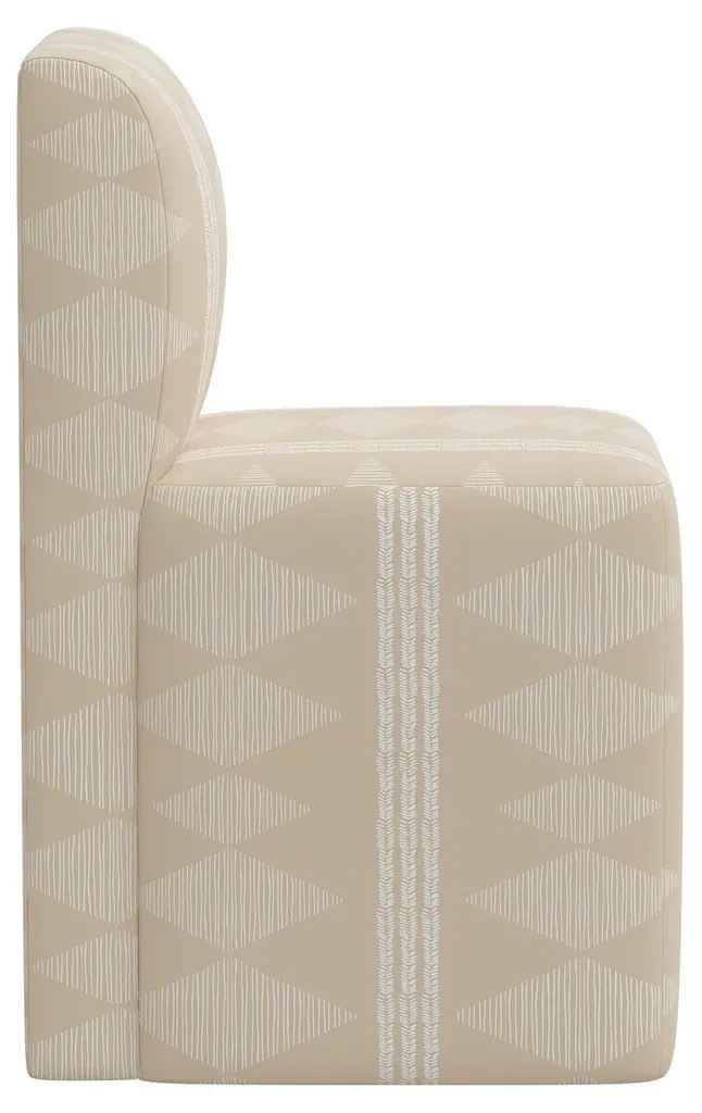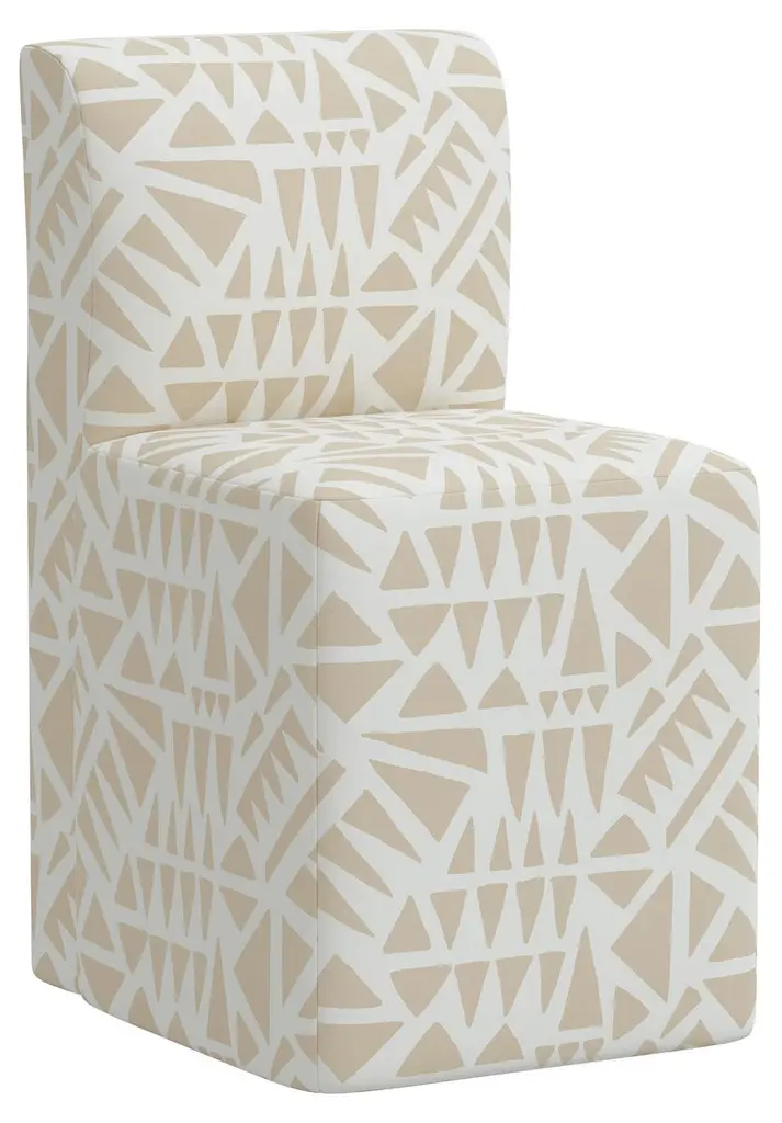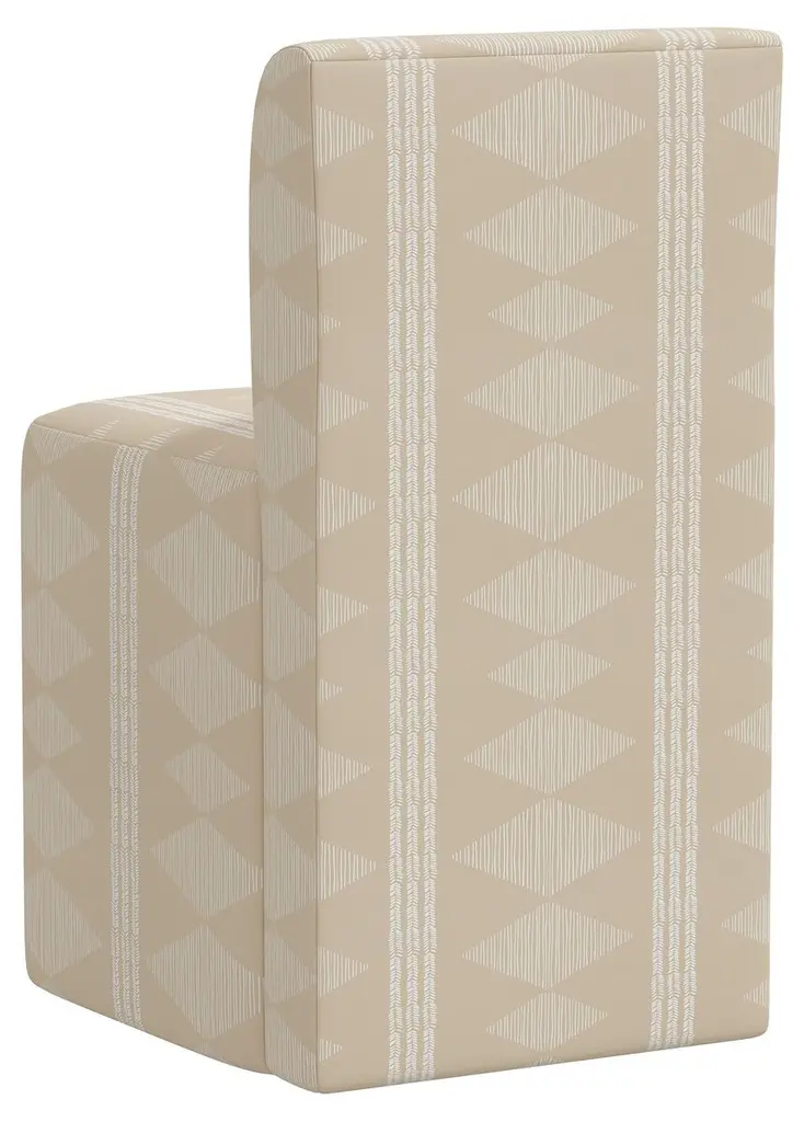 The geometric pattern of the cotton upholstery, inspired by timeless Zulu motifs, ensures that this dining chair will command attention. Made in the USA, it's generously cushioned to encourage lingering at the table long after the meal is over.