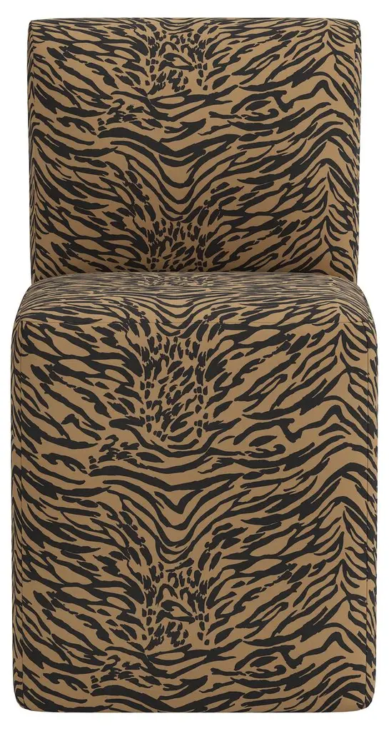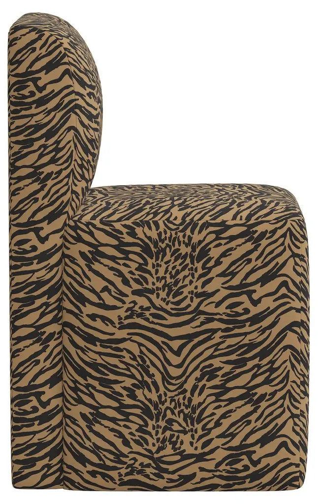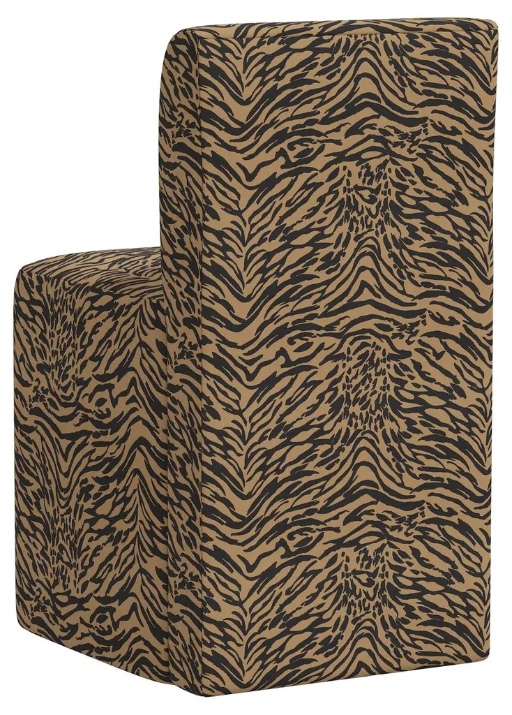 Exclusive to One Kings Lane: Tiger-print upholstery ensures that this dining chair will command attention. Made in the USA, the chair is generously cushioned to encourage lingering at the table long after the meal is over.