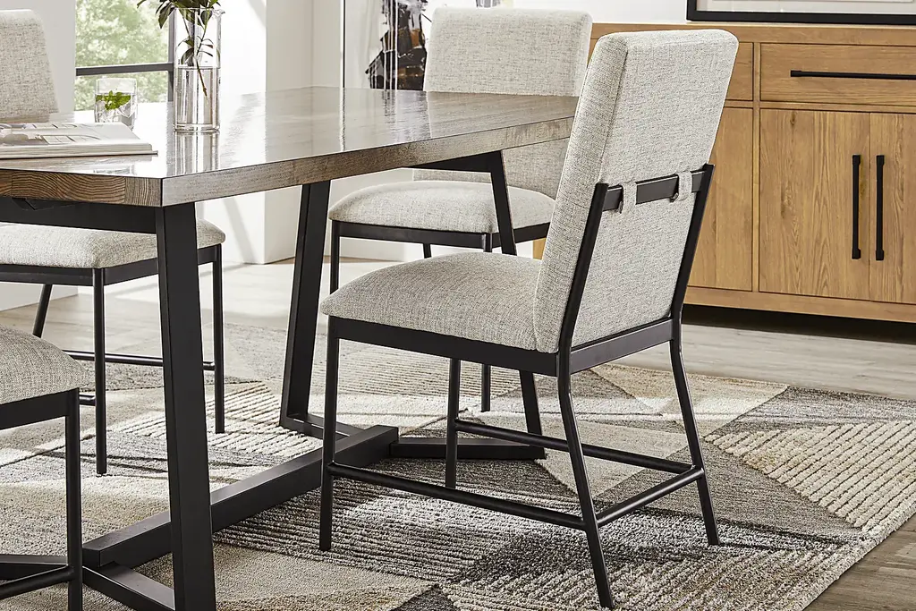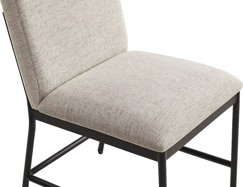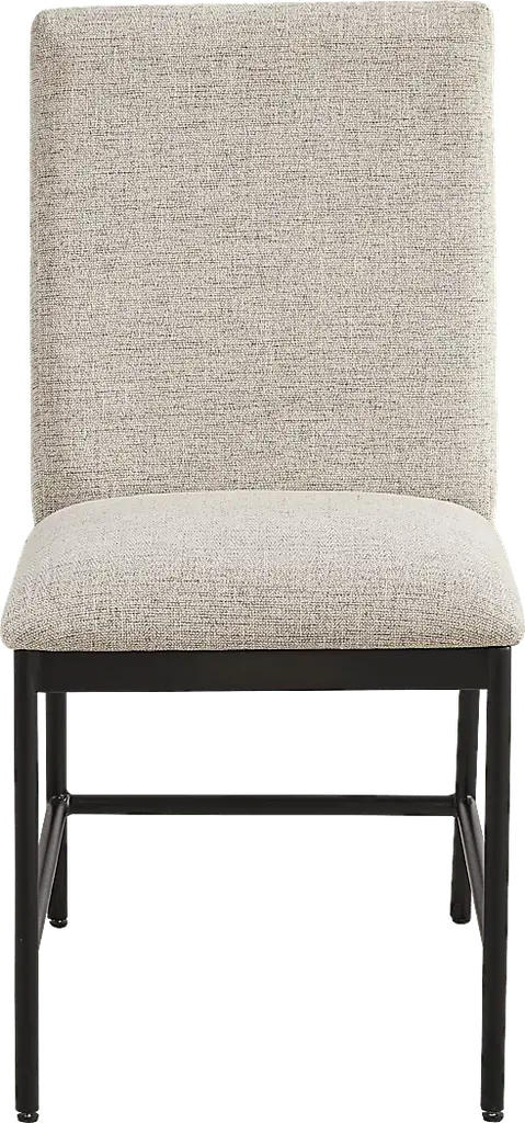 Like morning light filtering through the kitchen window, the Grand Falls dining collection brings the feeling of natural warmth indoors and offers a welcoming space for shared meals. Contemporary in style, this dining side chair features a fully upholstered back and seat wrapped in soft beige fabric and sleek black legs that add stylish contrast and striking visual balance. Straight lines and low-profile footrests on the sides and back further enhance the refined, modern look, creating an experience that's equal parts inviting and elevated.