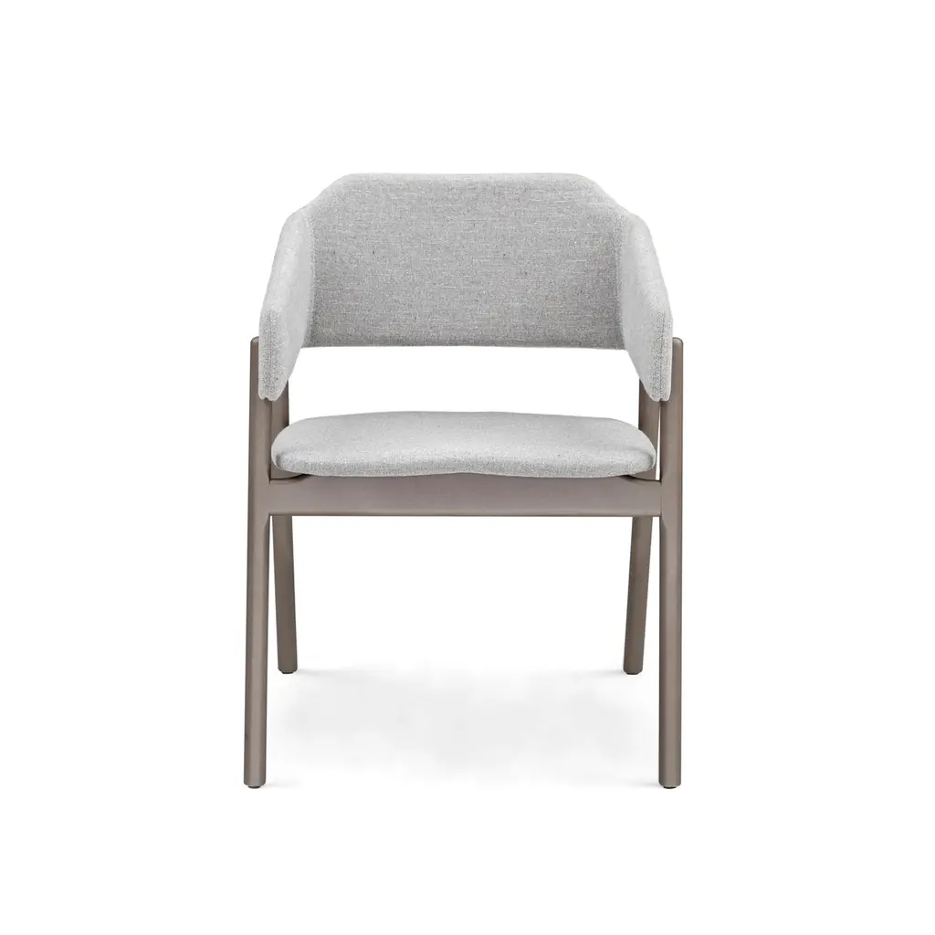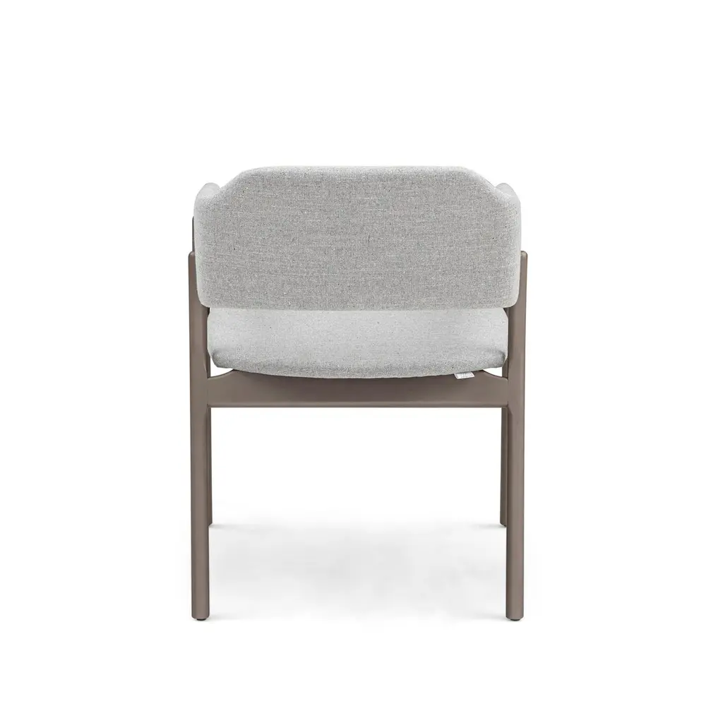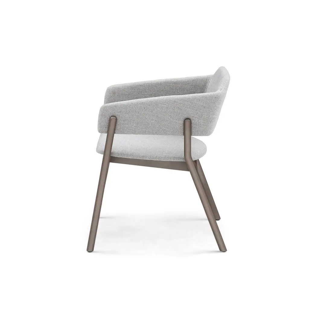 A Stuzi dining chair designed by Sérgio Batista for Uultis in Chocolate metallic finish with gray fabric. Please check availability prior to purchase.With its sleek silhouette and thoughtful craftsmanship, the Stuzi dining chair brings refined elegance to any dining space. The chocolate metallic-finish frame pairs seamlessly with the soft gray fabric upholstery, creating a sophisticated contrast that blends effortlessly into modern, minimalist, or transitional interiors. Designed for residential use, this chair offers both visual appeal and long-lasting comfort, making it a stylish yet practical choice for everyday dining.Constructed with a solid wood frame, the Stuzi chair is built for durability. The upholstered seat and backrest, crafted from multi-laminated sheets and high-density foam, provide exceptional comfort and support, making long meals and conversations around the table even more enjoyable.Perfect for formal dining rooms or casual breakfast nooks, the Stuzi chair’s versatile design also allows it to function beautifully as an accent chair in a bedroom or home office. Its clean lines and sculptural form make it an excellent companion to wood, glass, or stone dining tables, elevating the overall aesthetic of the space. Whether placed around a statement dining table for an elegant gathering or used as additional seating in a living area, the Stuzi dining chair seamlessly integrates into a variety of home settings, delivering both style and comfort. Uultis prioritizes sustainability, using materials that are durable and environmentally friendly, reflecting our commitment to both quality craftsmanship and responsible design practices.